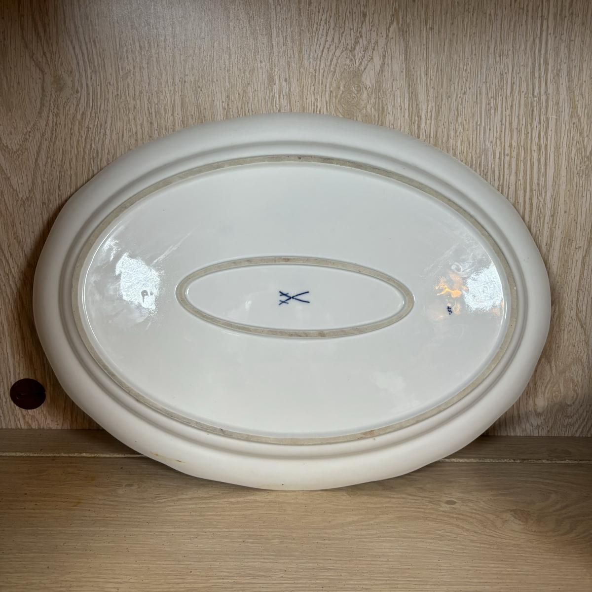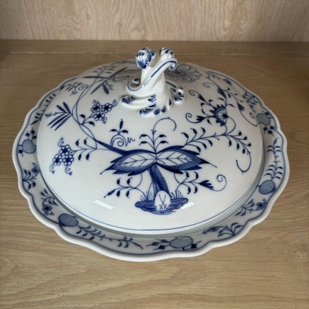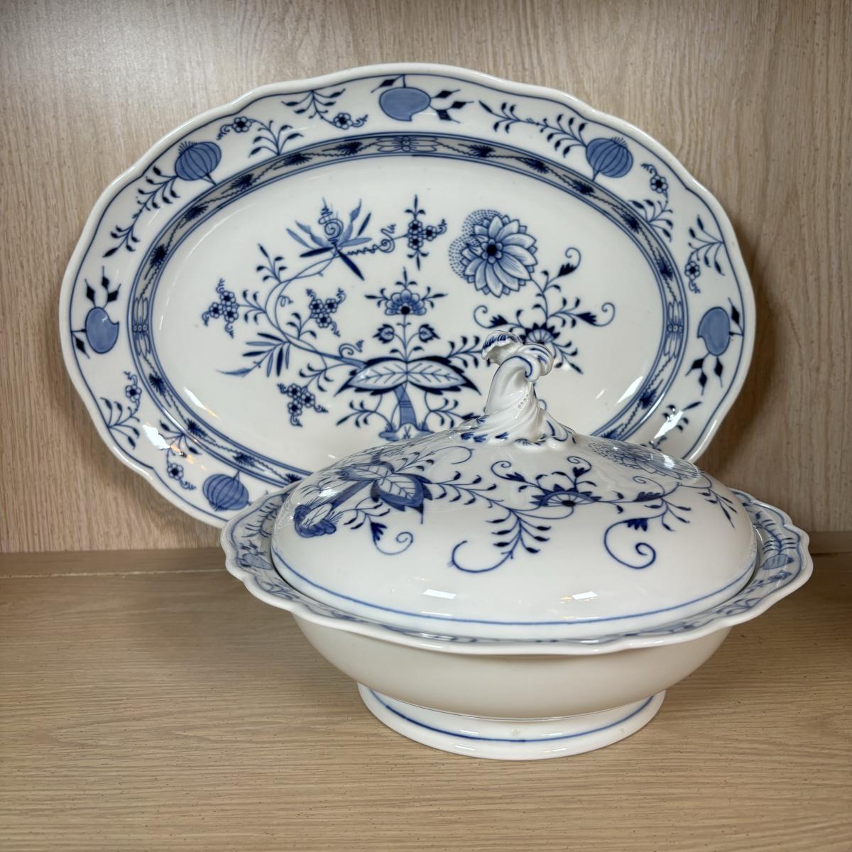 LOT 232: Meissen Blue Onion Serving Platter & Covered Oval Bowl