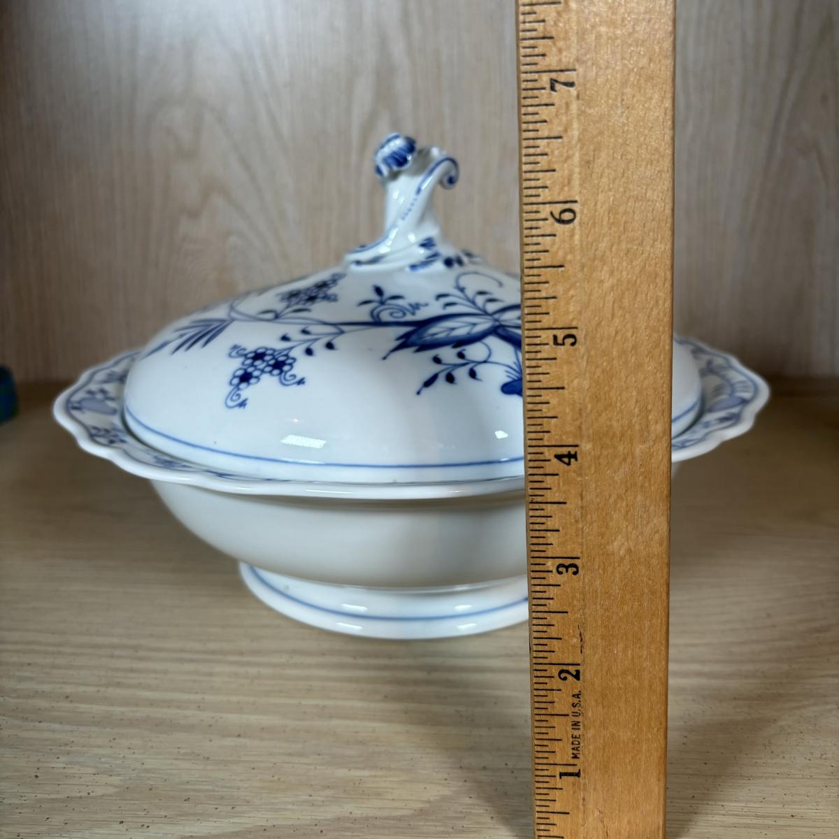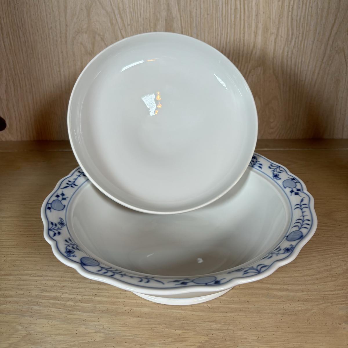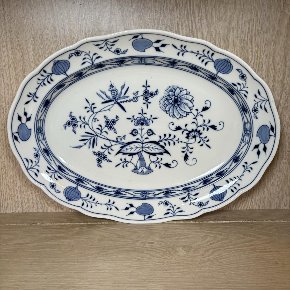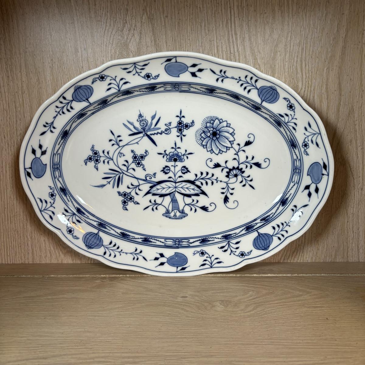 LOT 232: Meissen Blue Onion Serving Platter & Covered Oval Bowl