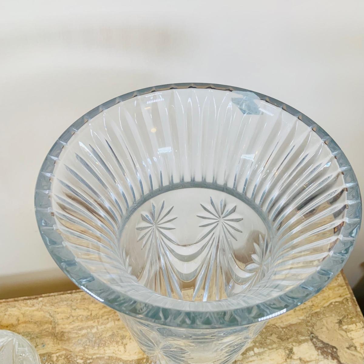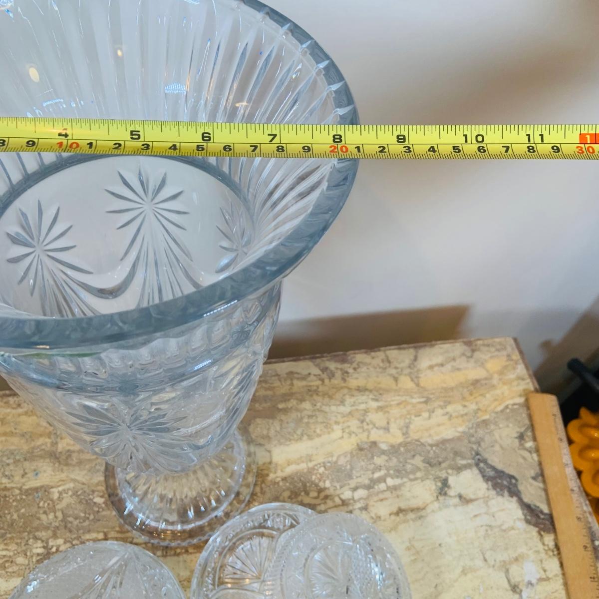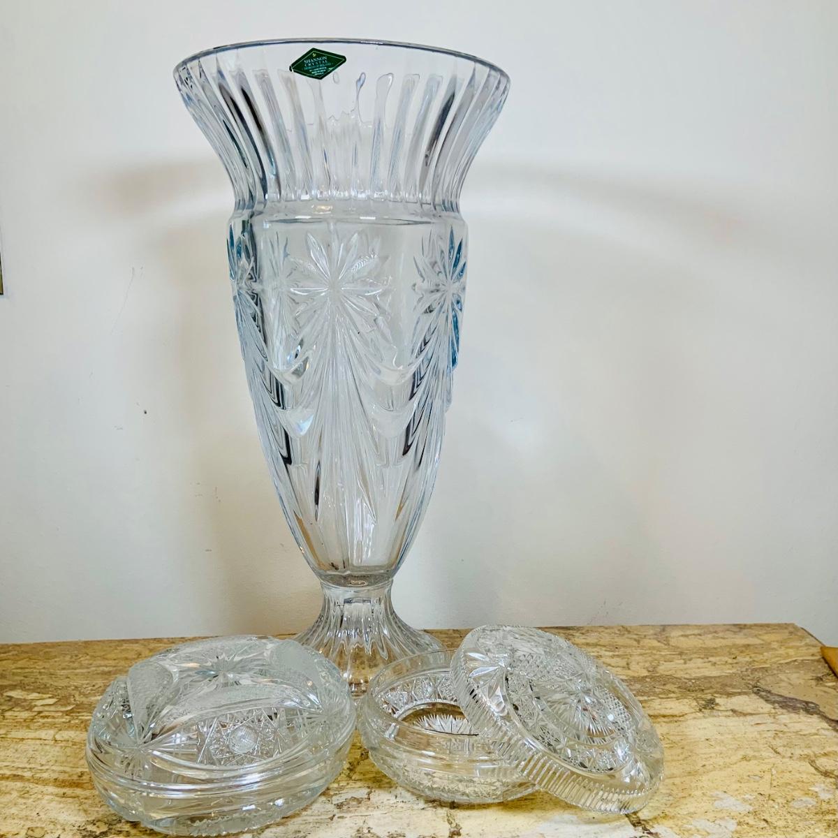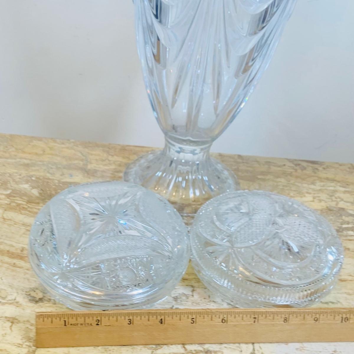 LOT241:: Large Shannon Crystal Vase and 2 Round Crystal Trinket Boxes