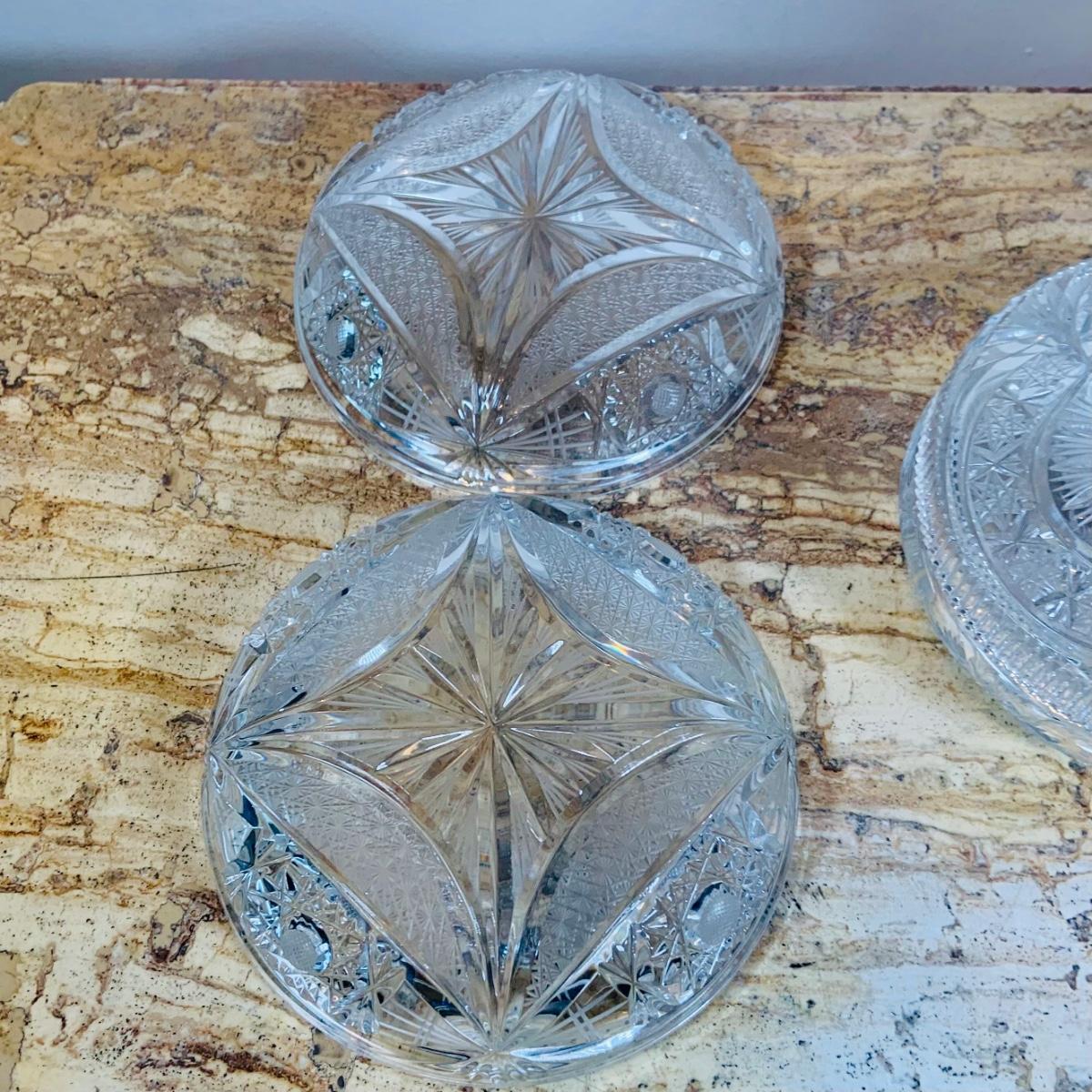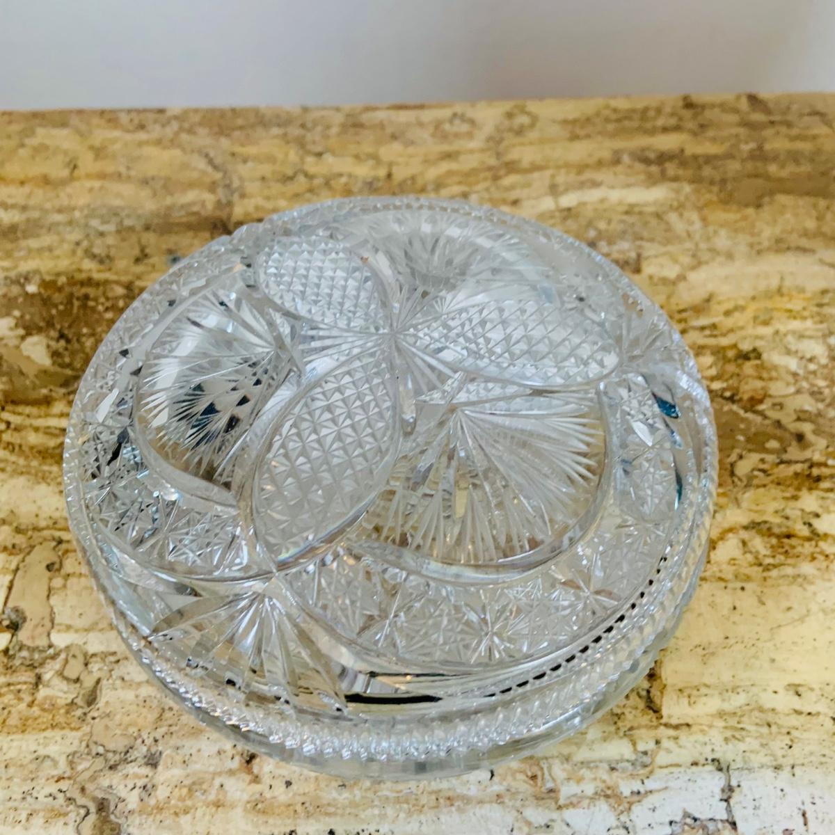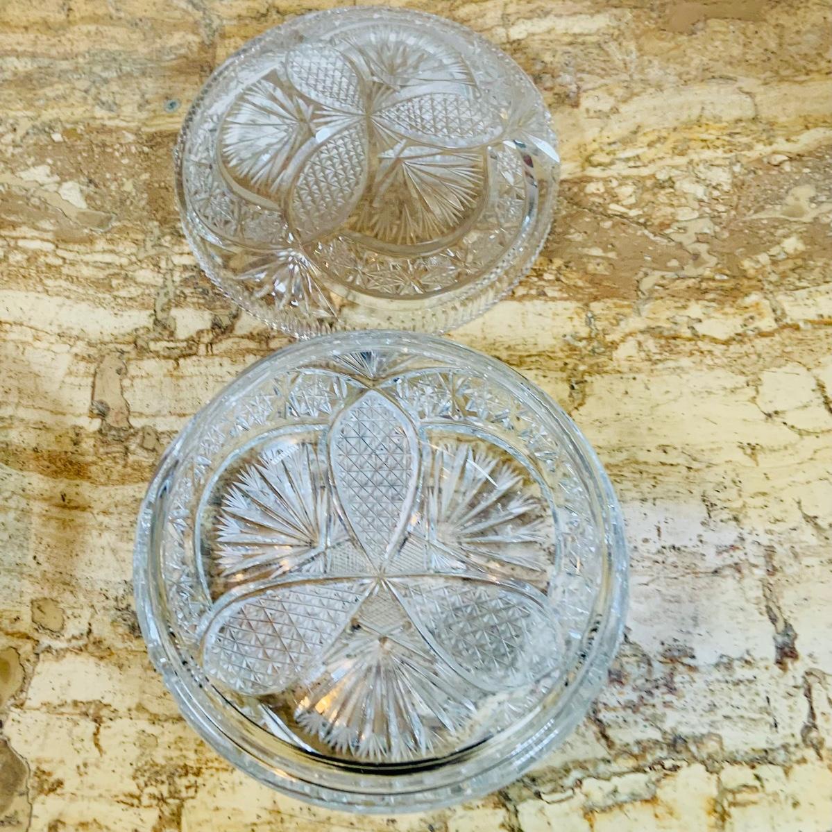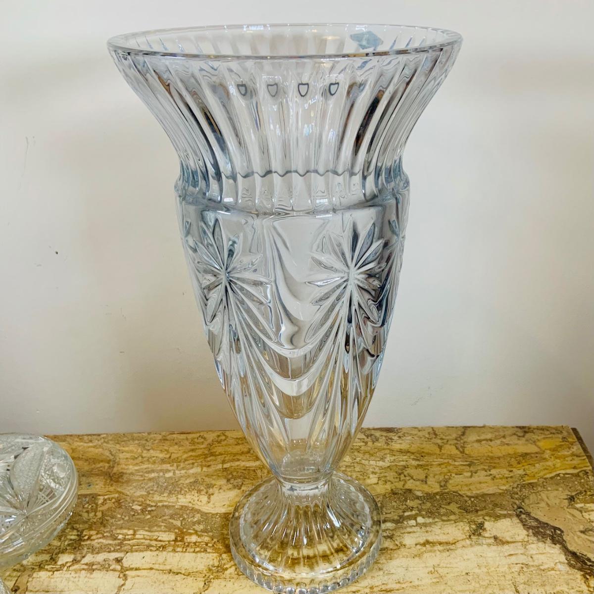 LOT241:: Large Shannon Crystal Vase and 2 Round Crystal Trinket Boxes