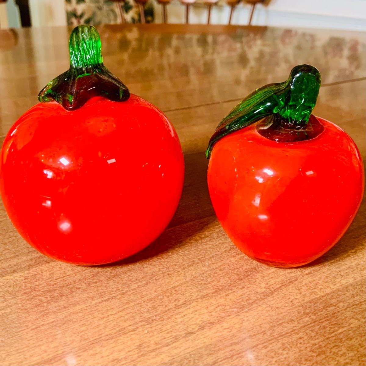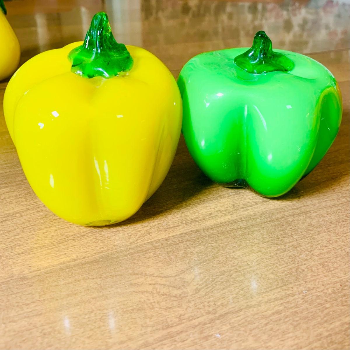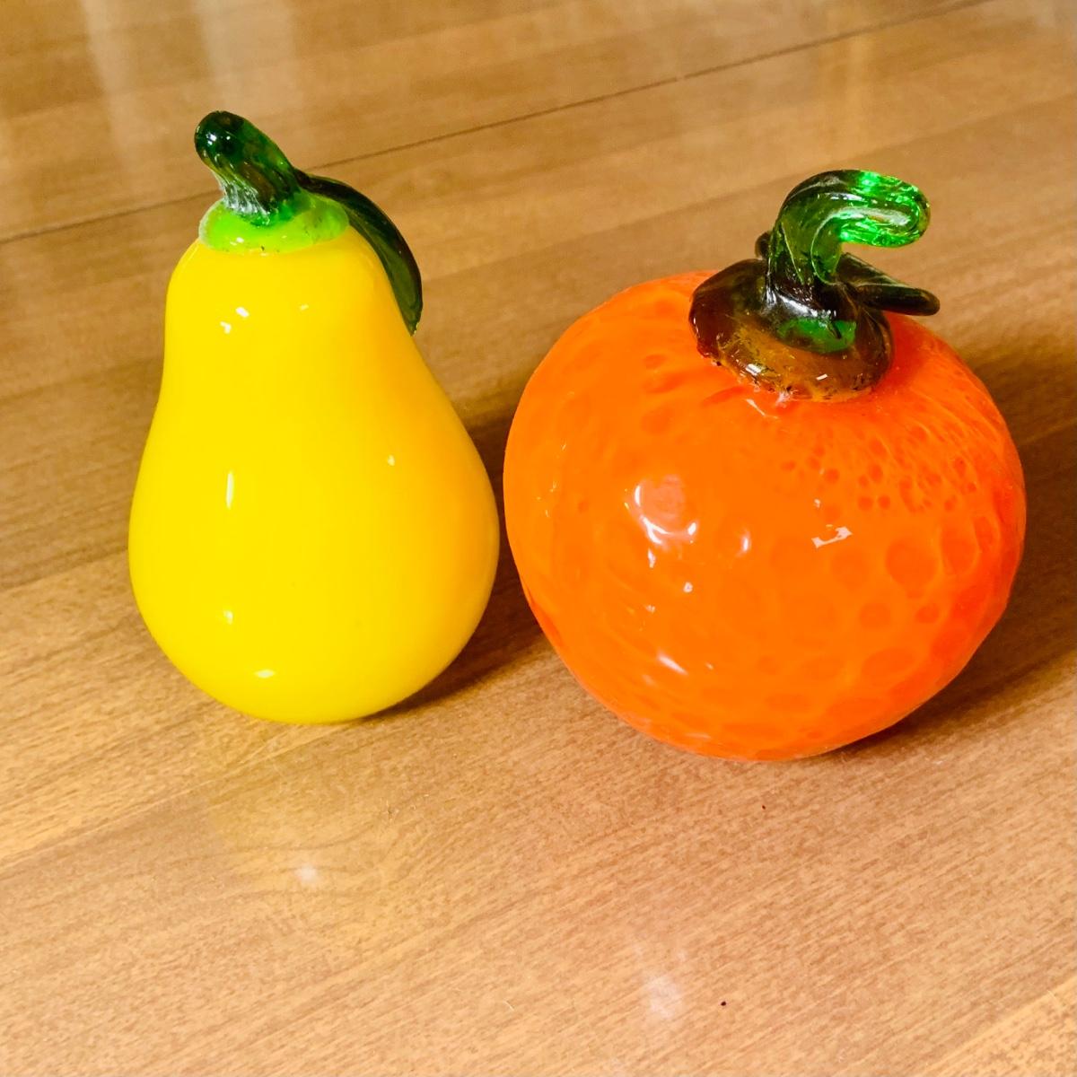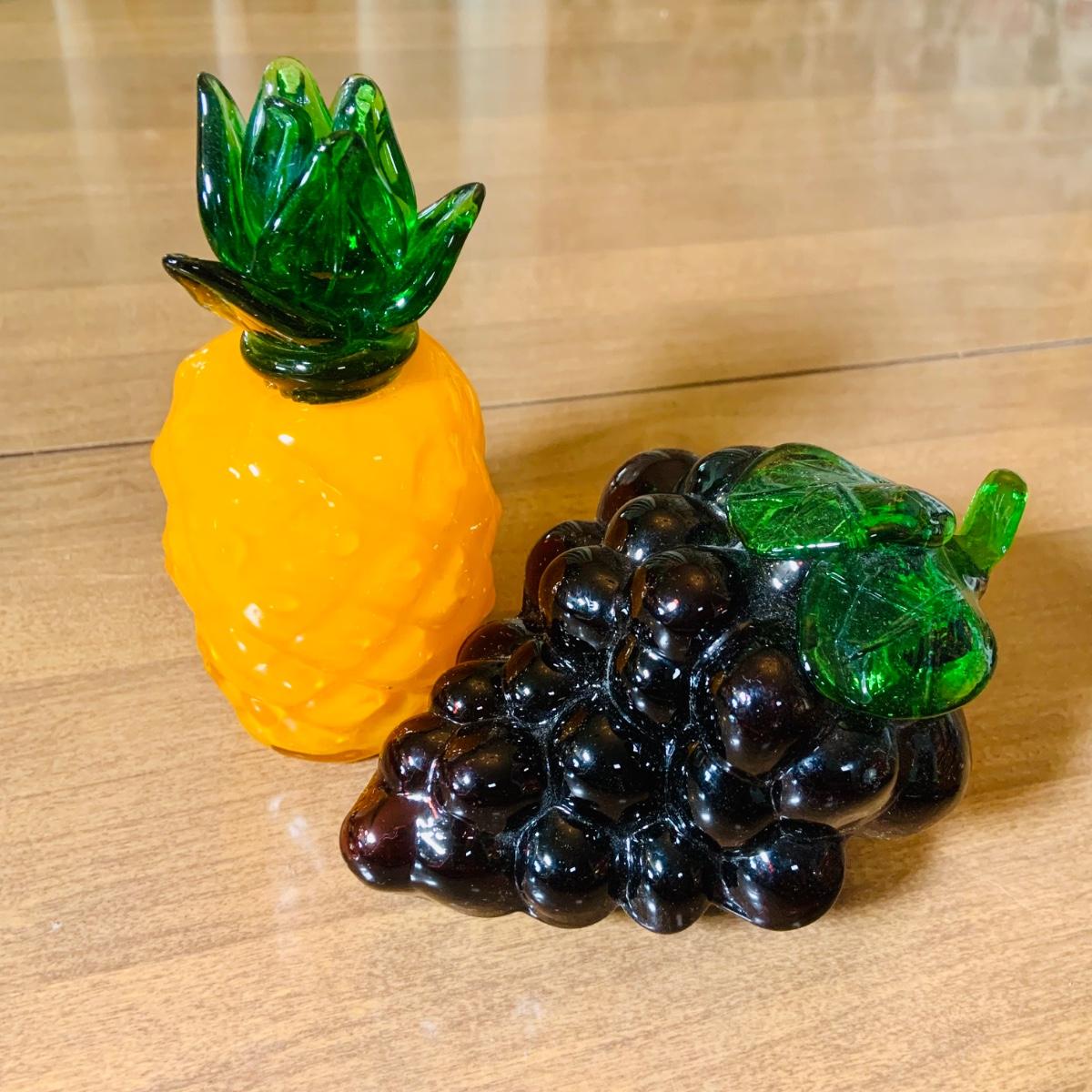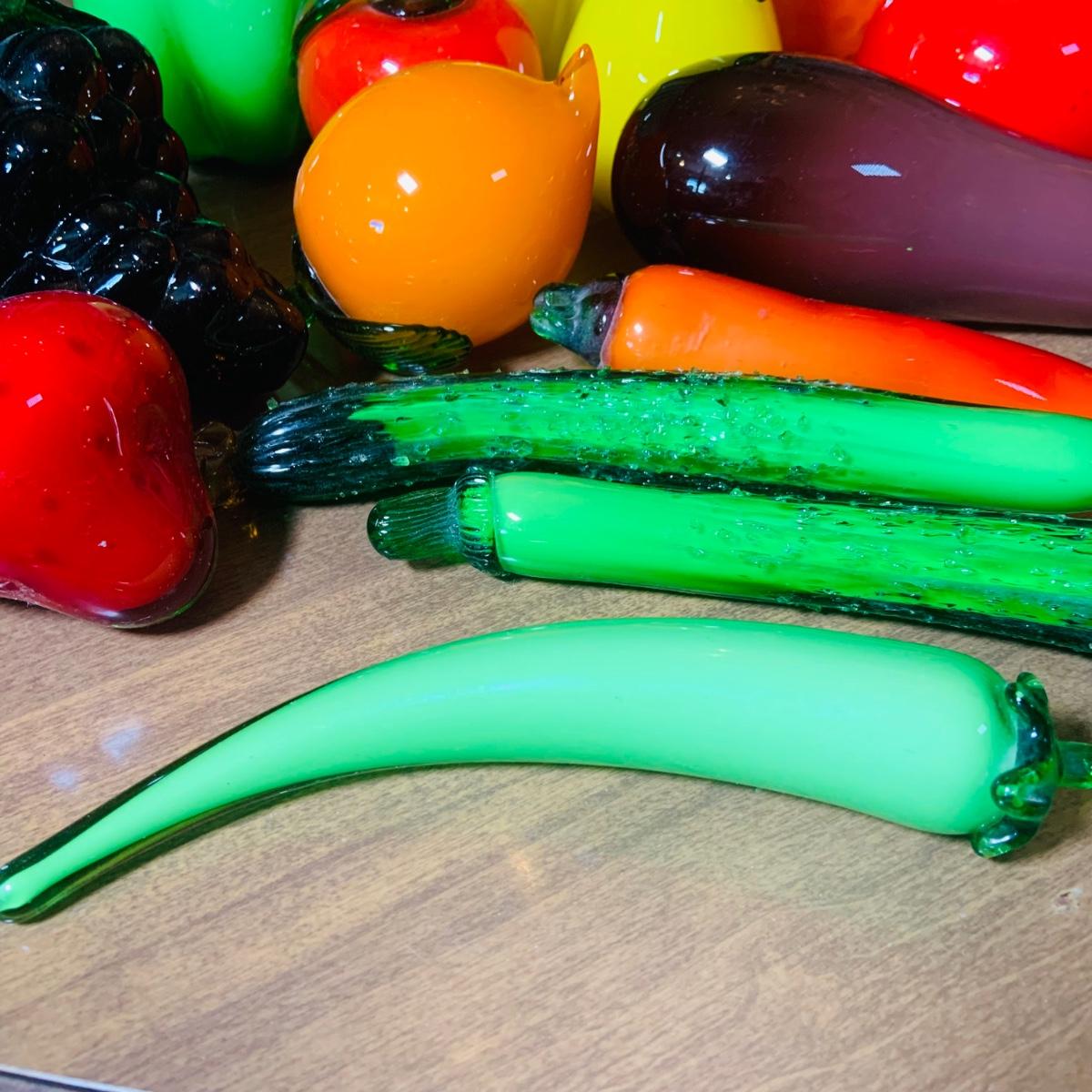 LOT:243: Large Assortment of Hand Blown Artglass Fruits and Vegetables with Basket