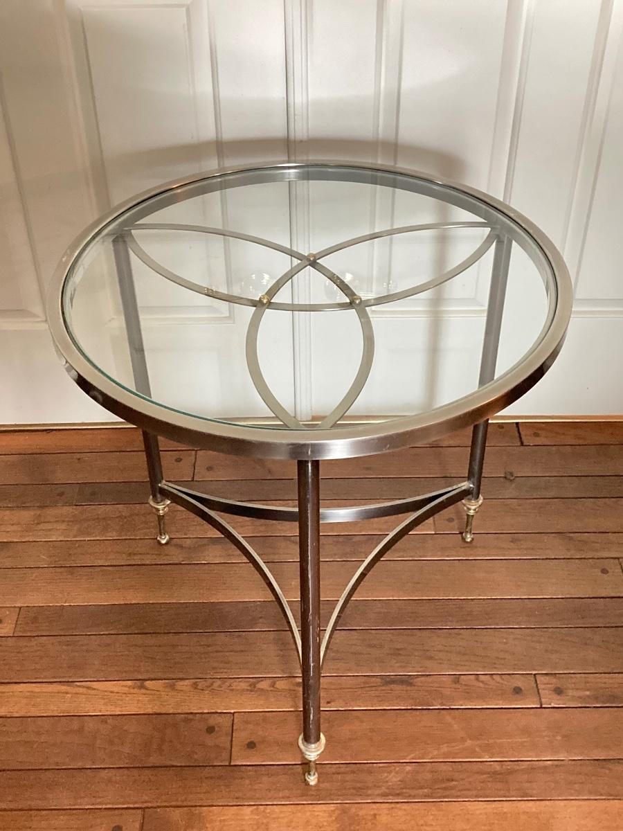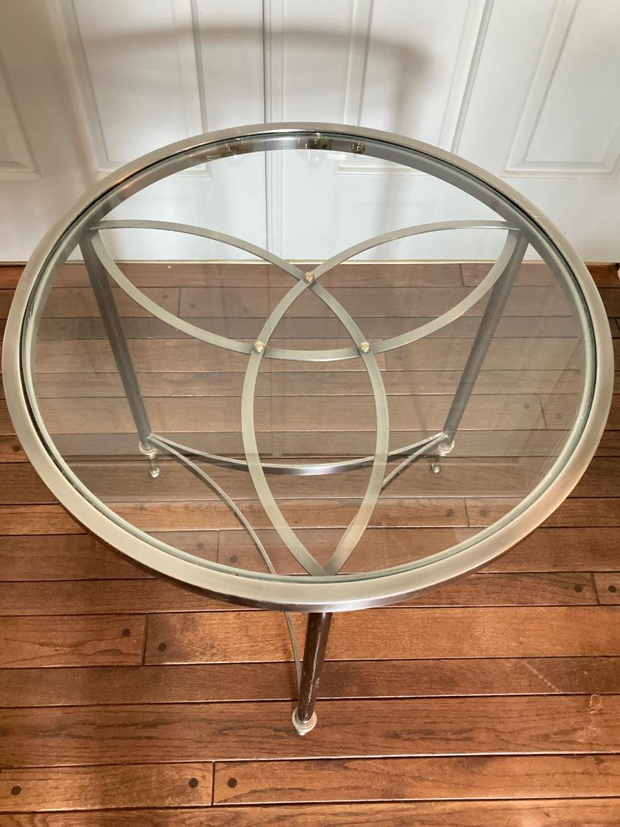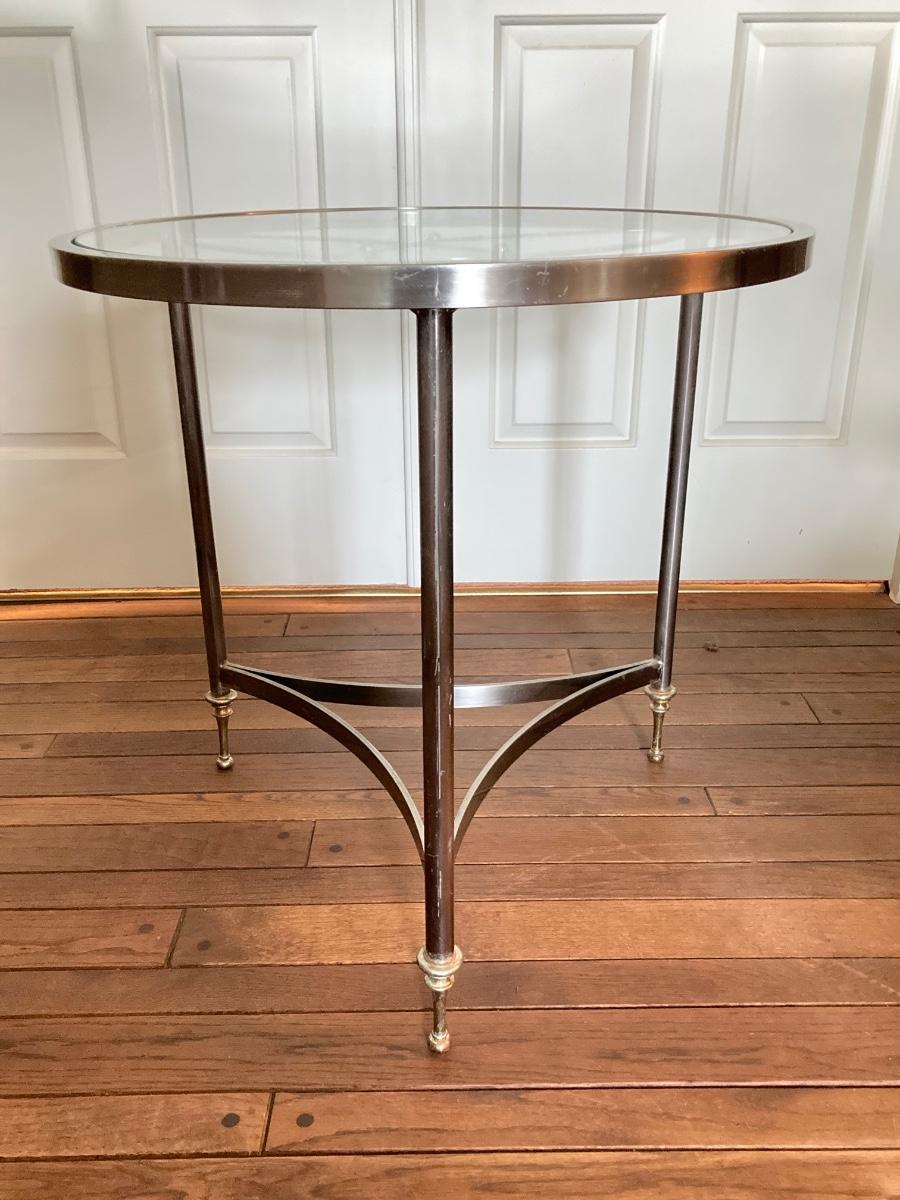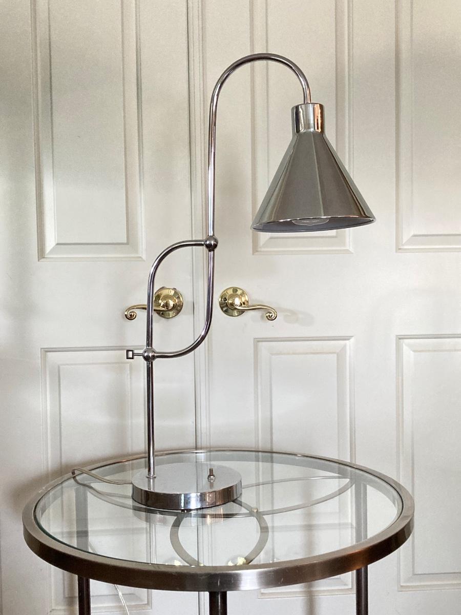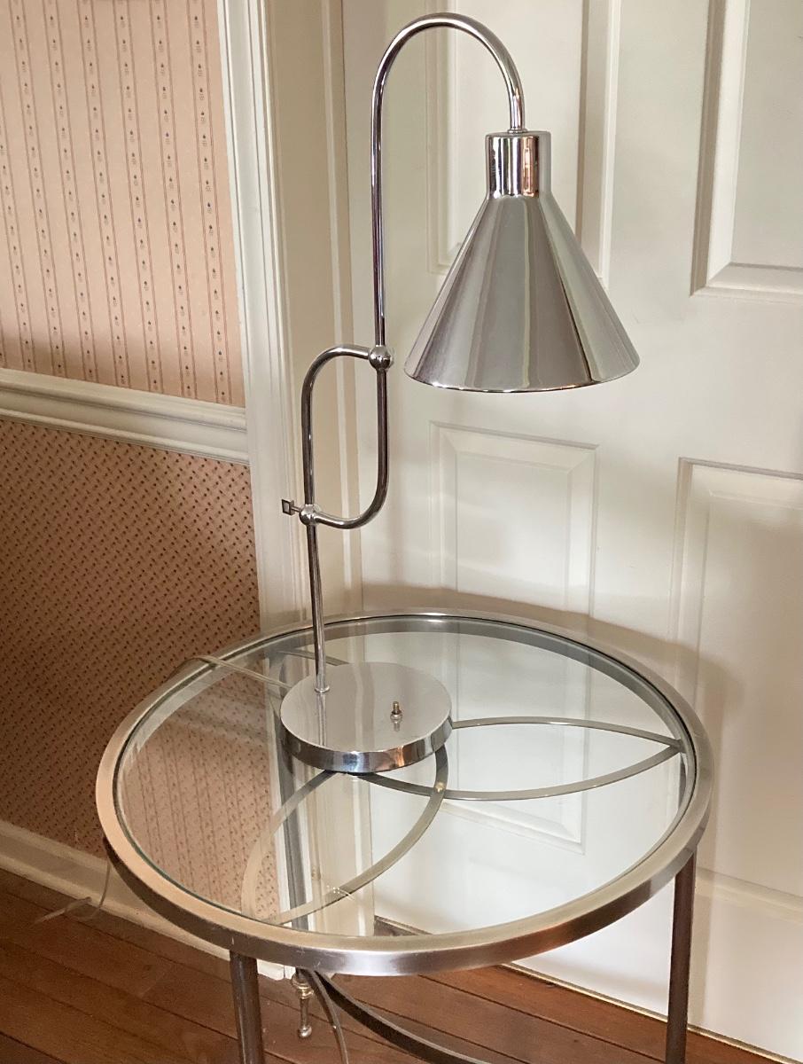 LOT 244: Chrome Glass Top Accent Table and Table Lamp