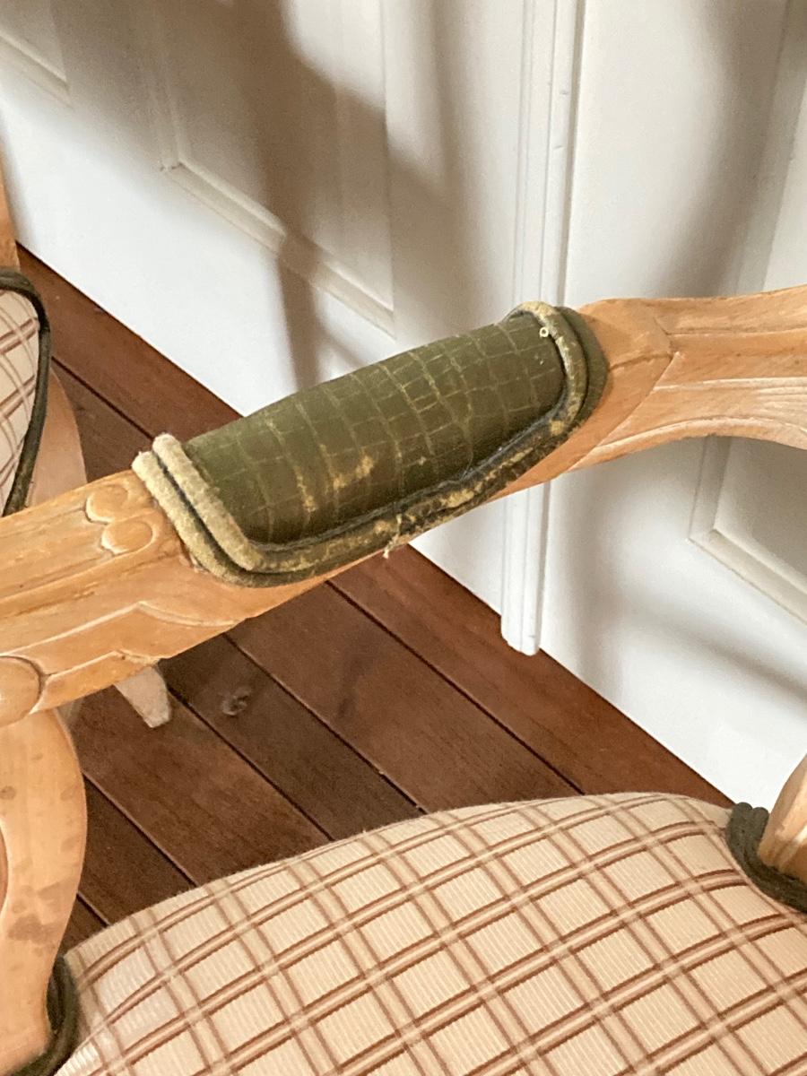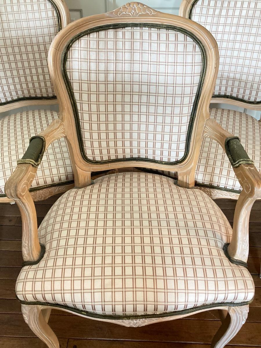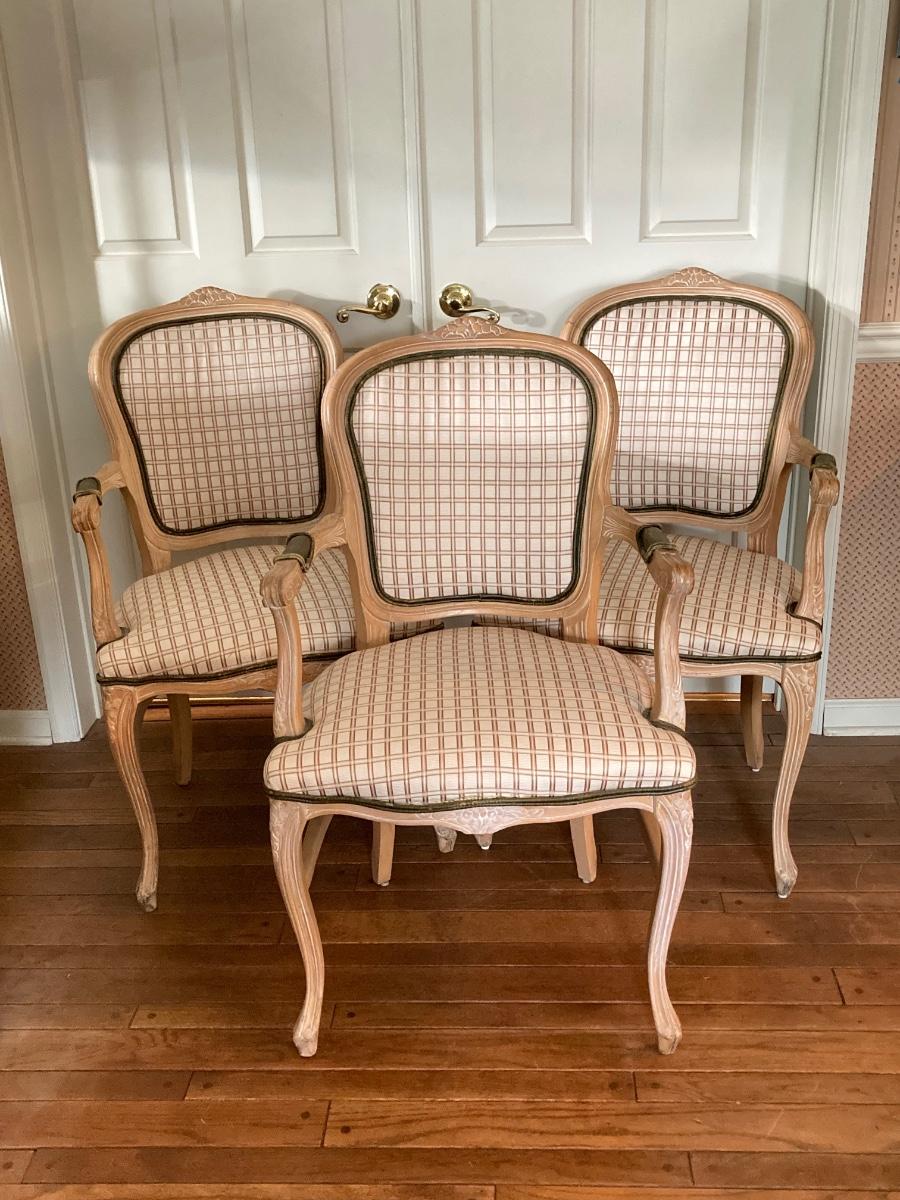 LOT 248: Three Printed Upholstery Carved Wood Armchairs