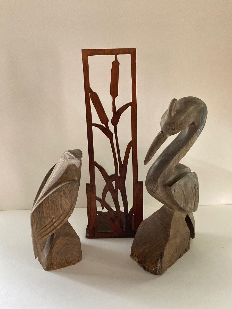 LOT 249: Collection of Carved Wood Decor - Bird Statues and More