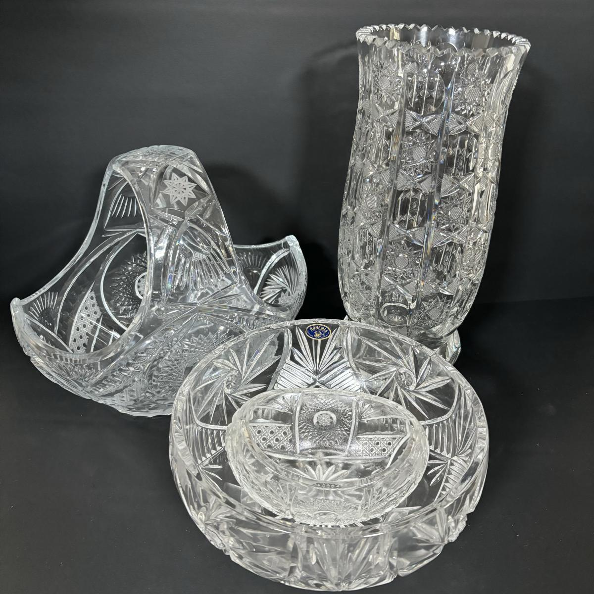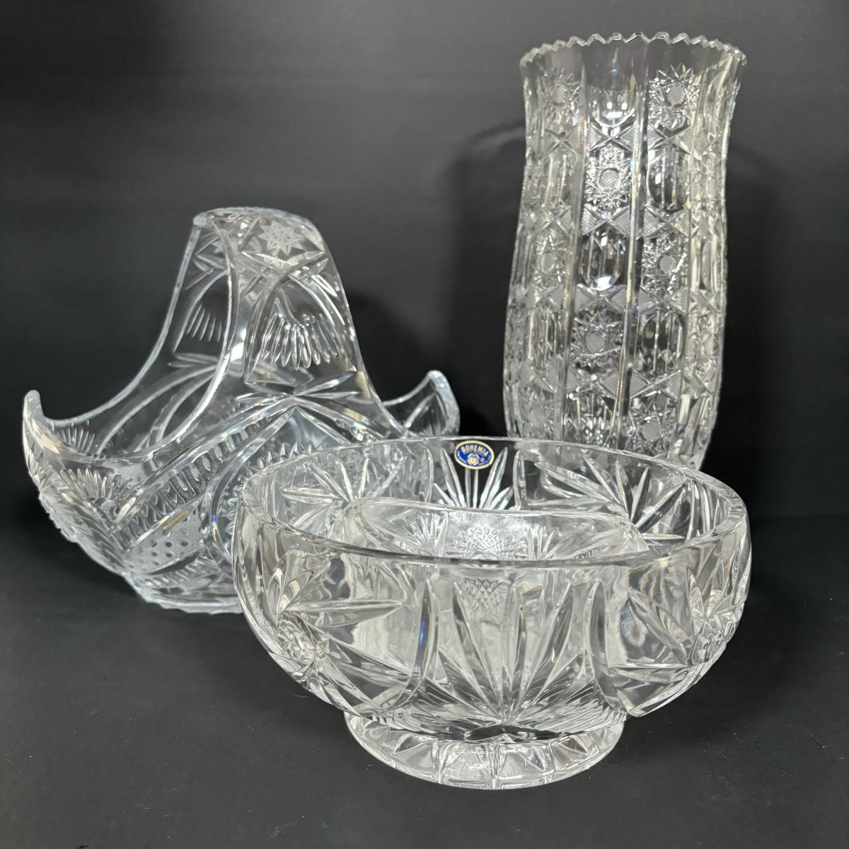 LOT 251: Bohemia Crystal Collection: Basket, Bowl, Vase