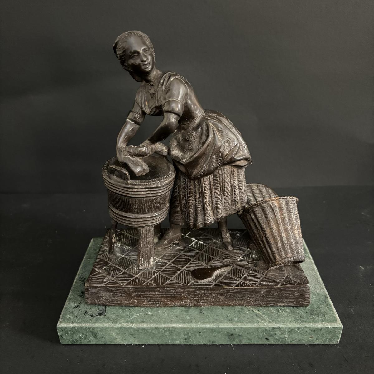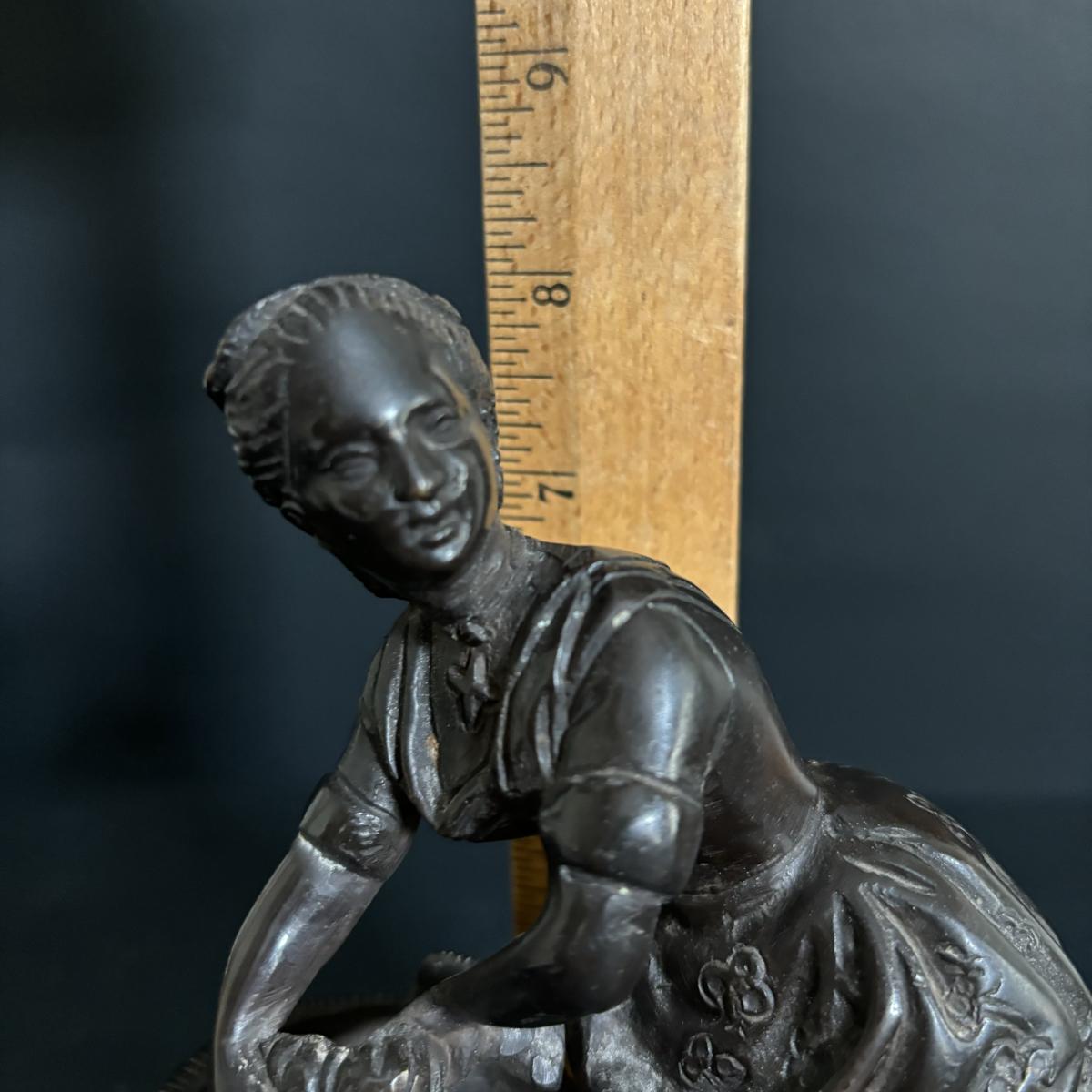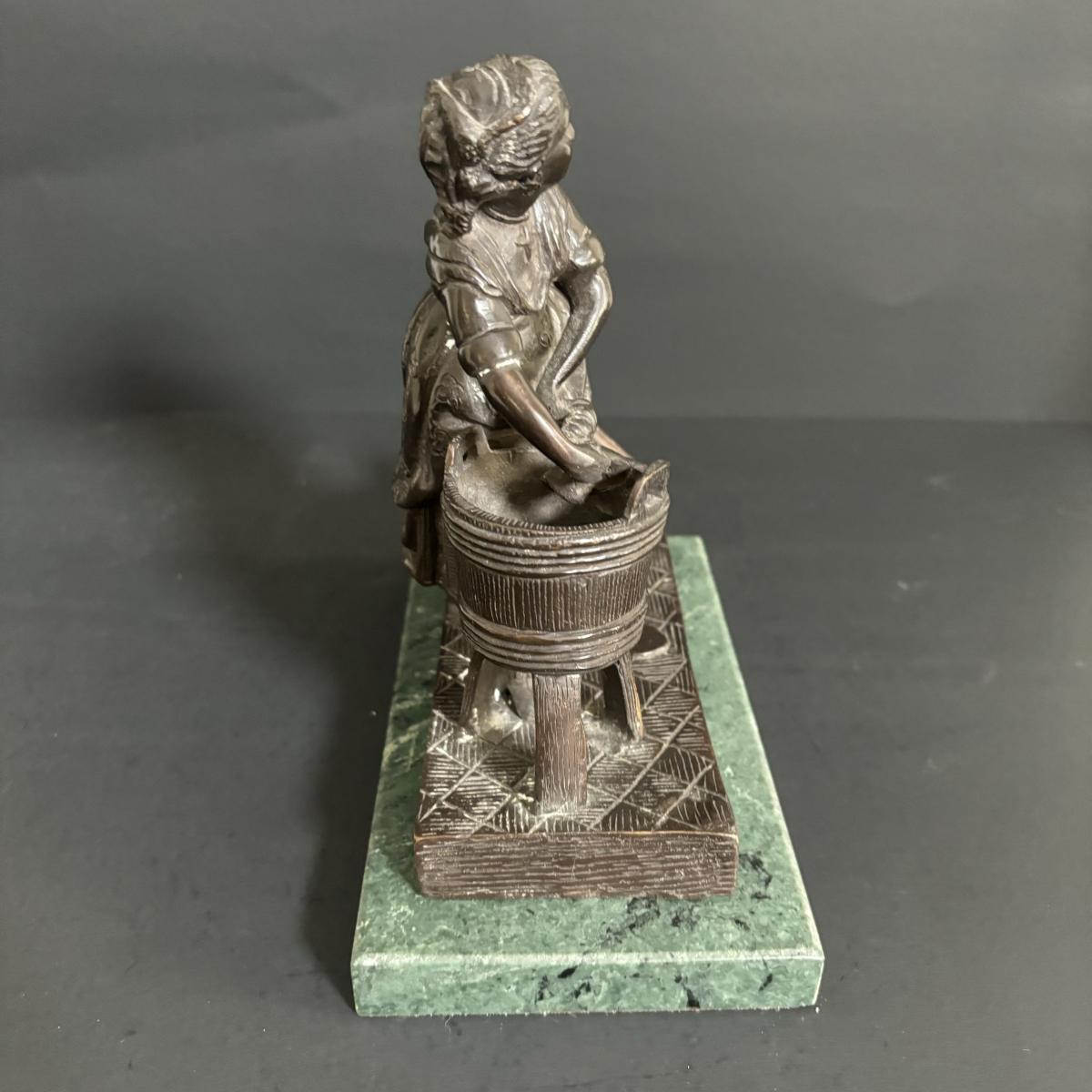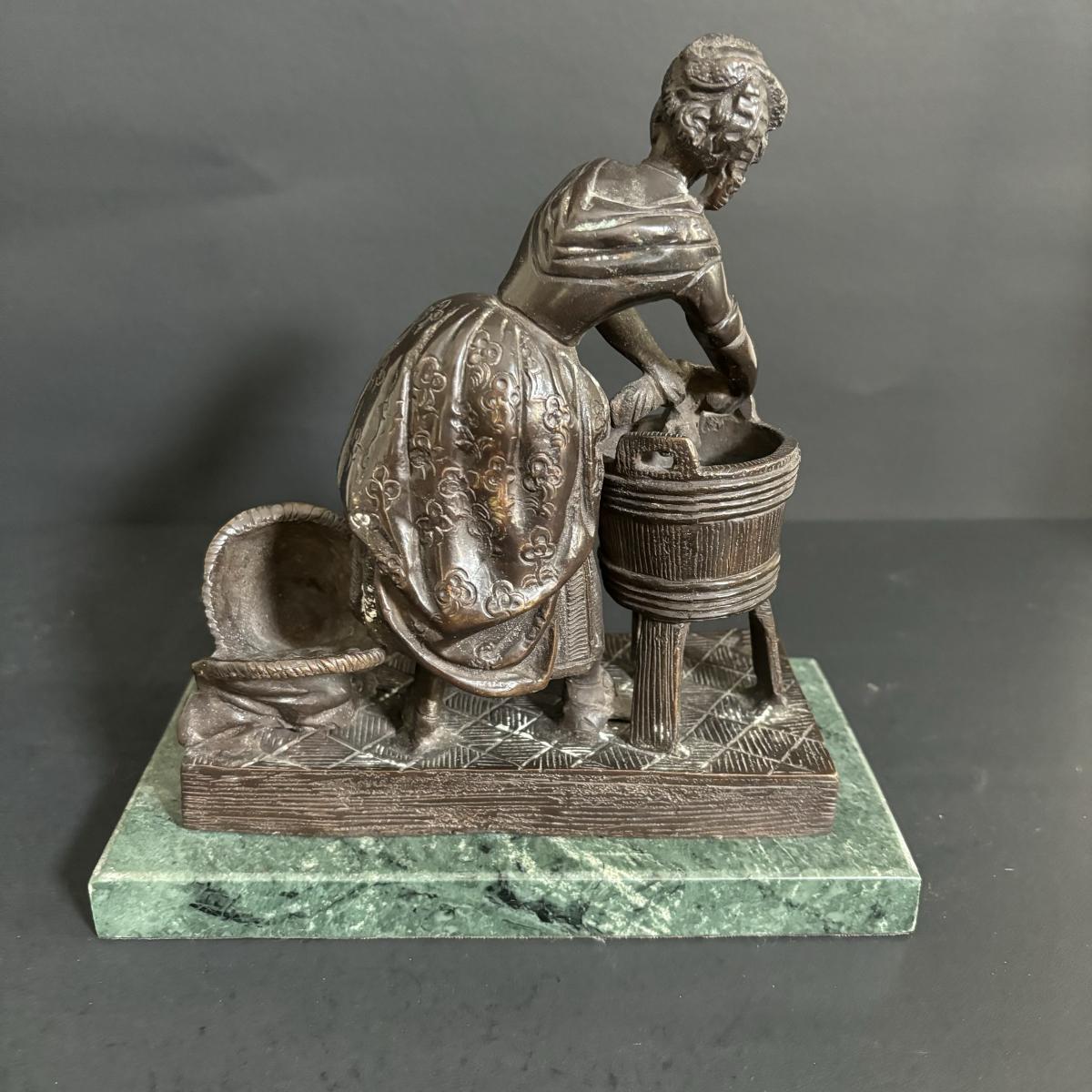 LOT 266: Vintage Andrea by Sadek Bronze Green Marble Statue Lady hand Washing Clothes