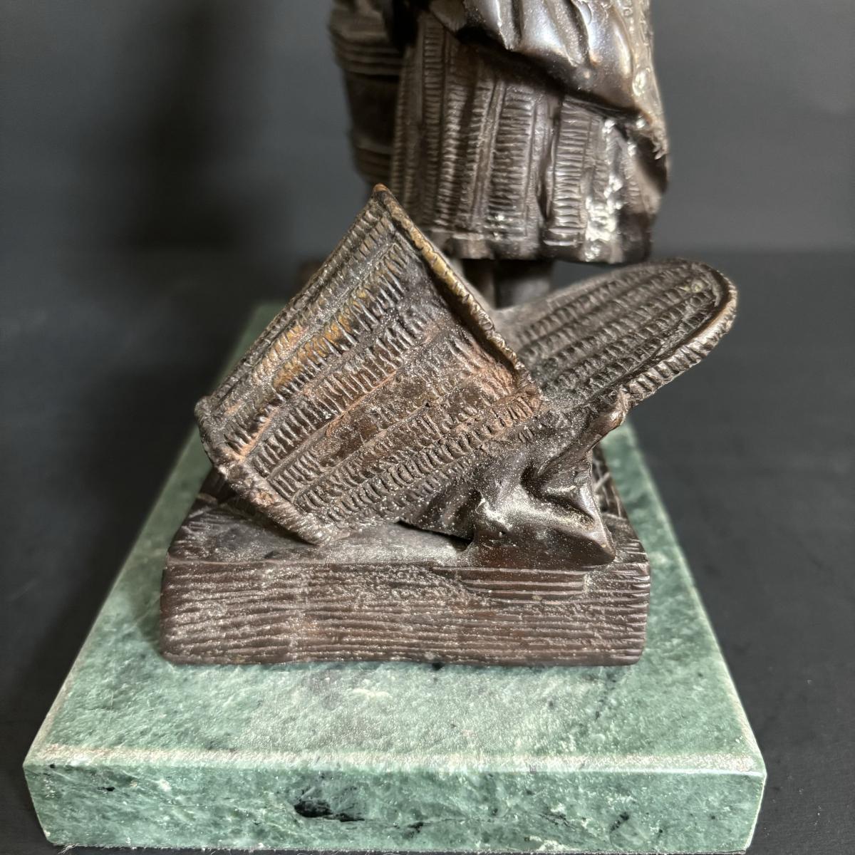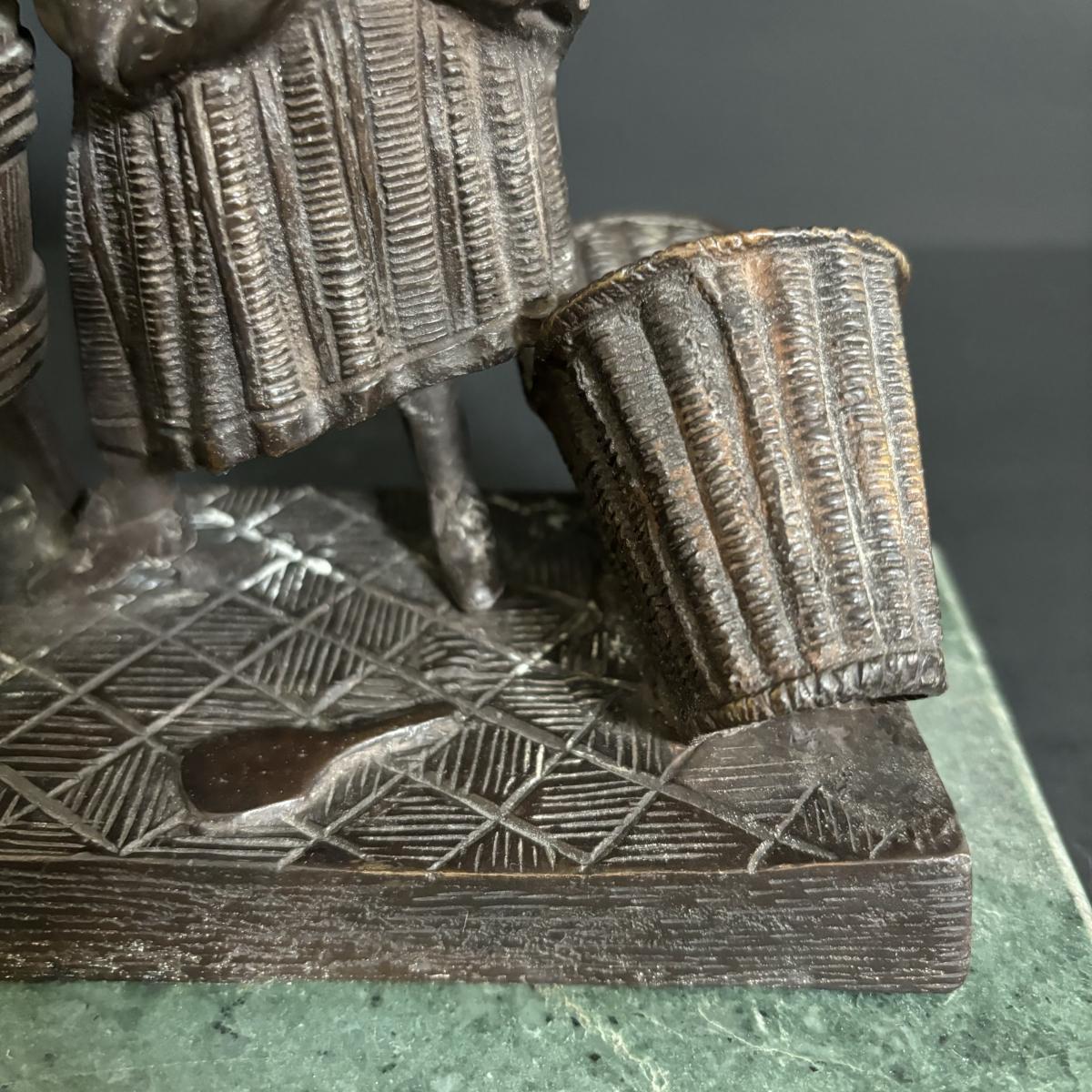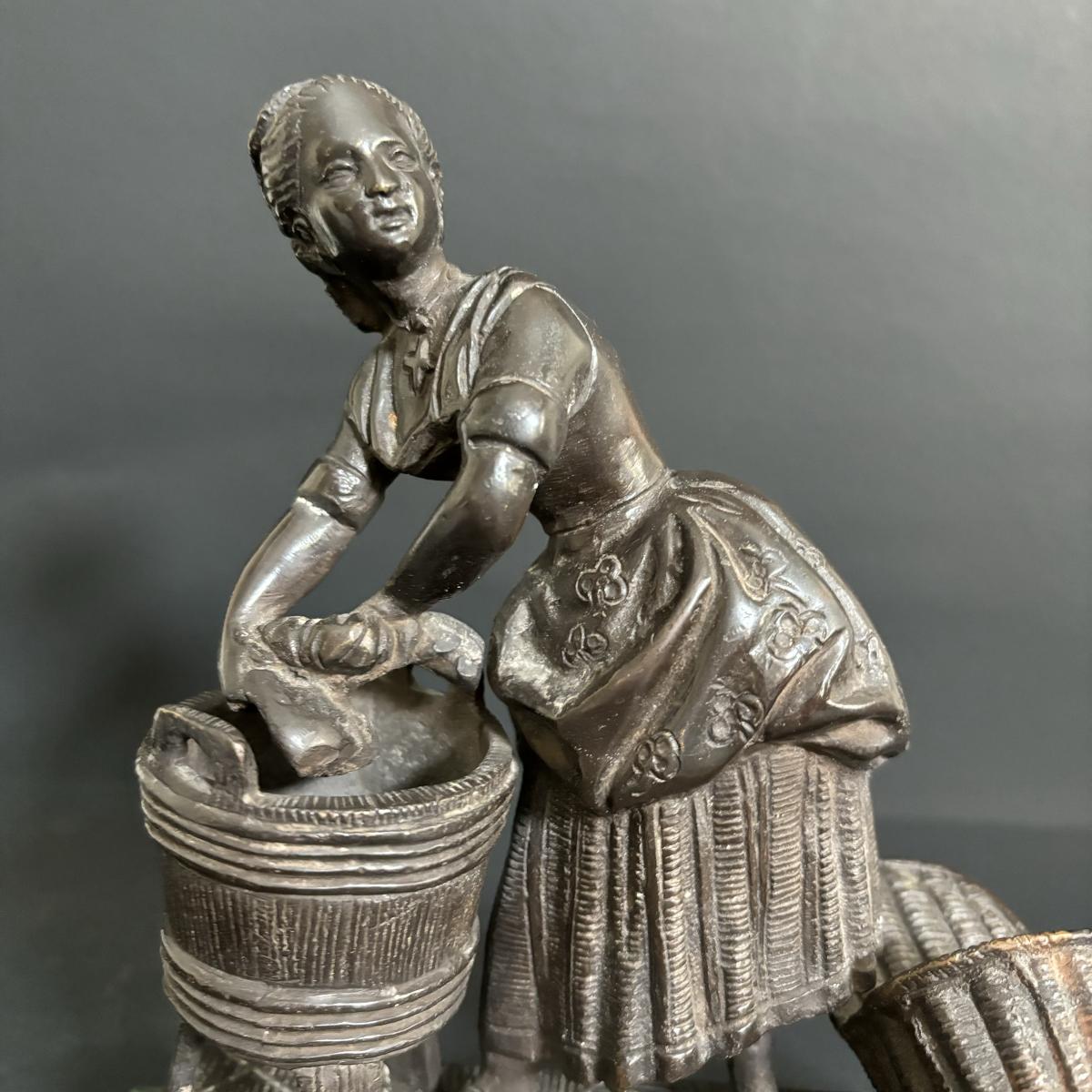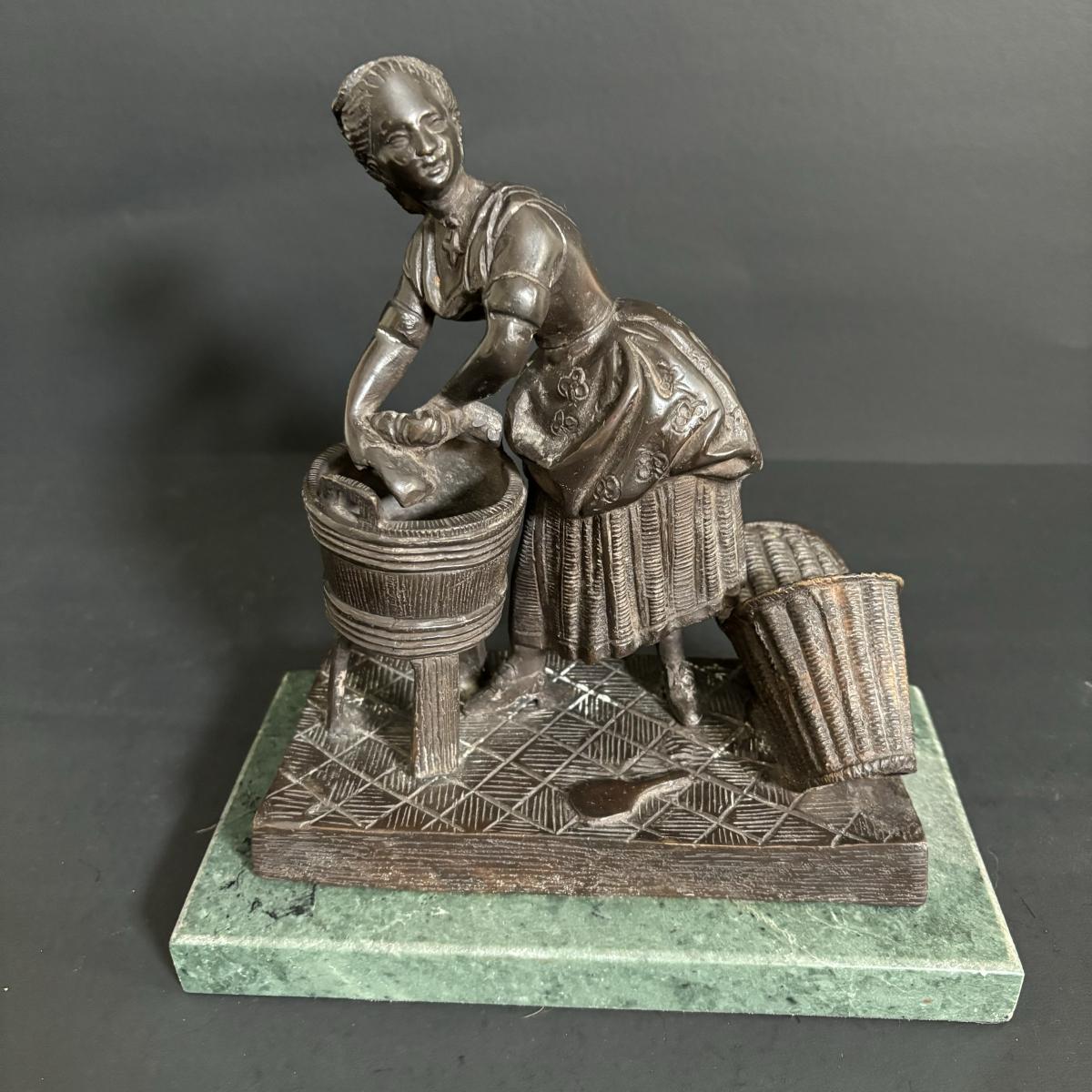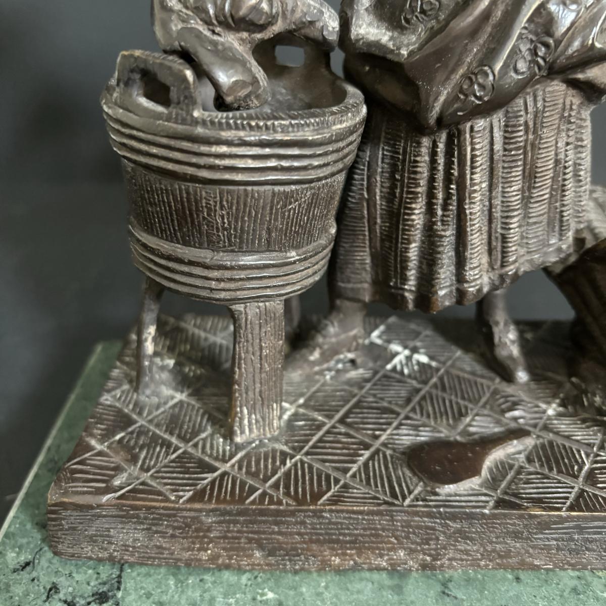 LOT 266: Vintage Andrea by Sadek Bronze Green Marble Statue Lady hand Washing Clothes