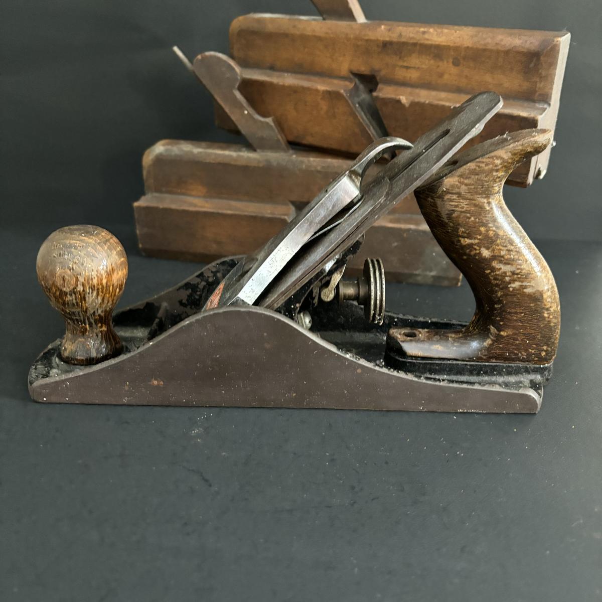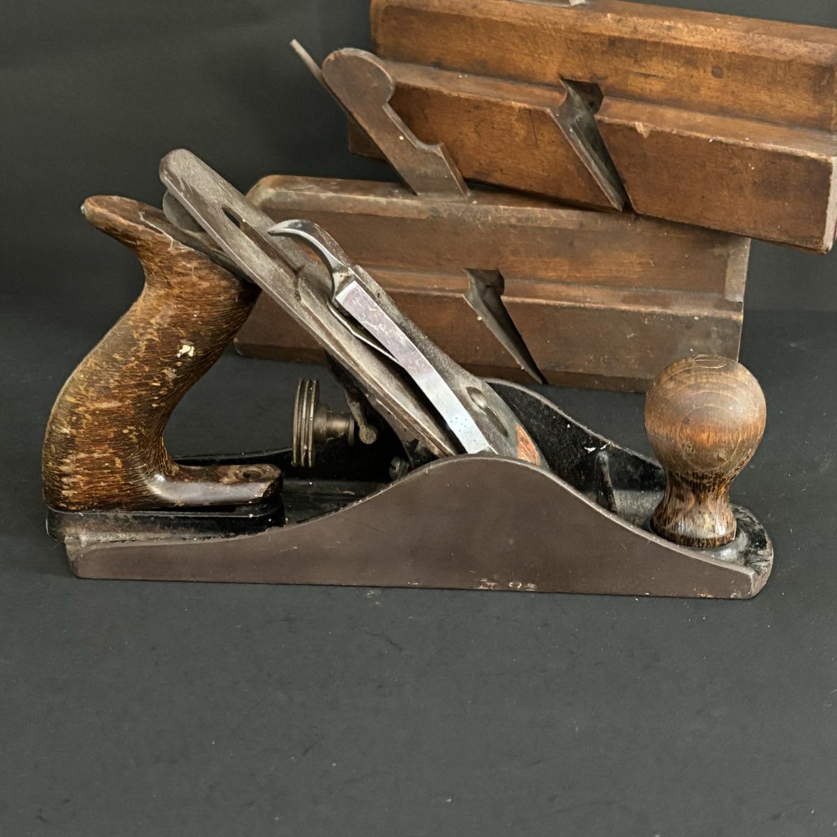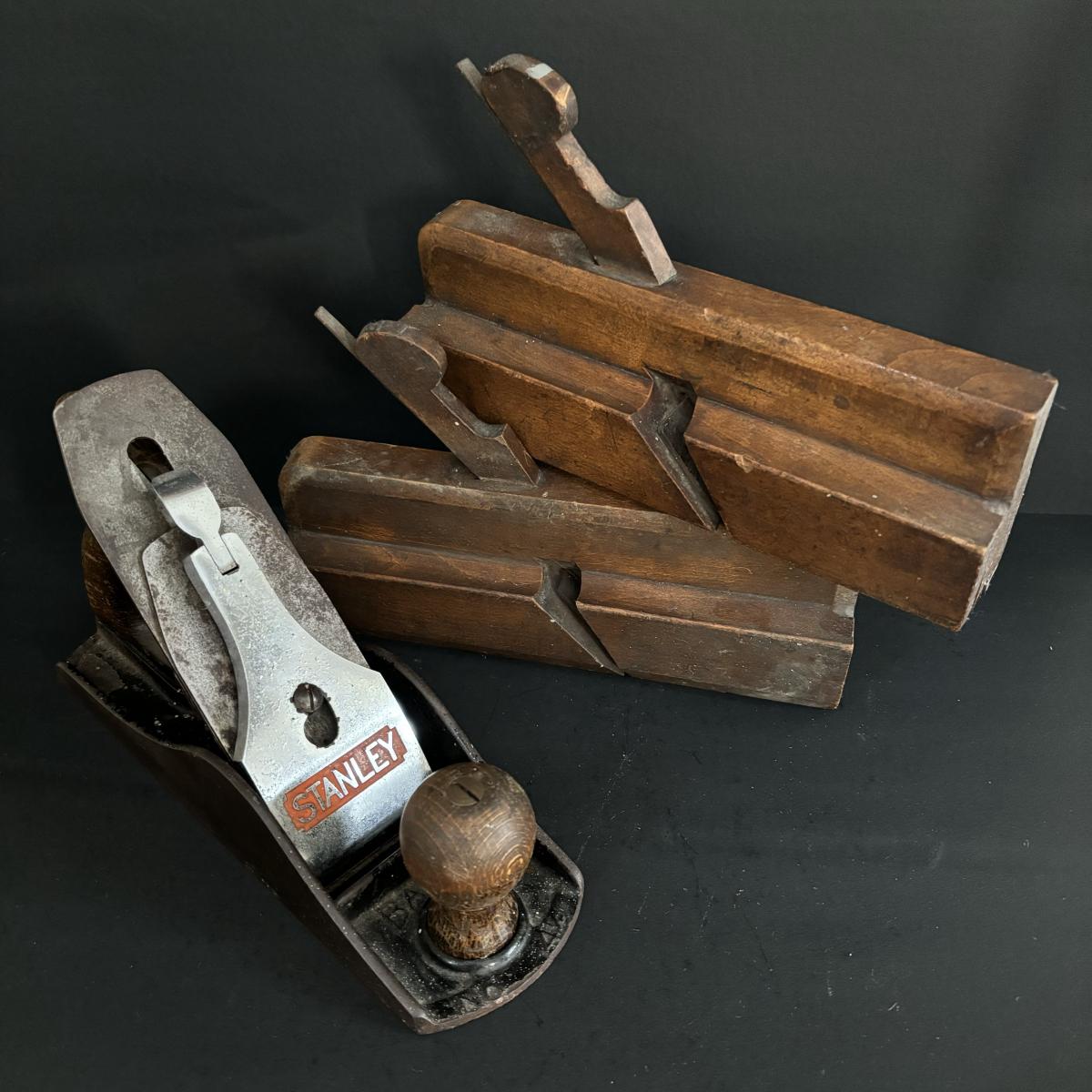 LOT 268 Antique Wooden Molding Planes & Vintage Stanley Bailey No4 Smooth Bottom Hand Plane, Made in England