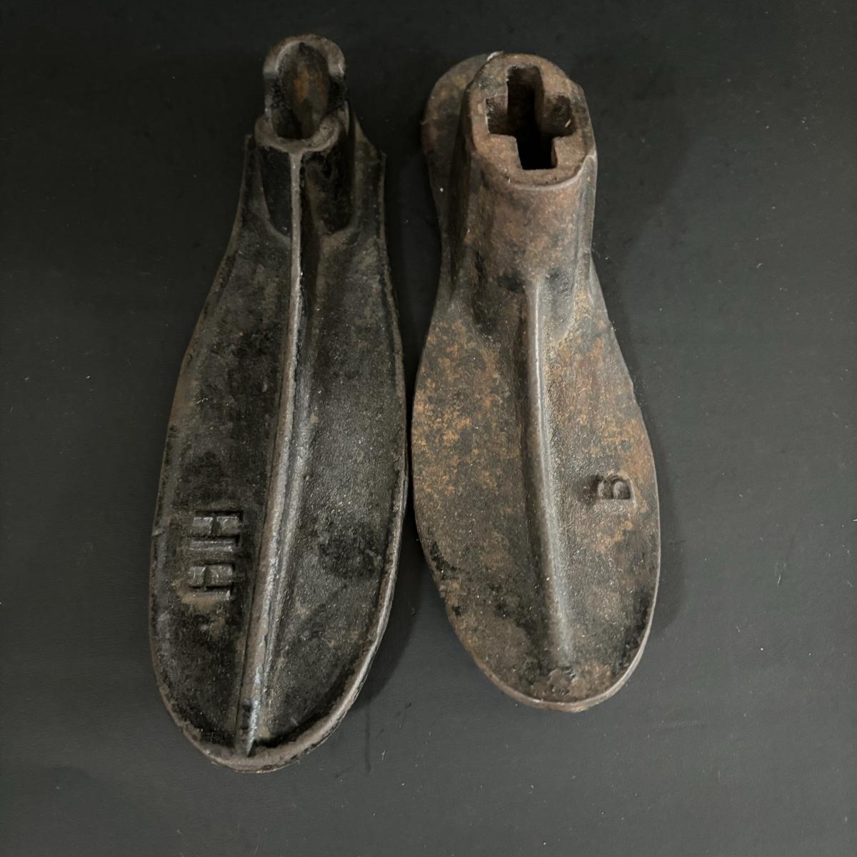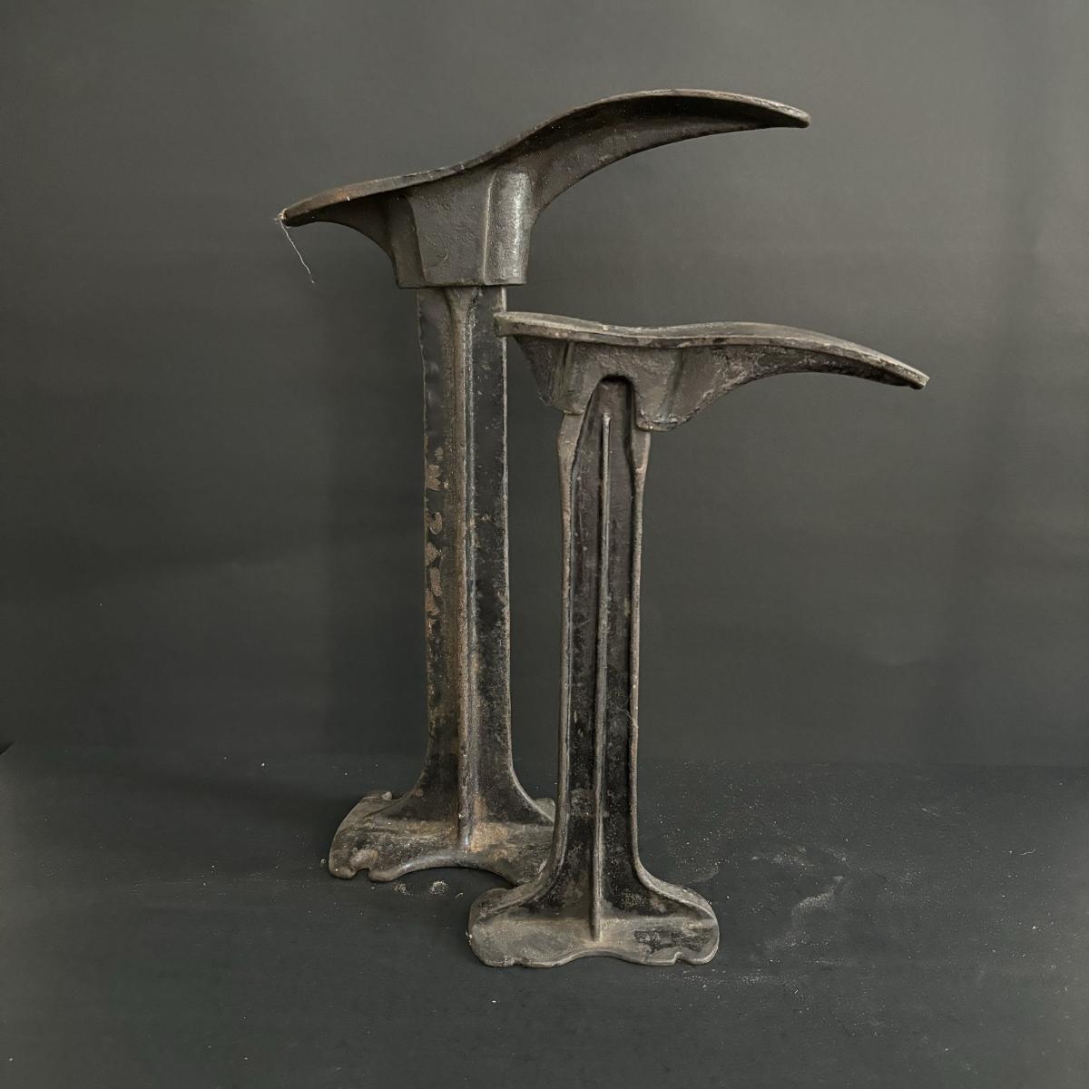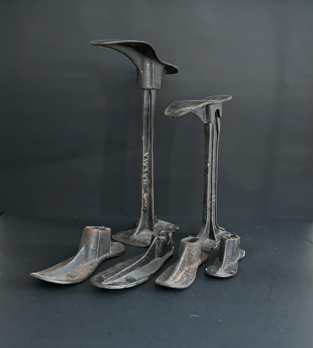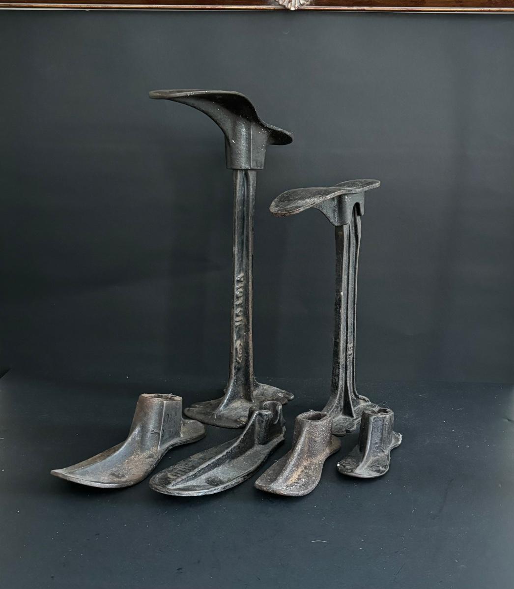 LOT. 269: Vintage Cast Iron Shoemaker Cobbler Anvil Shoe Stands with Shoe Forms