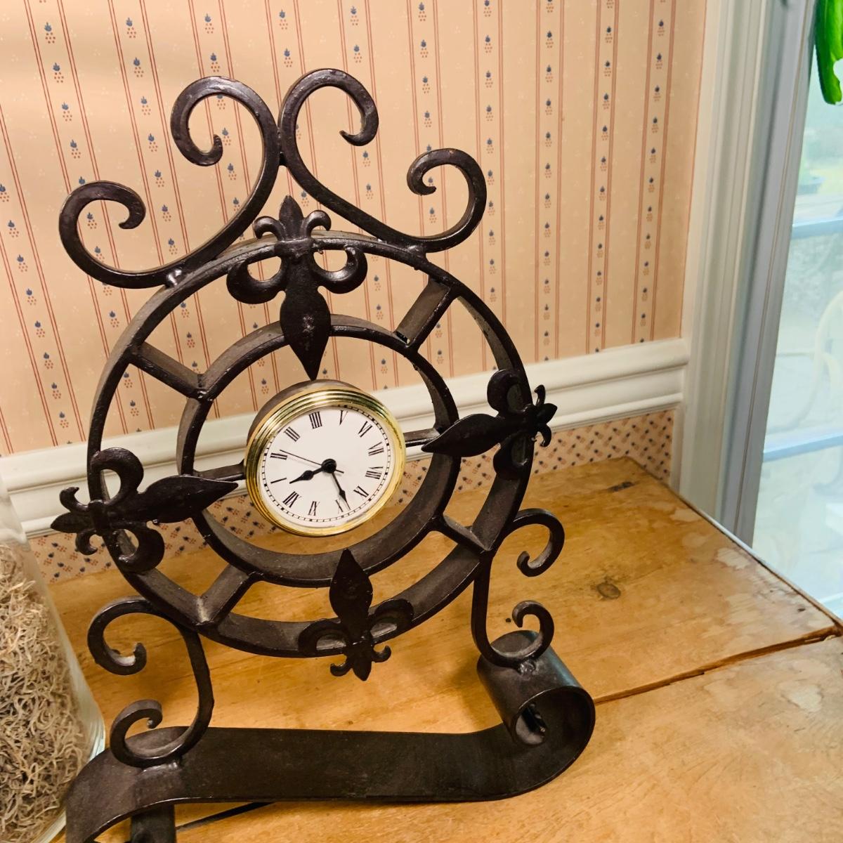 LOT273:: Very Large Glass Vase with Lid and Metal Mantle Clock