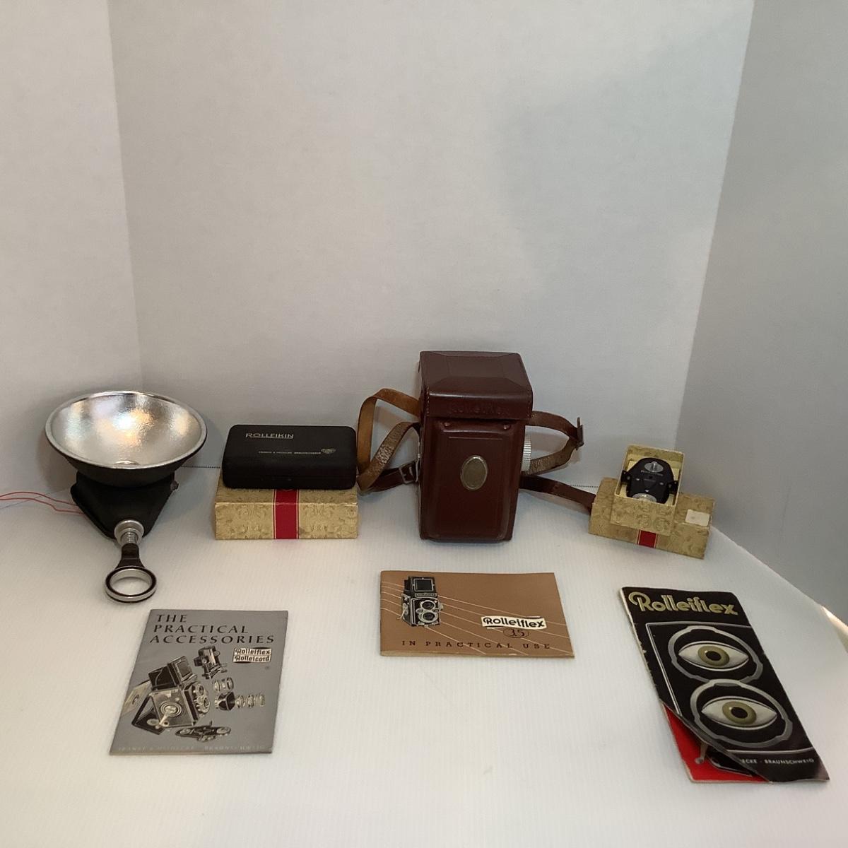 Lot. E - 1063 Vintage Rolleiflex Camera, Rollie Flash,  Level and More