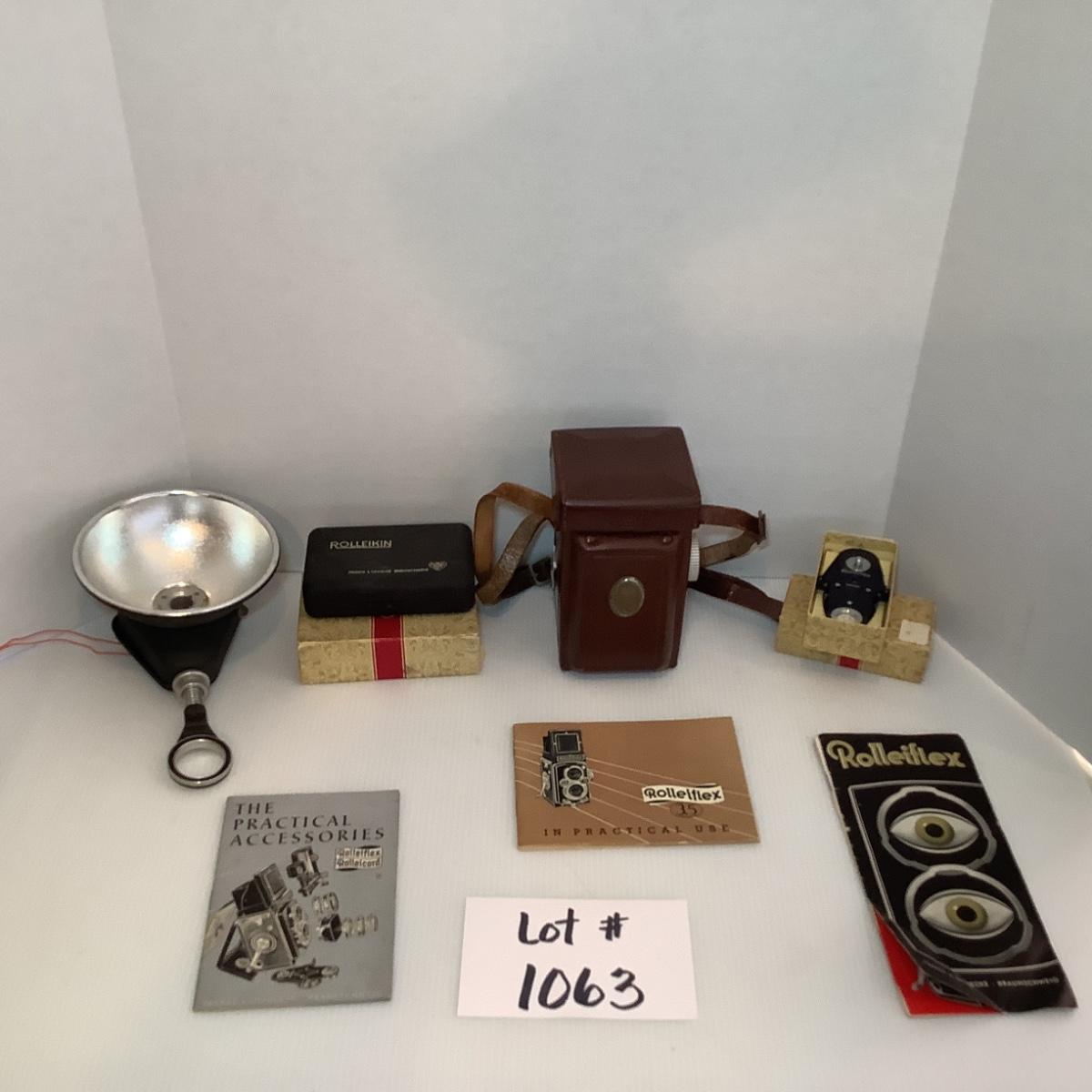 Lot. E - 1063 Vintage Rolleiflex Camera, Rollie Flash, Level and More