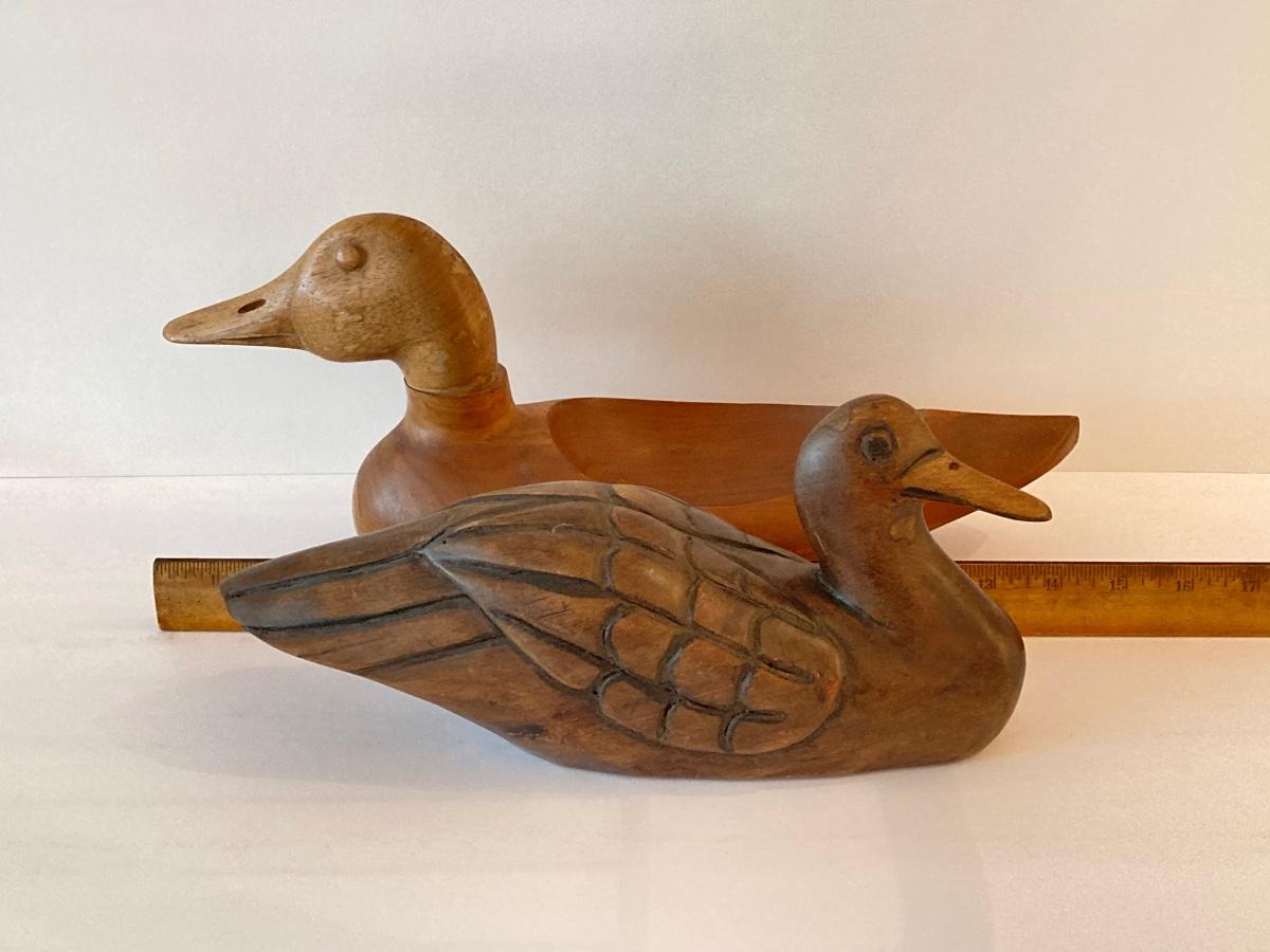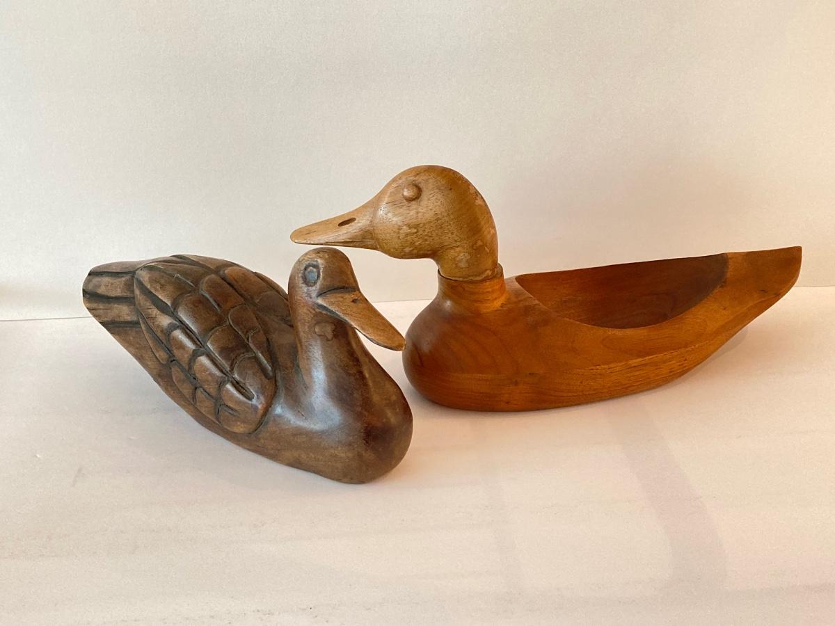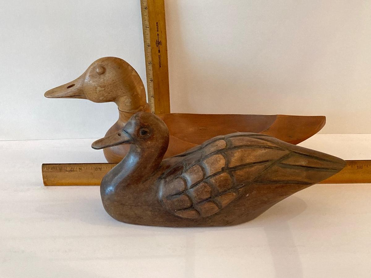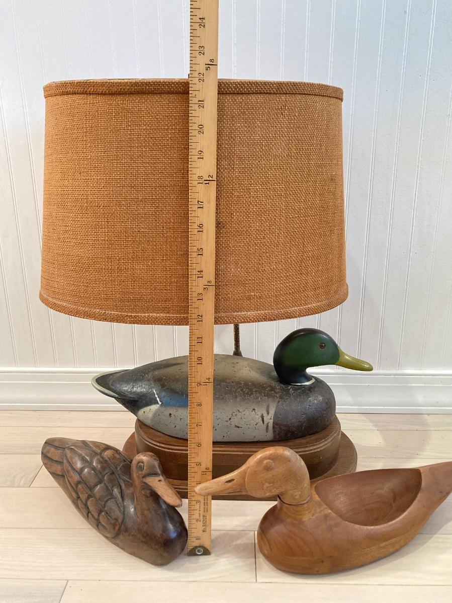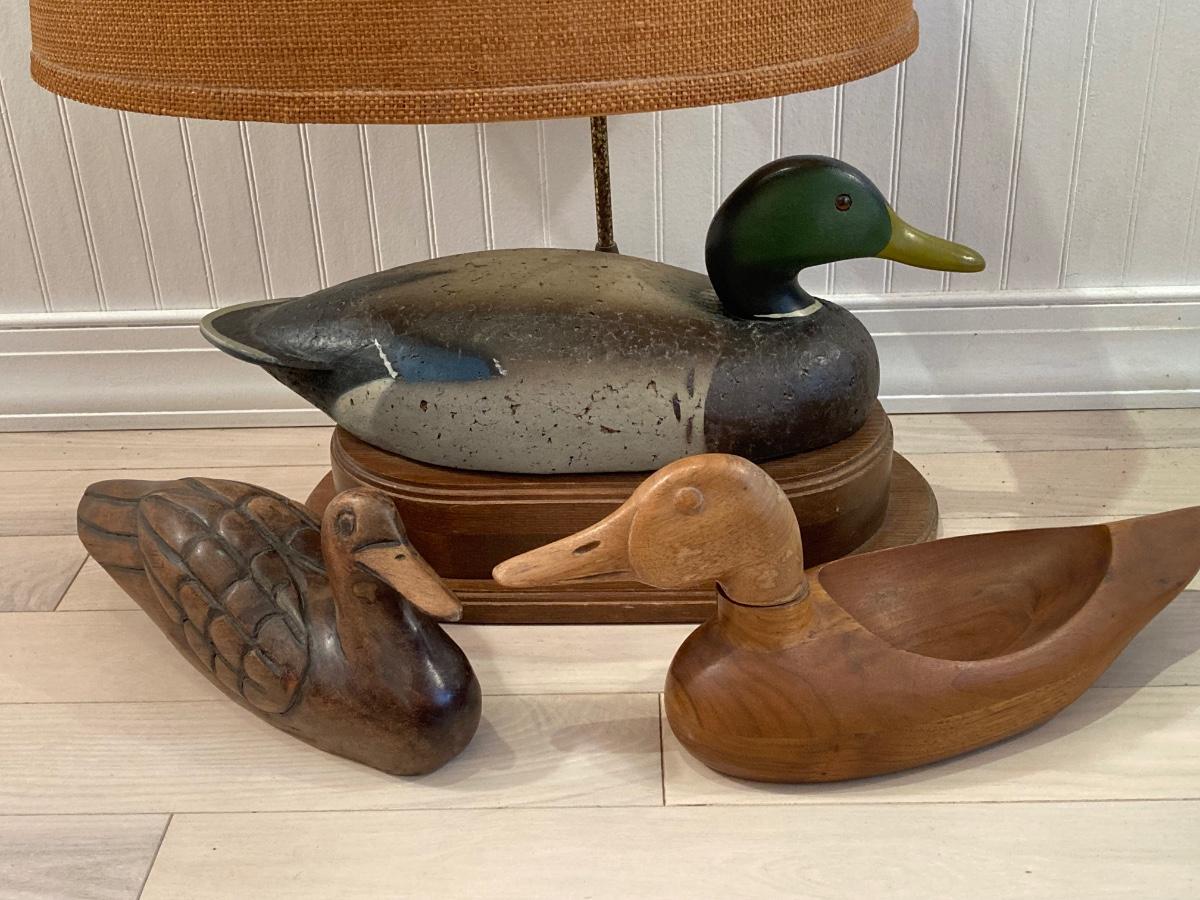LOT 287: Vintage Wooden Duck Collection - Cornwall Wood Products Lamp and Carved Styles