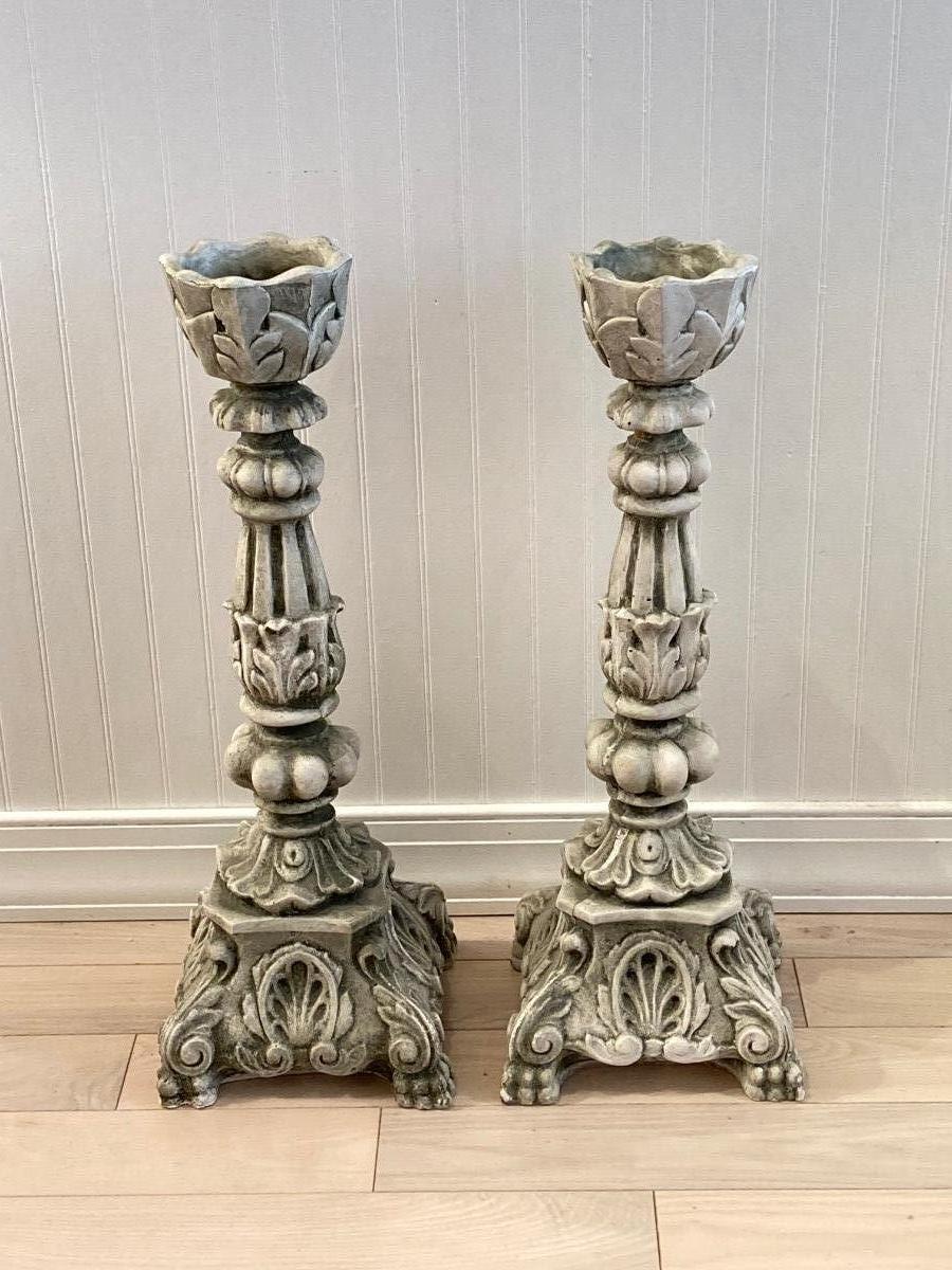 LOT 290: Ornate Tall Pillar Candle Stick Holders by S.F. Imports, Made in Canada