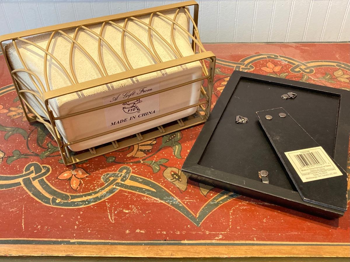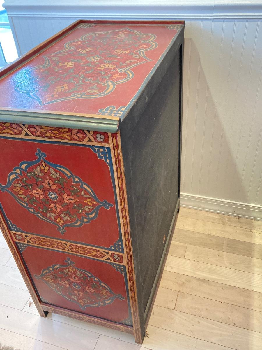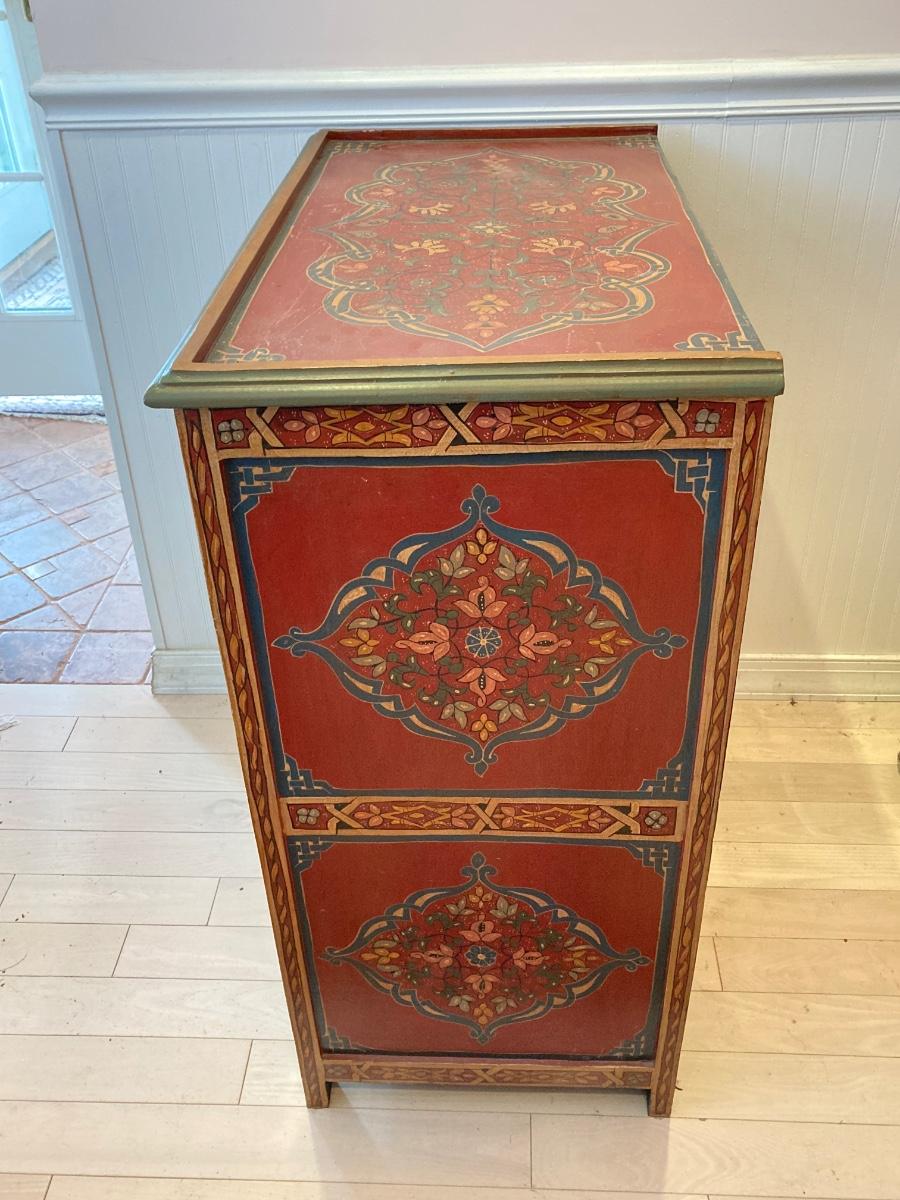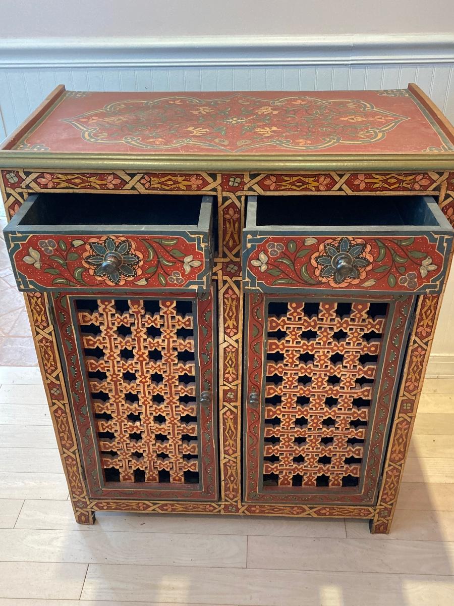 LOT 292: Modern Moroccan Painted Cabinet, Picture Frame and Planter Basket