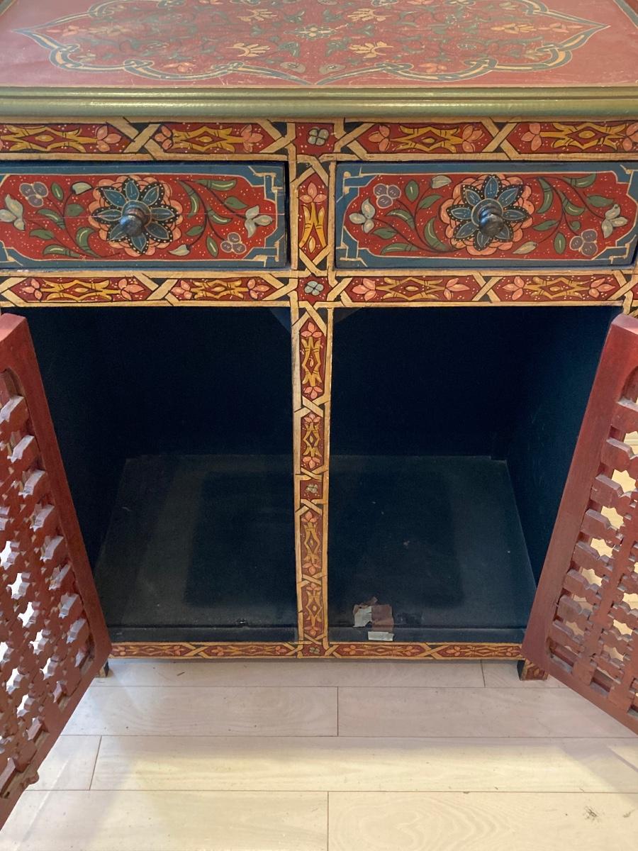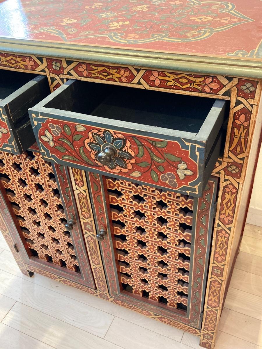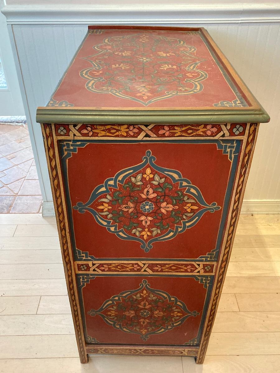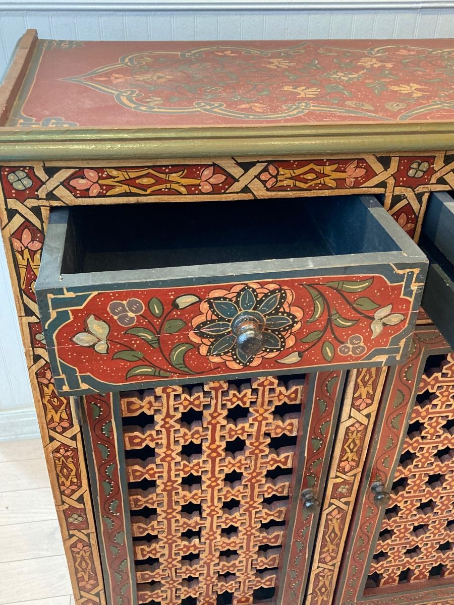 LOT 292: Modern Moroccan Painted Cabinet, Picture Frame and Planter Basket