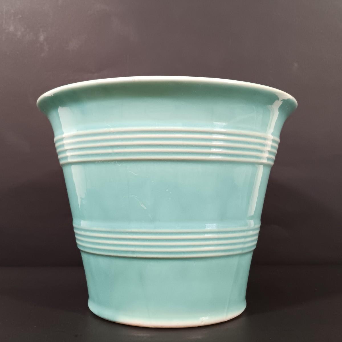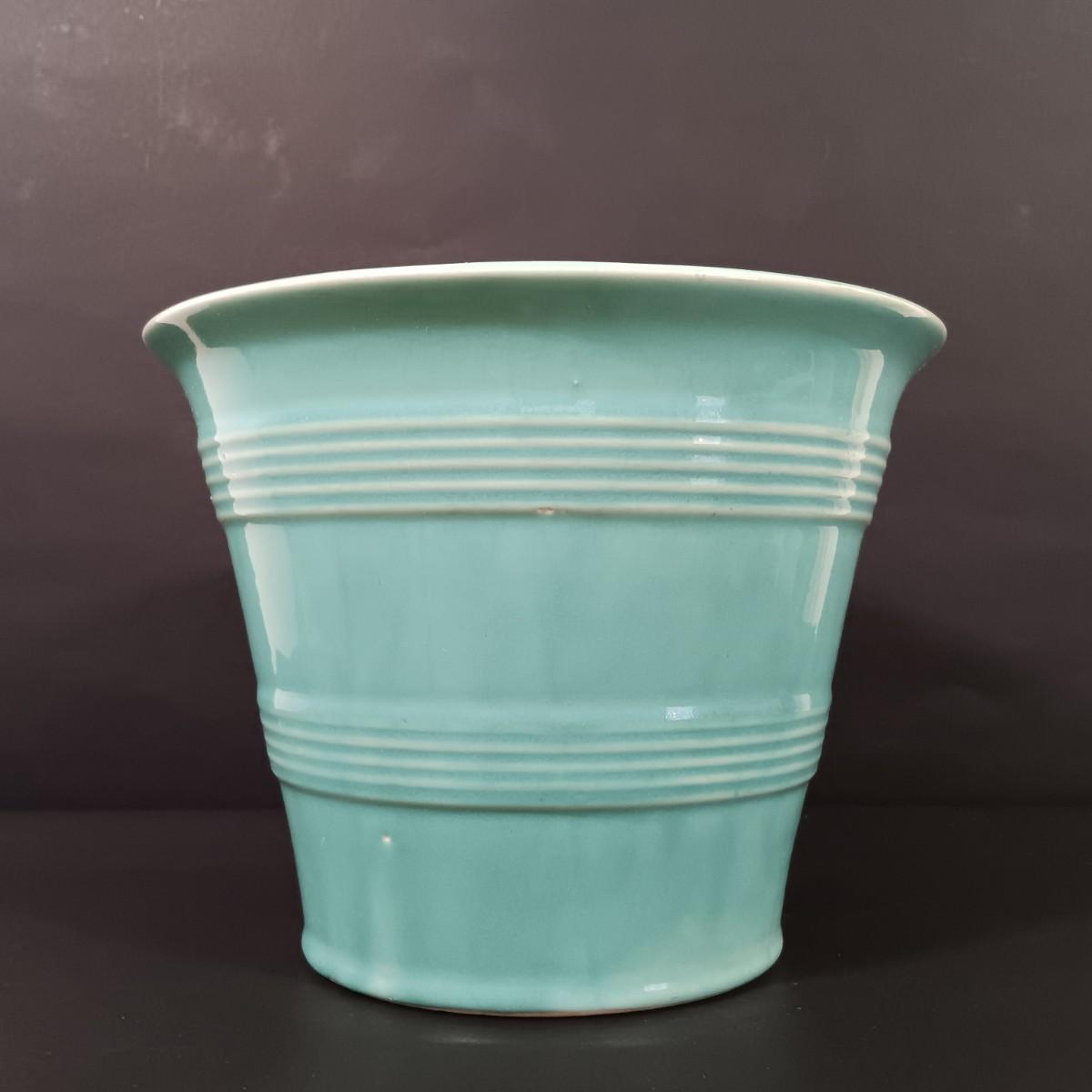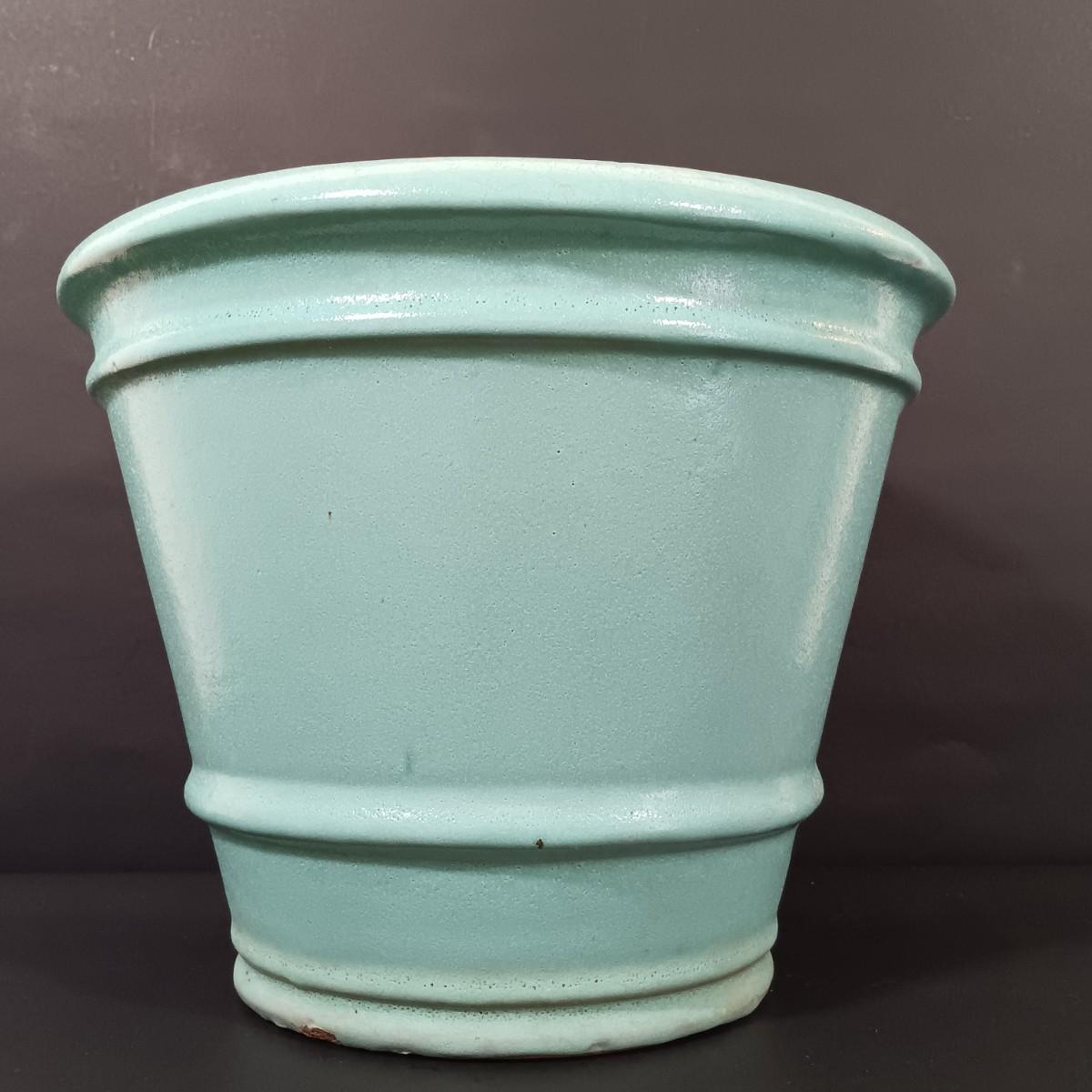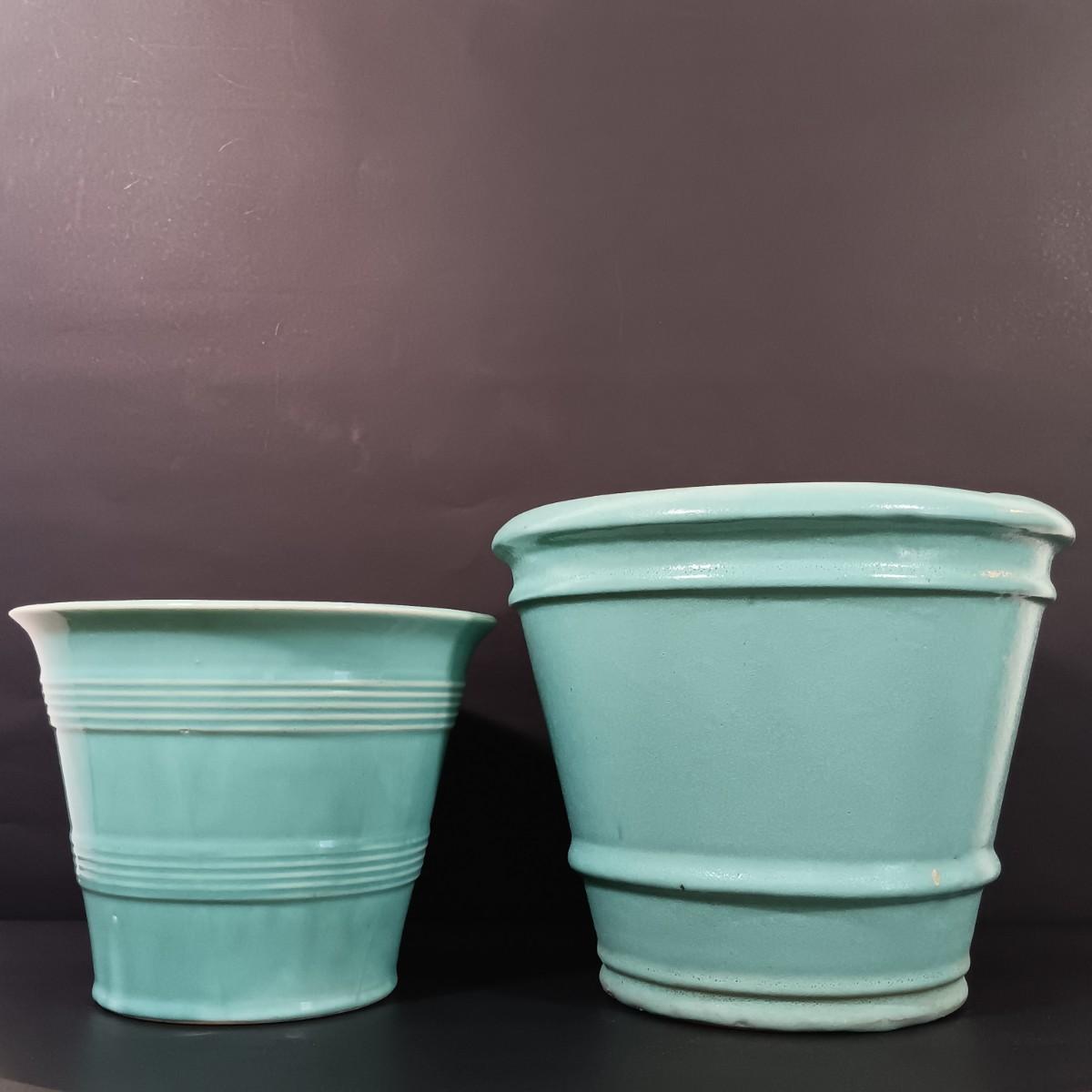 LOT 301: Set of 2 Aqua Glazed Pottery Planters