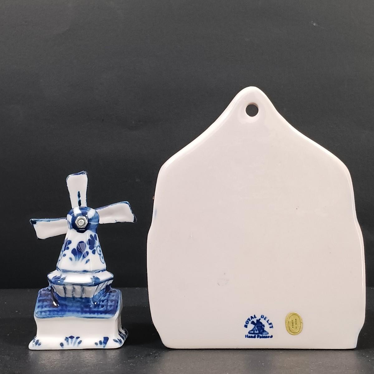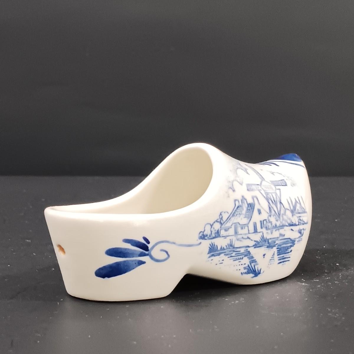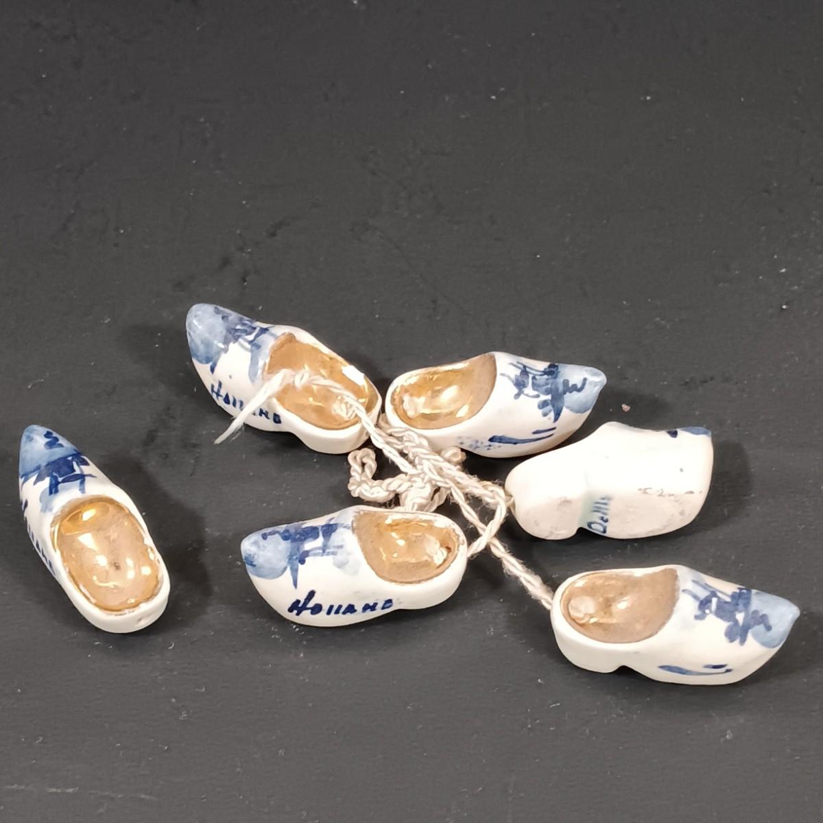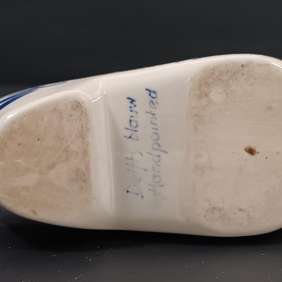 LOT 305: Delft Holland Porcelain Shoes and Spoon Display with Lusterware Vase, Salt Box & Windmill Salt Shaker