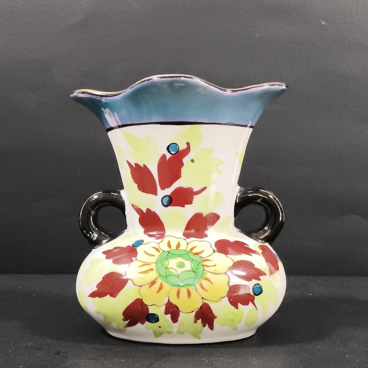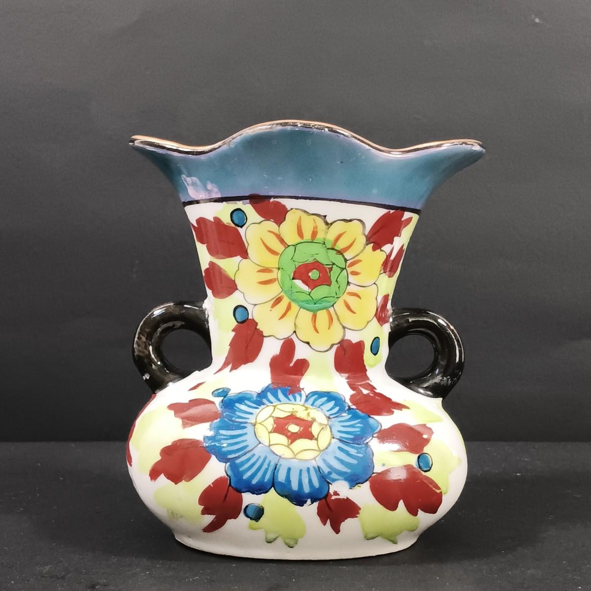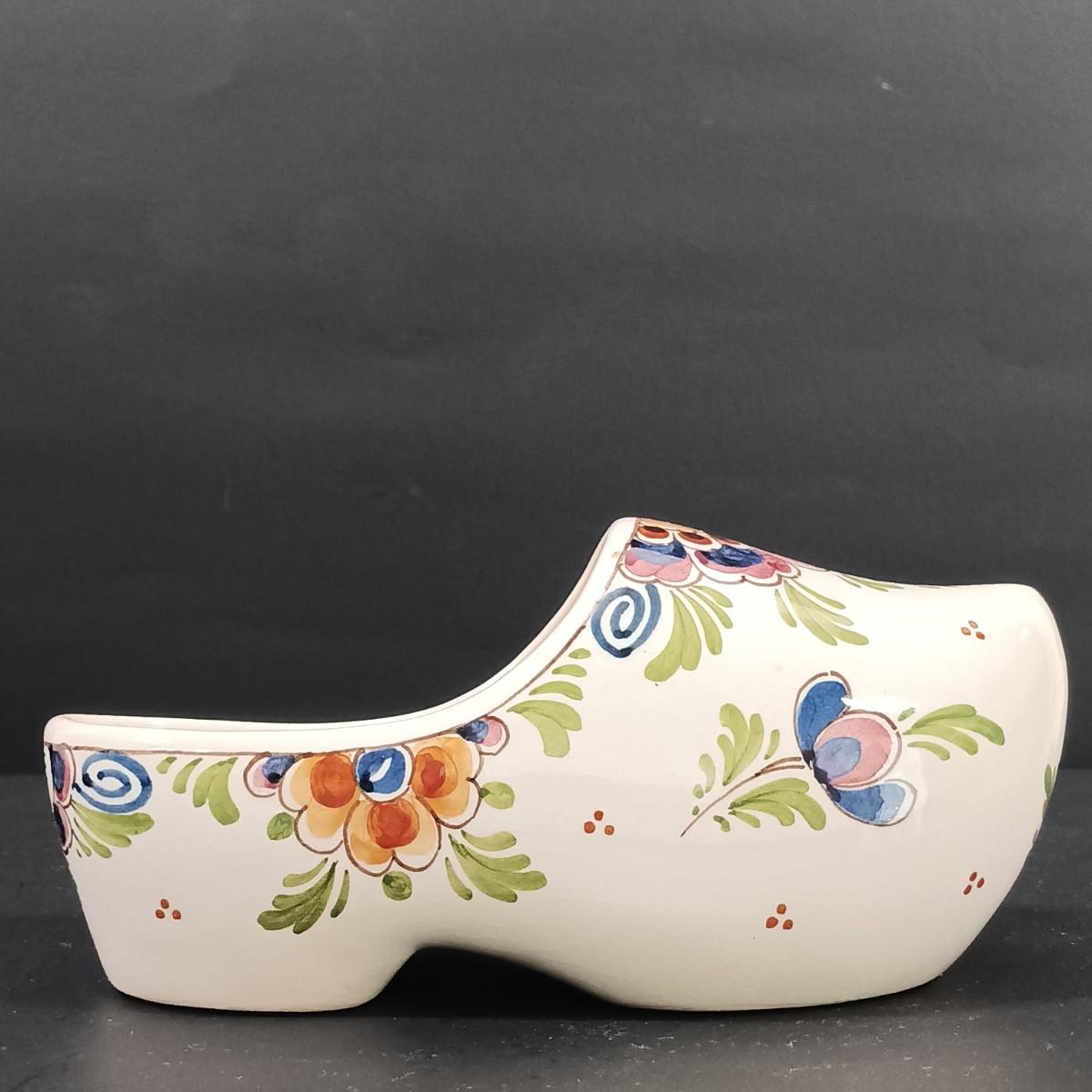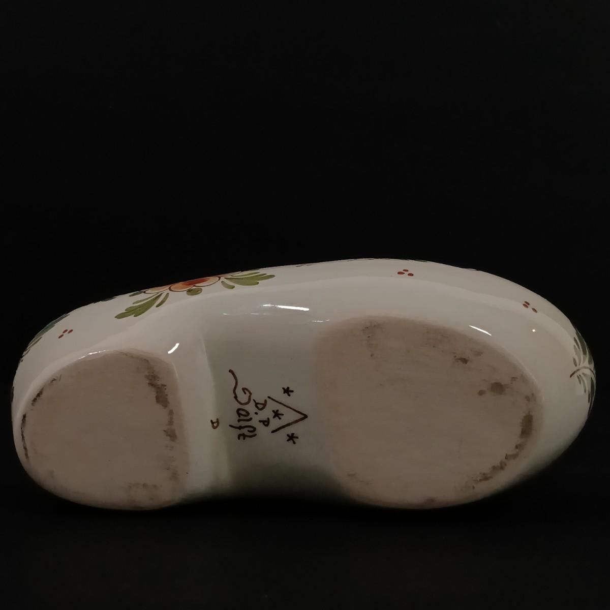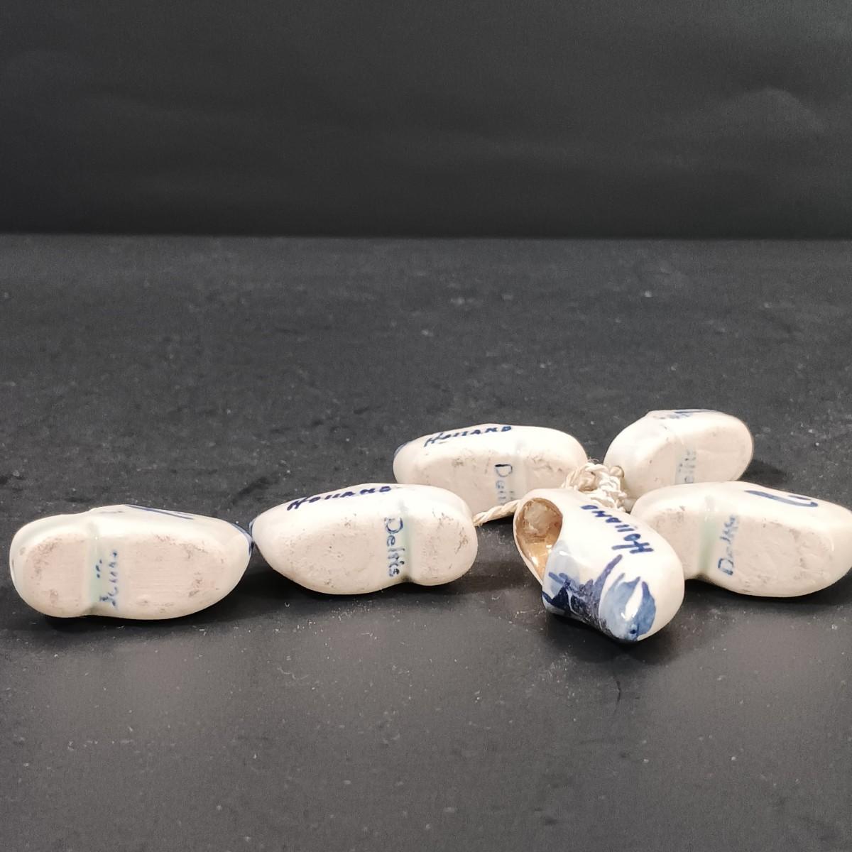 LOT 305: Delft Holland Porcelain Shoes and Spoon Display with Lusterware Vase, Salt Box & Windmill Salt Shaker