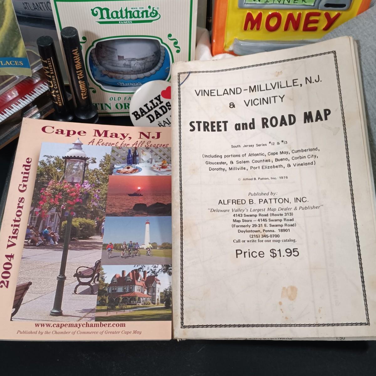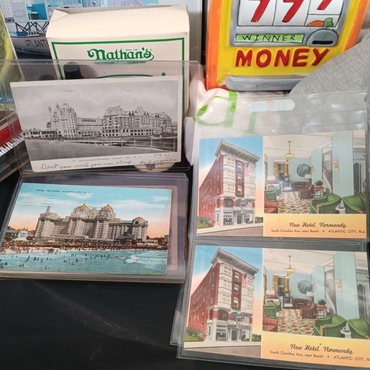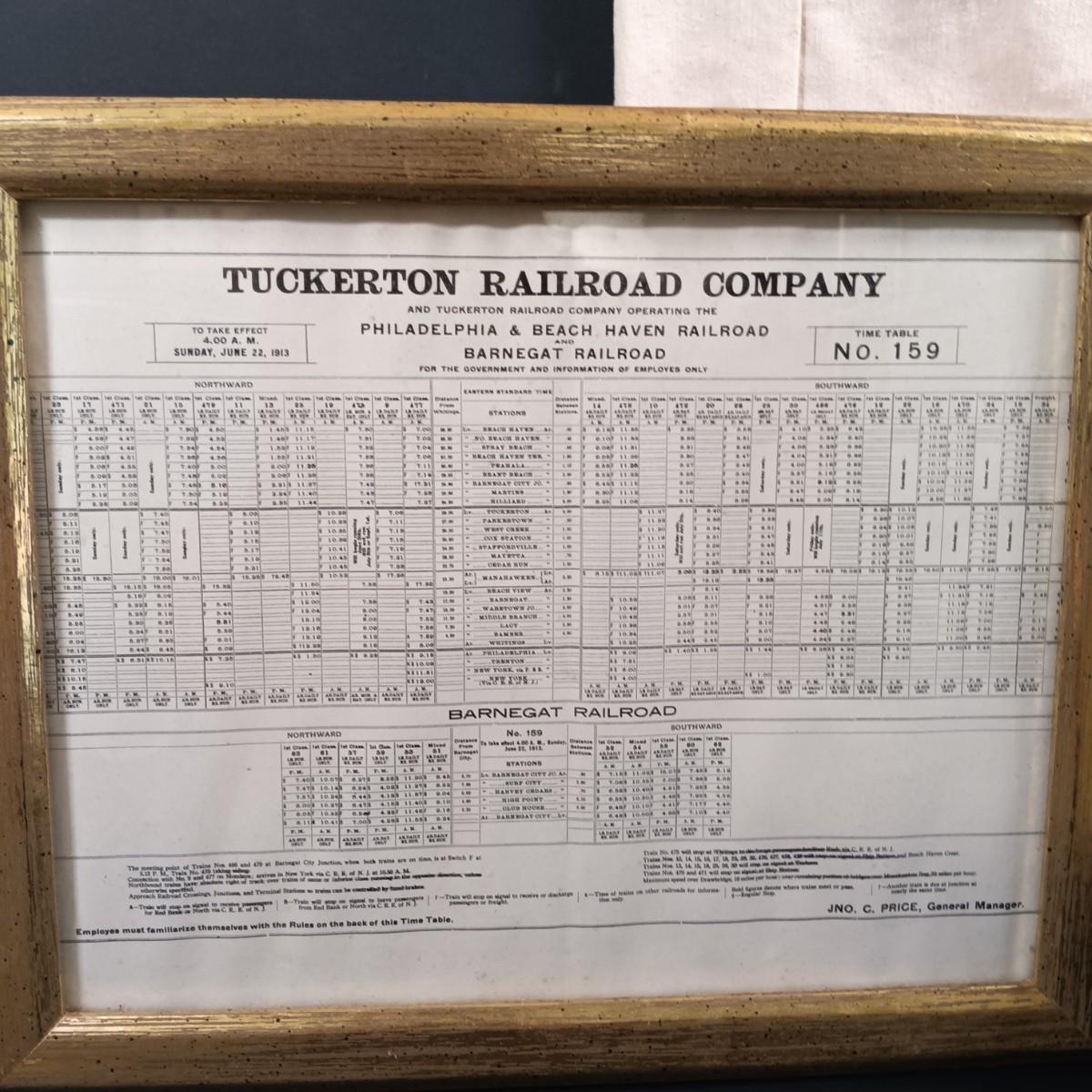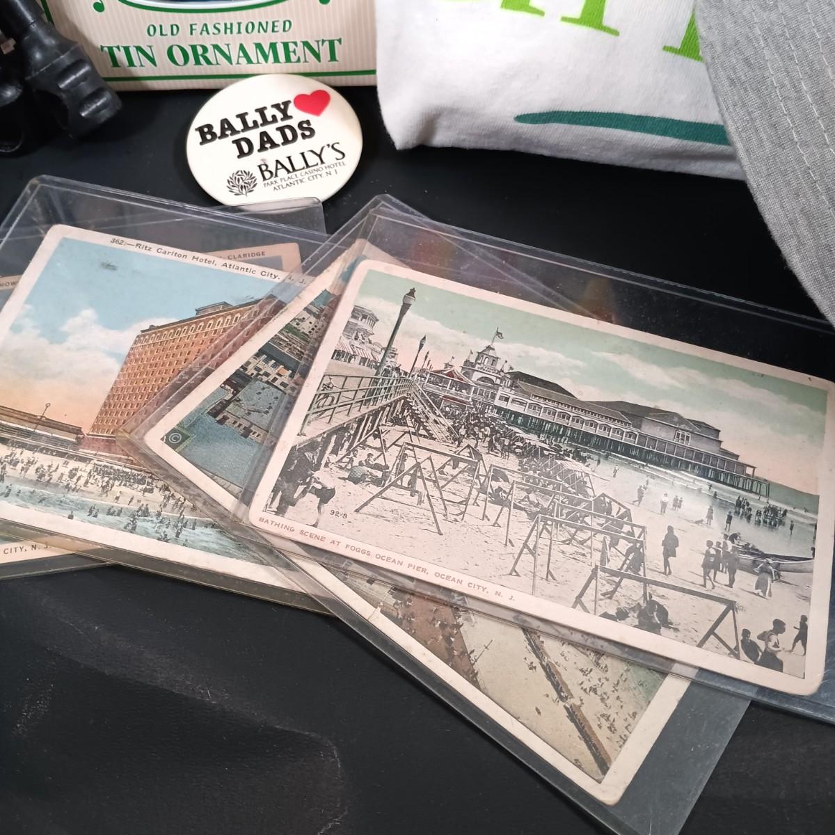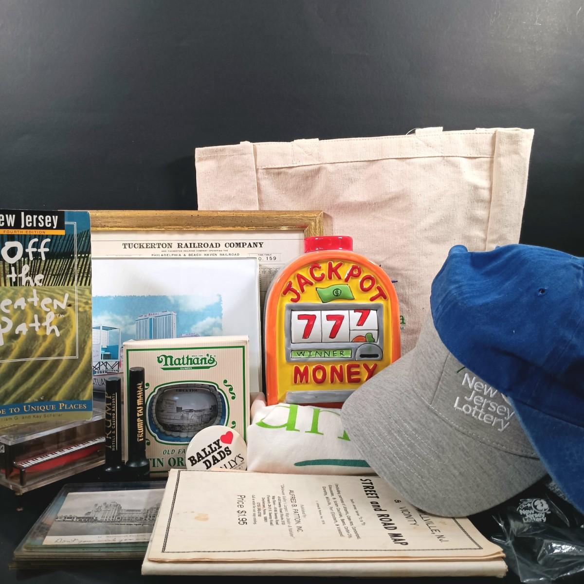 LOT 307: NJ History- 1913 Tuckerton Railroad Schedule, Miss America Shirt and Bag, NJ Shore Postcards & More