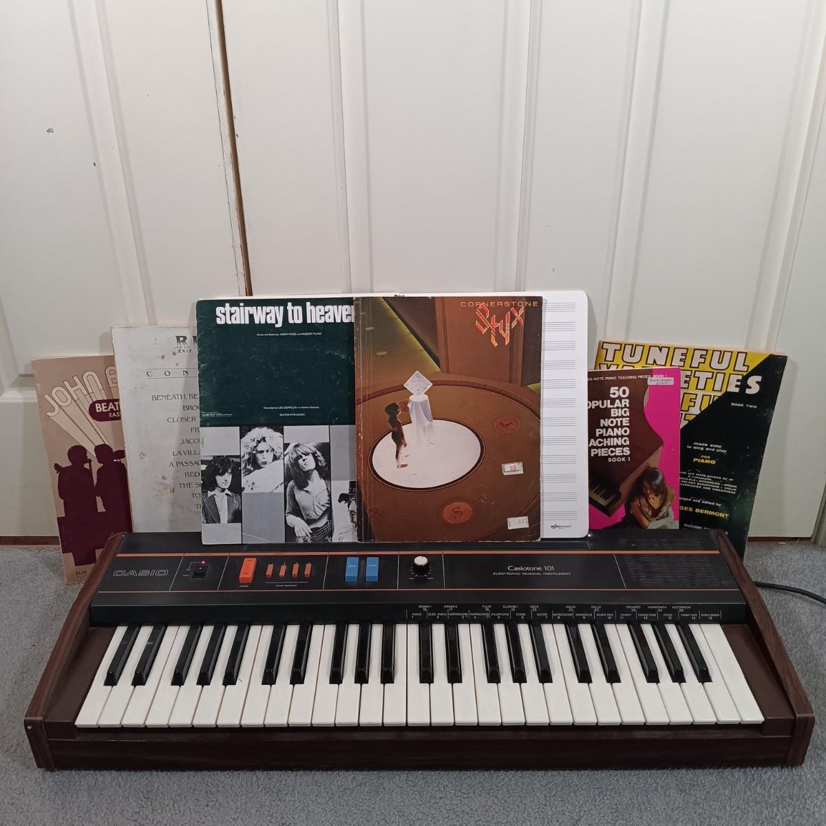 LOT 312: 1982 Casio CT-101 CasioTone 49-Key Analog Synthesizer w/ Vintage Music Books
