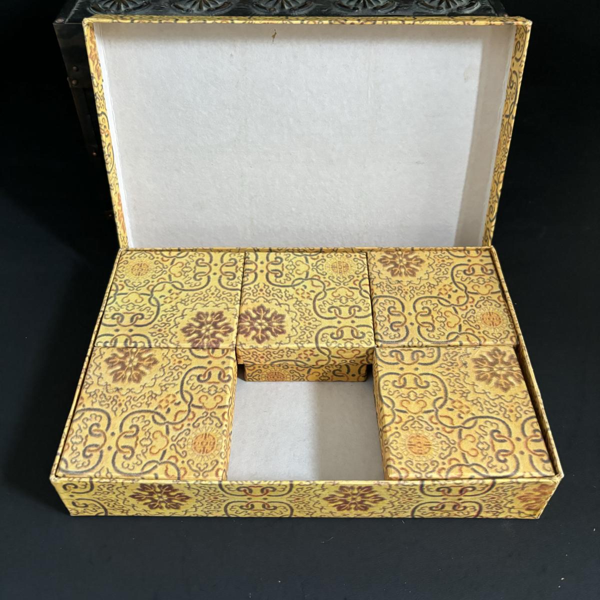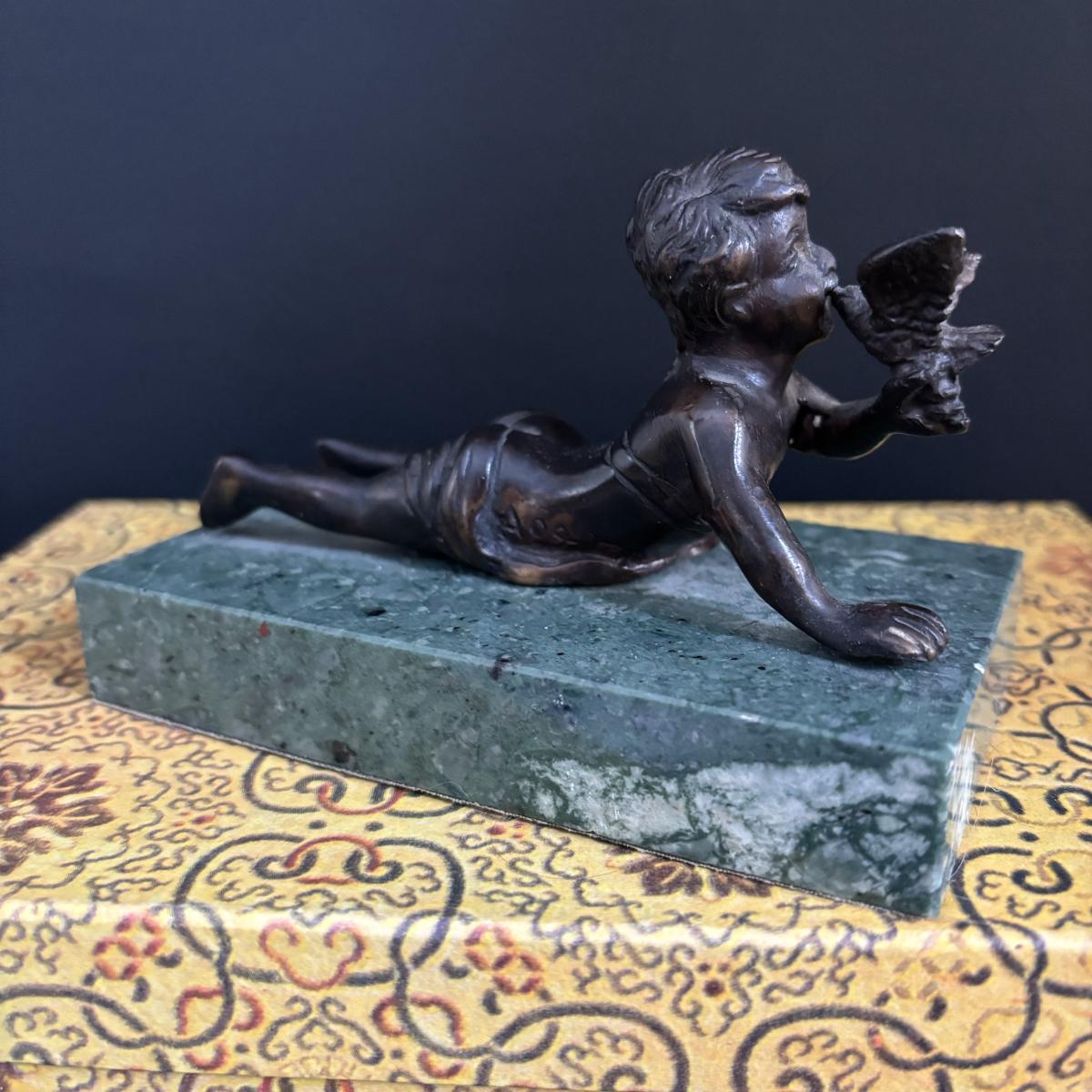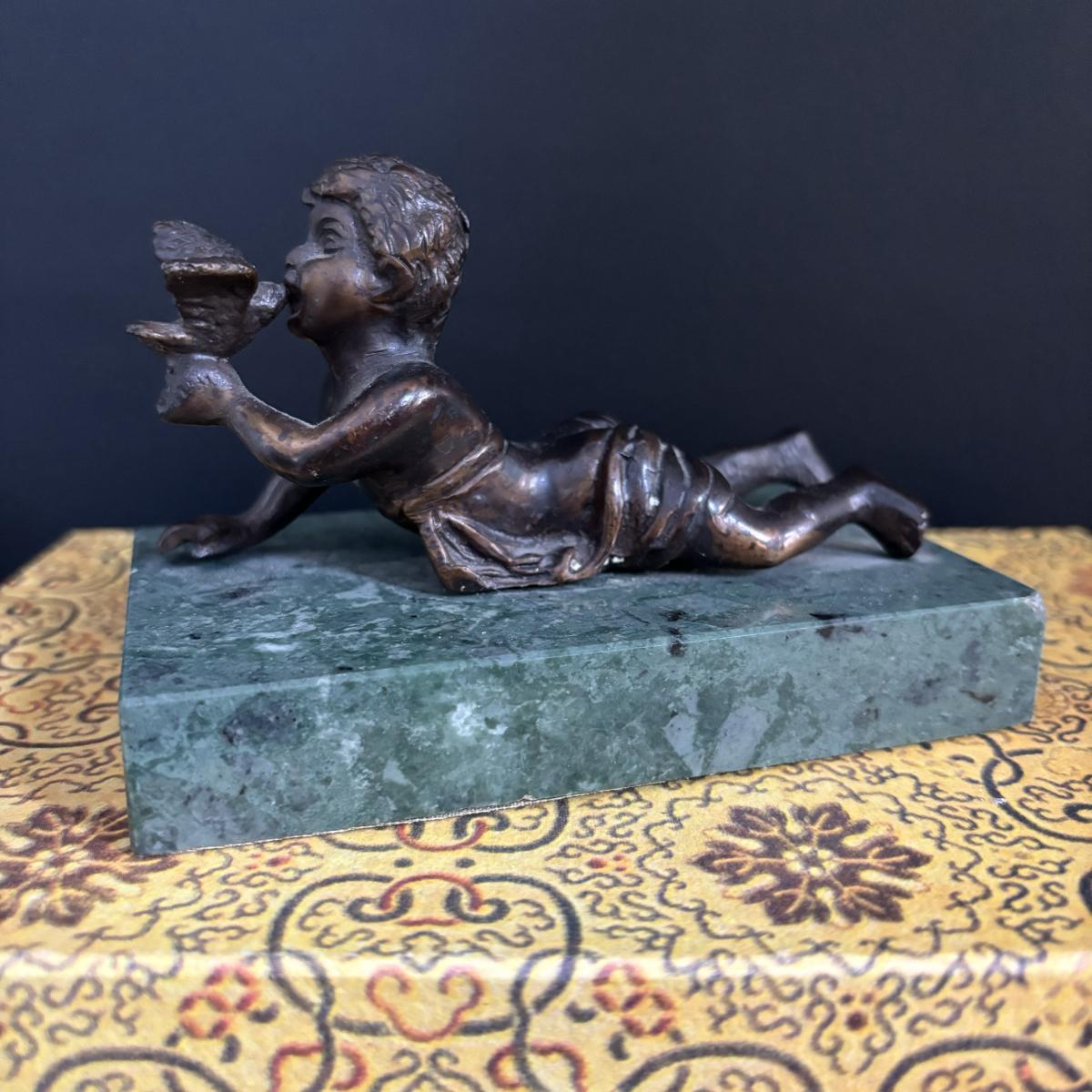 LOT 329: Renaissance Style Jewelry Chest, Bronze Statue of Boy w/Bird on Marble Base, New in Package Trinket Boxes