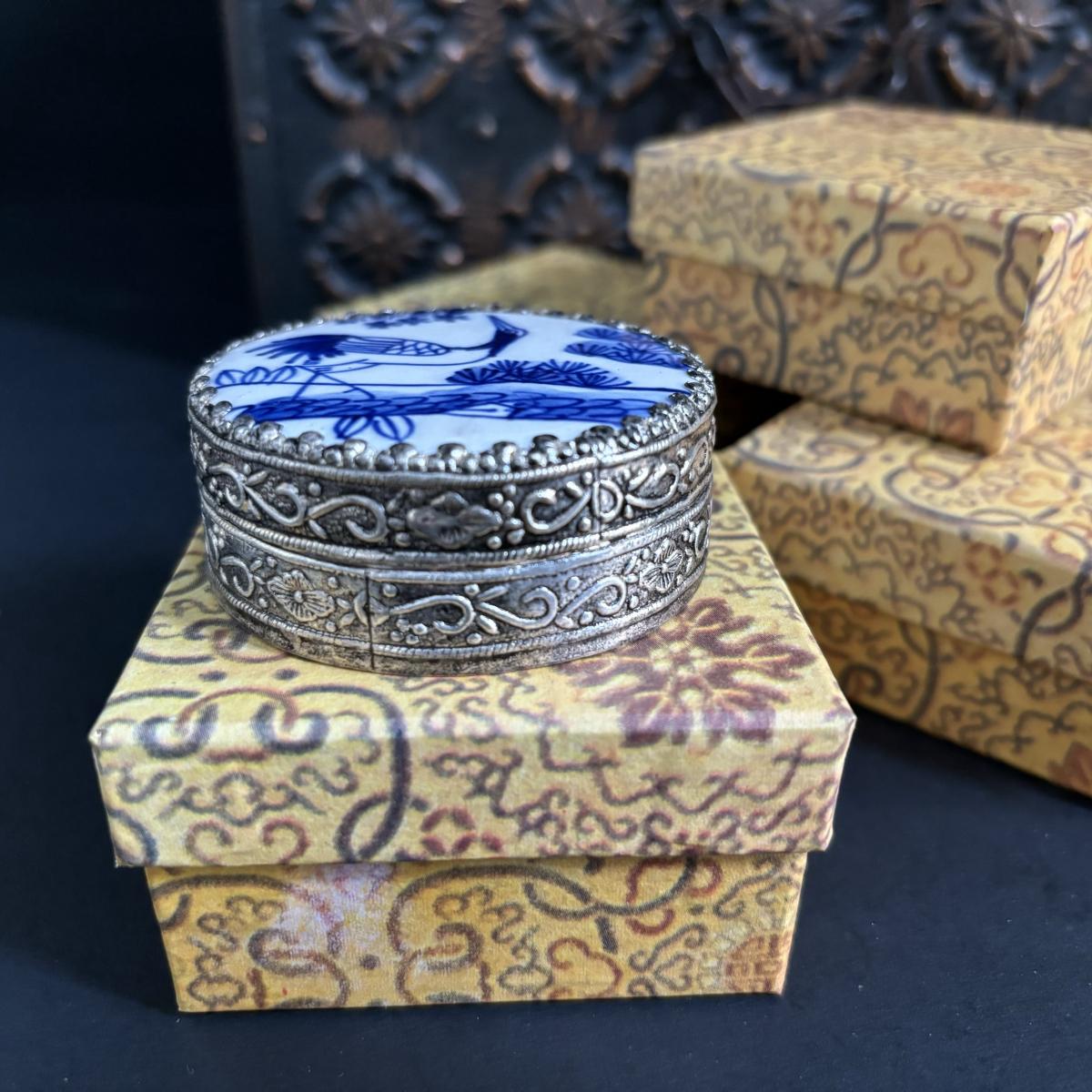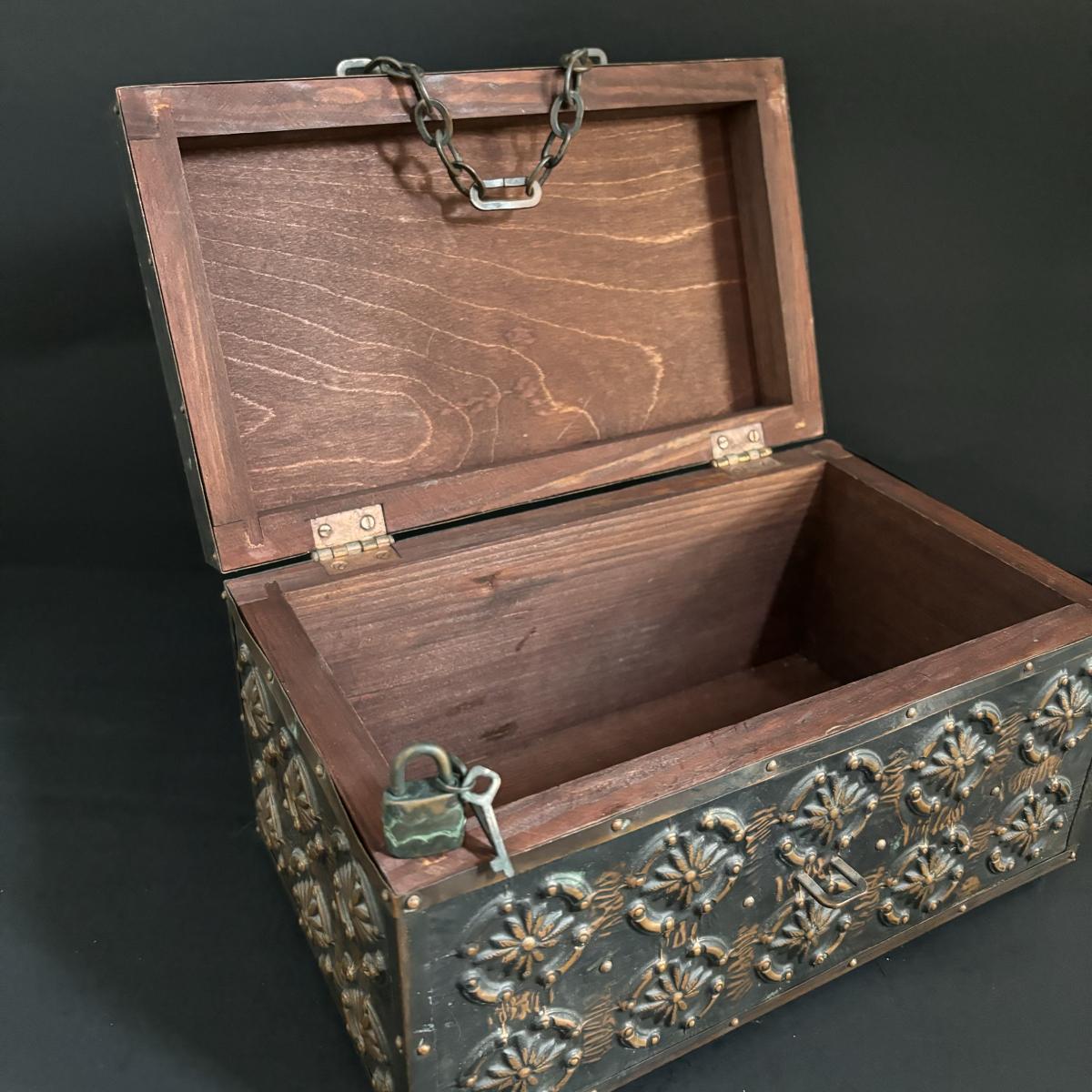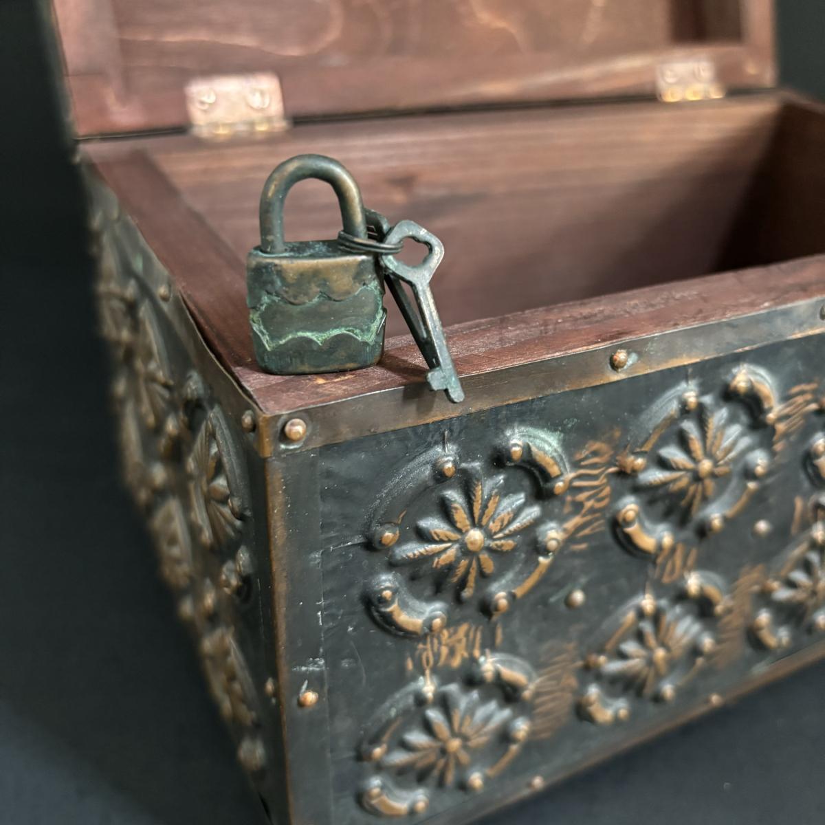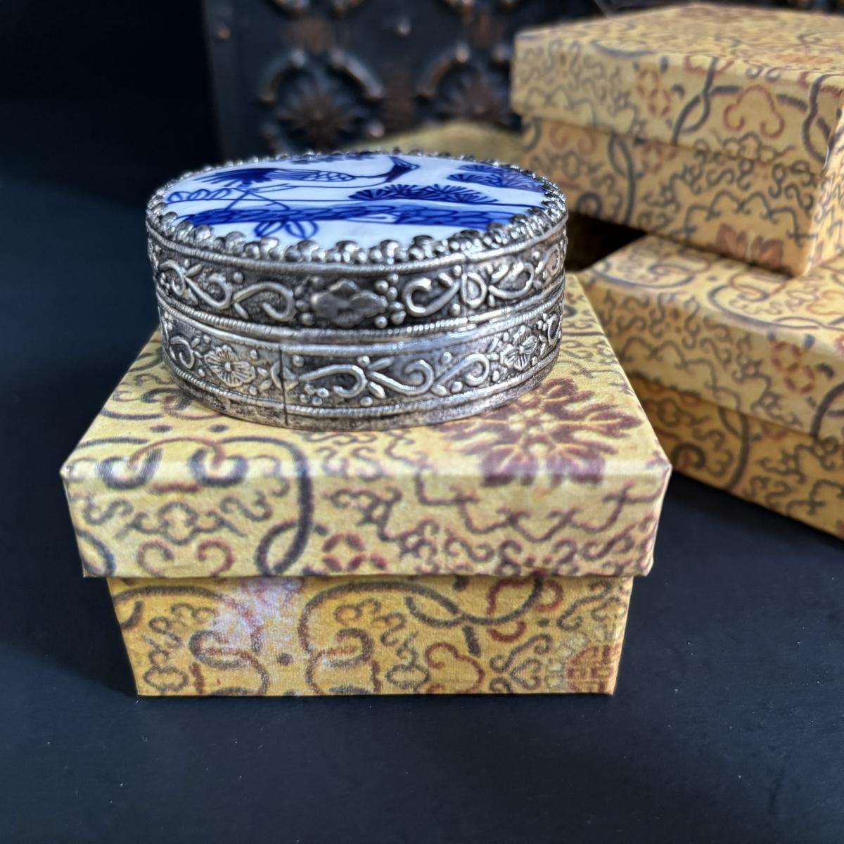 LOT 329: Renaissance Style Jewelry Chest, Bronze Statue of Boy w/Bird on Marble Base, New in Package Trinket Boxes