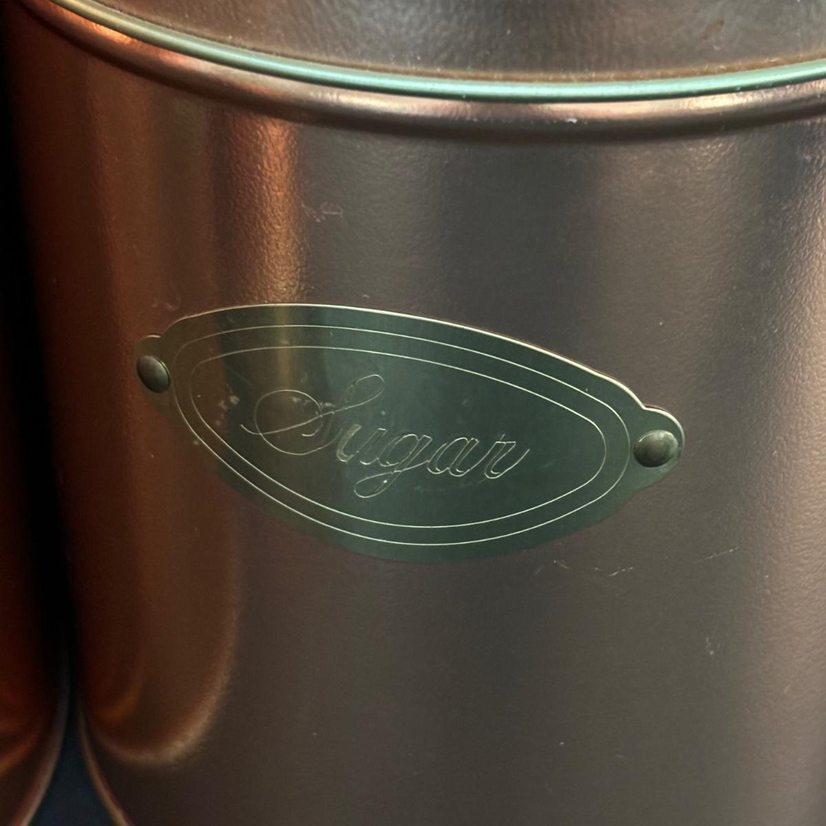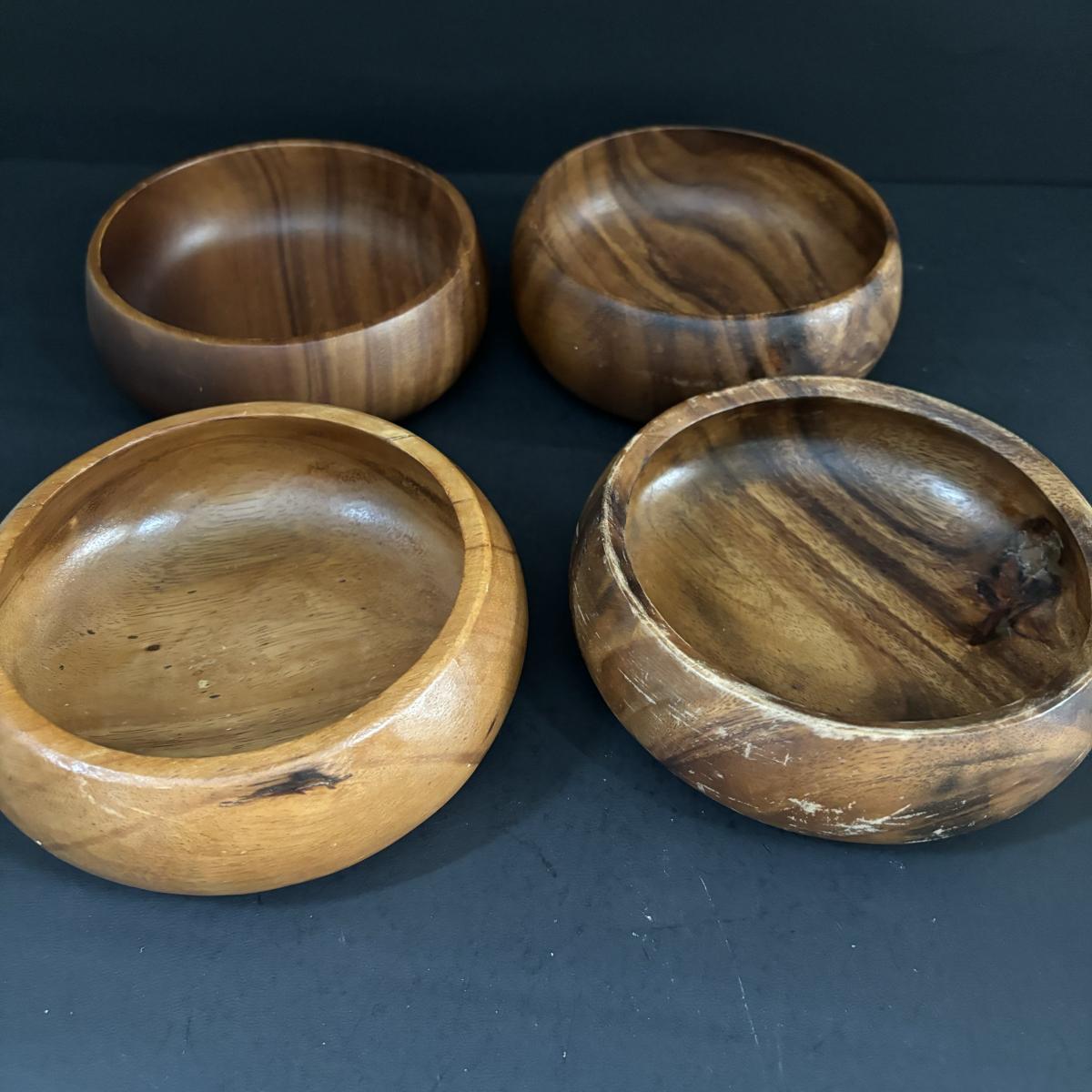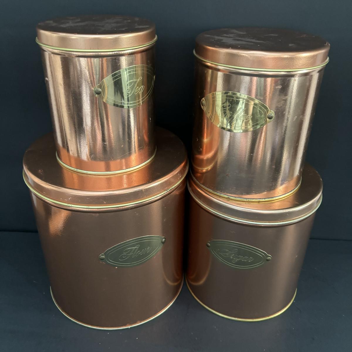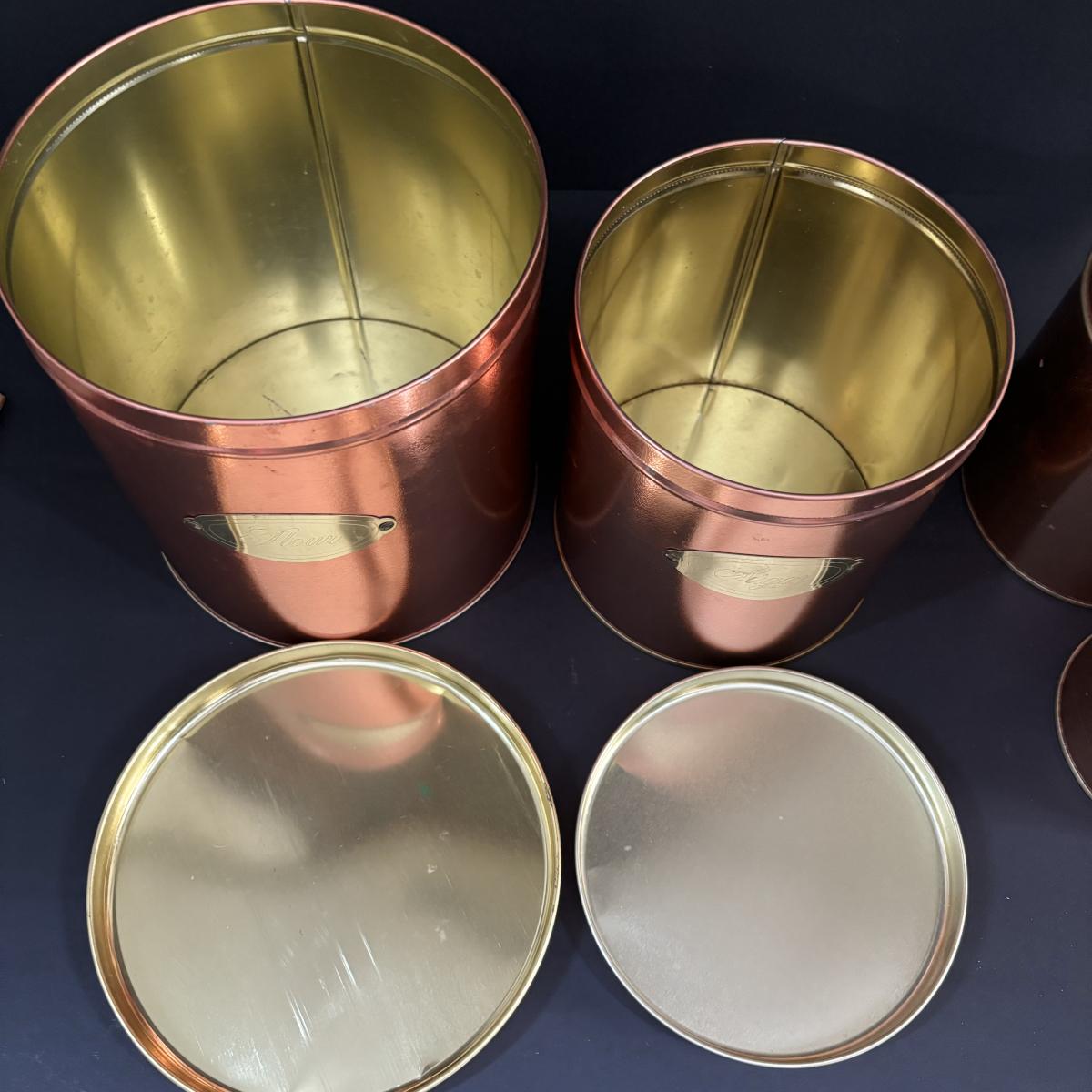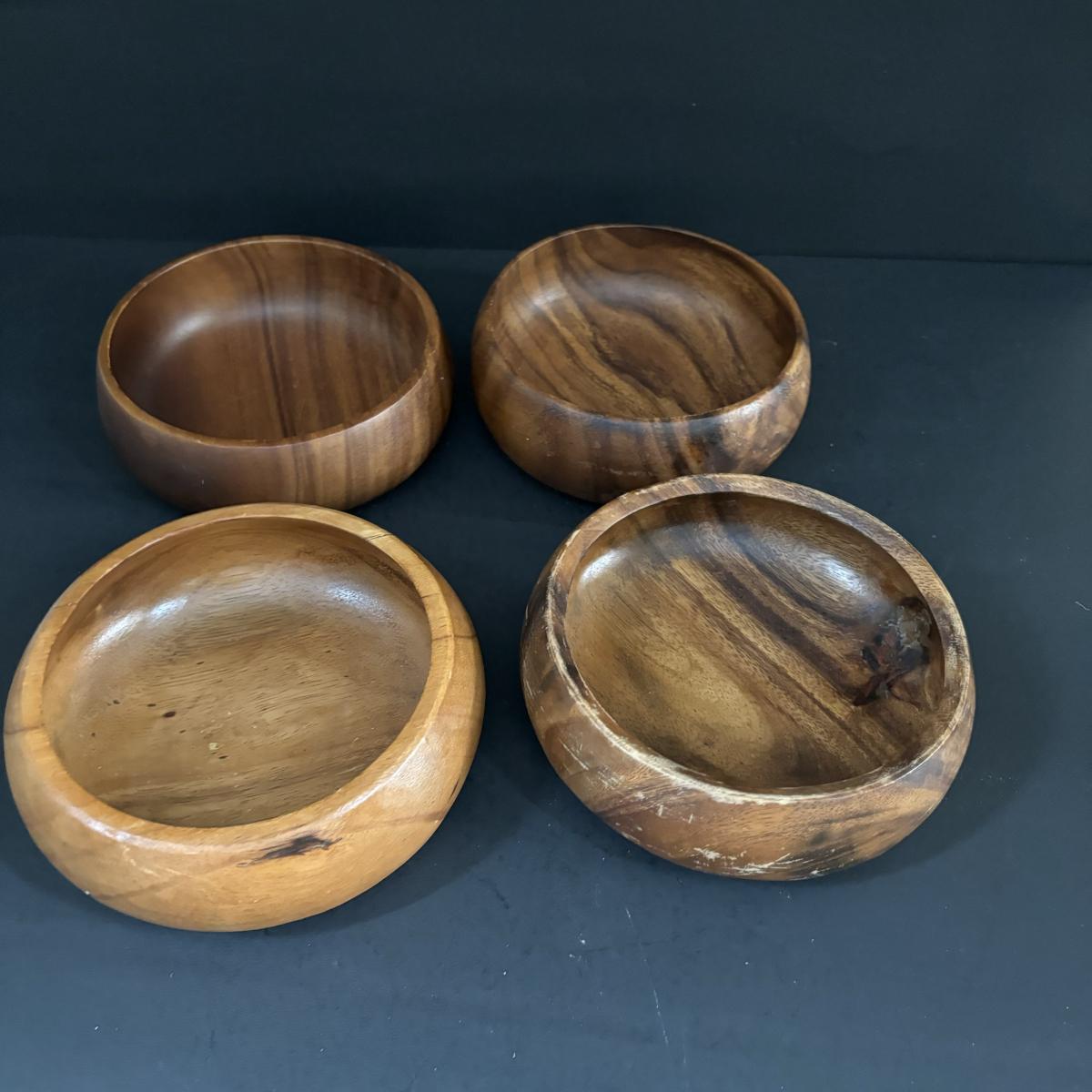 LOT 331: Wood Salad Bowl Set w/8 Bowls, Wooden Fruit & Copper Color Canister Set