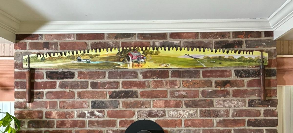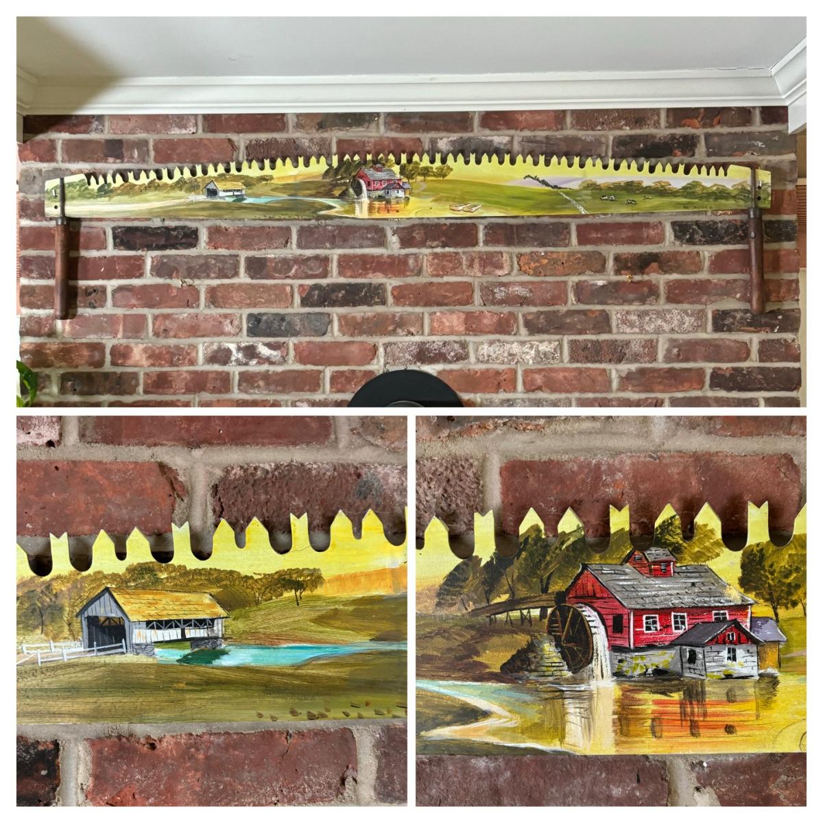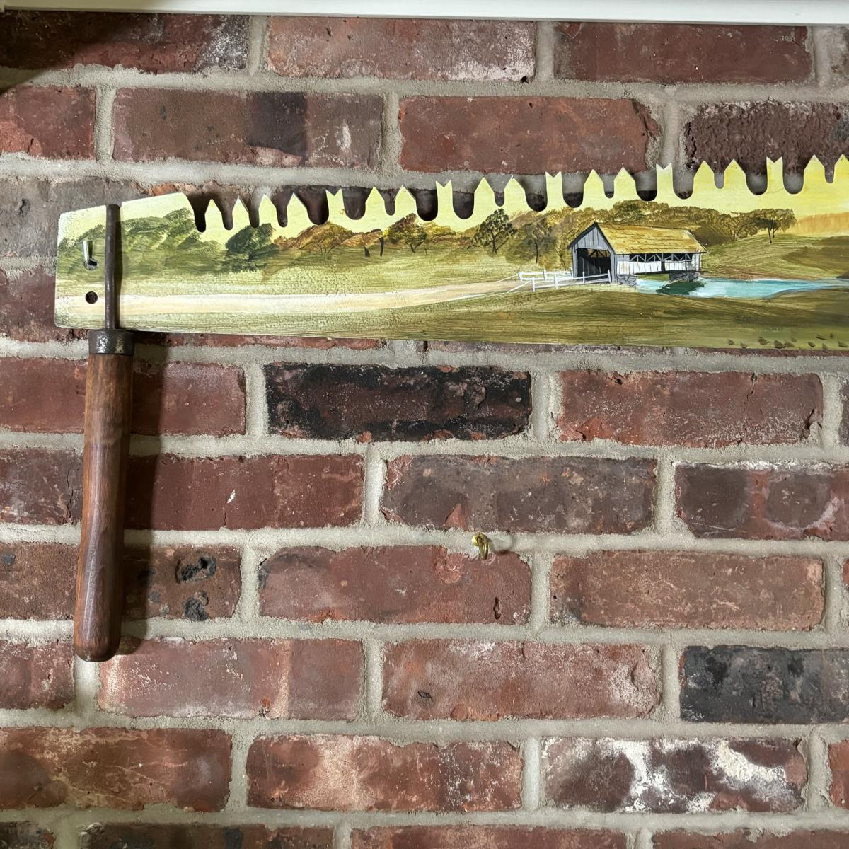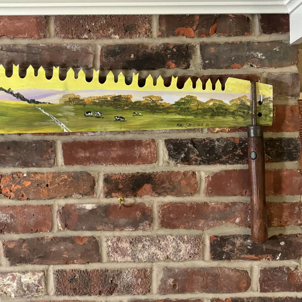 LOT 338: Hand Painted & Signed Two Man Saw, Mary Speicher 86