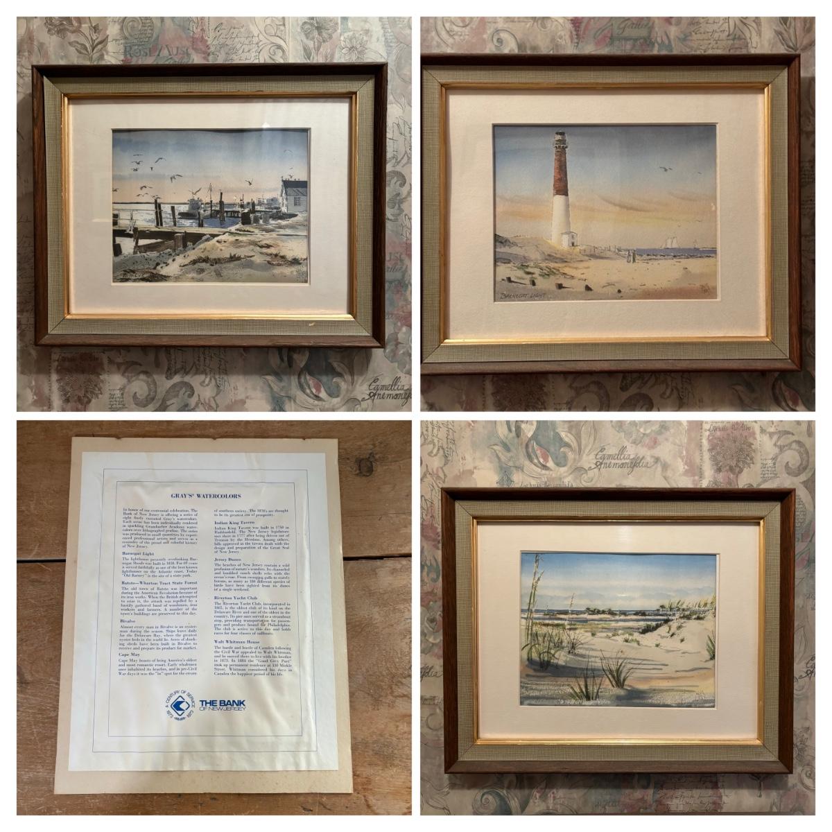 LOT 339: The Bank of New Jersey Series, Gray's Watercolors: Barnegat Lighthouse, Jersey Dunes & Bivalve