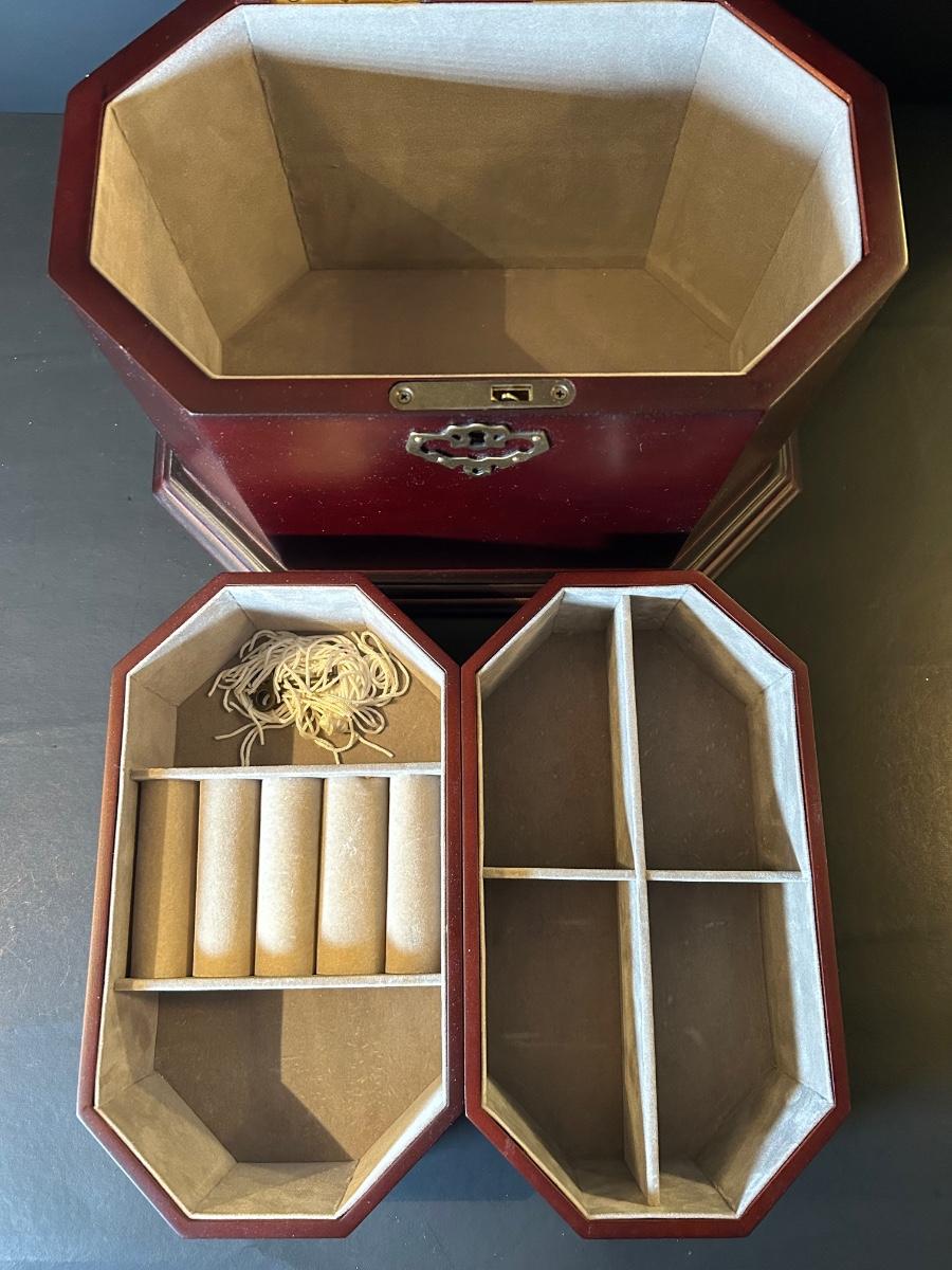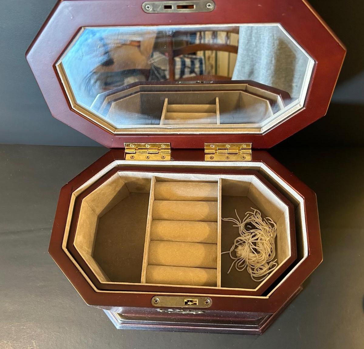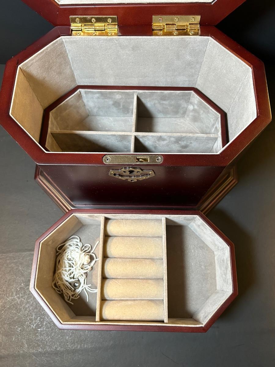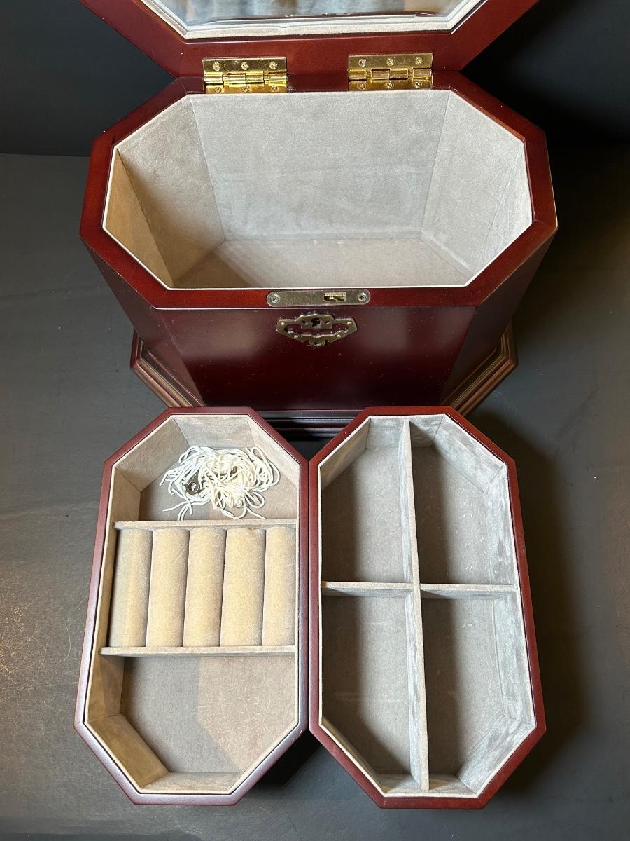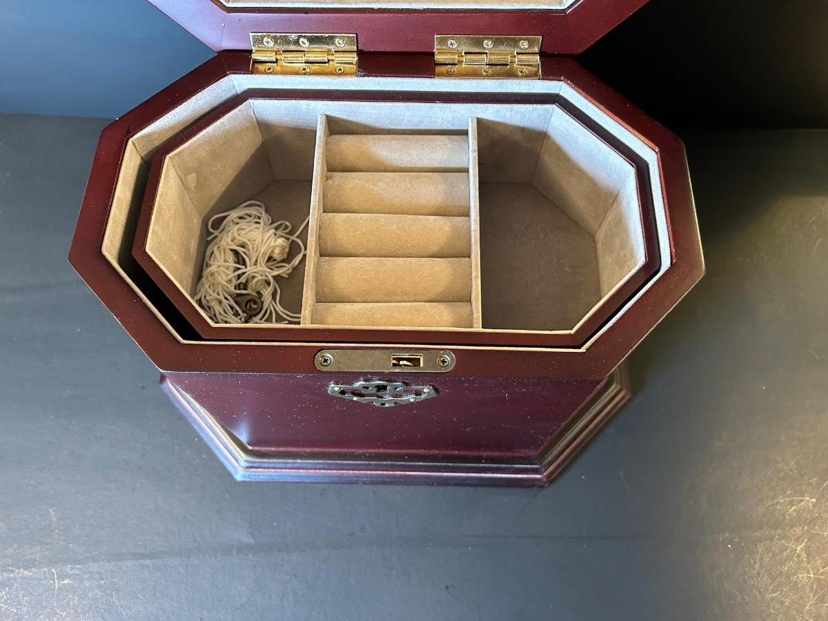 LOT 356BR: Wood Jewelry Box, Beaded Handbag and Decorative Perfume Bottles