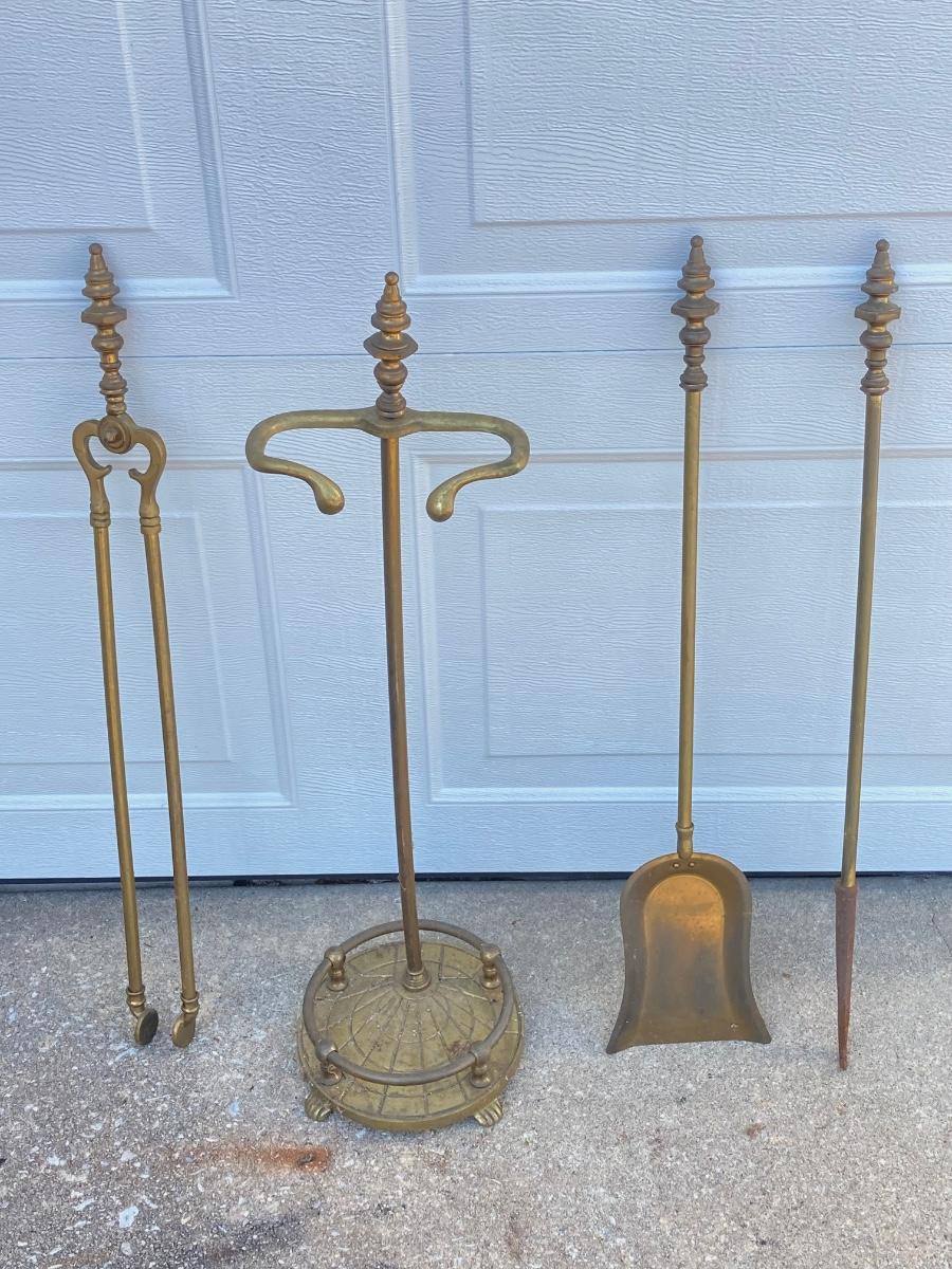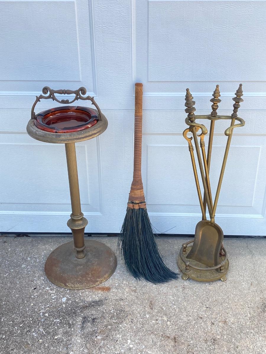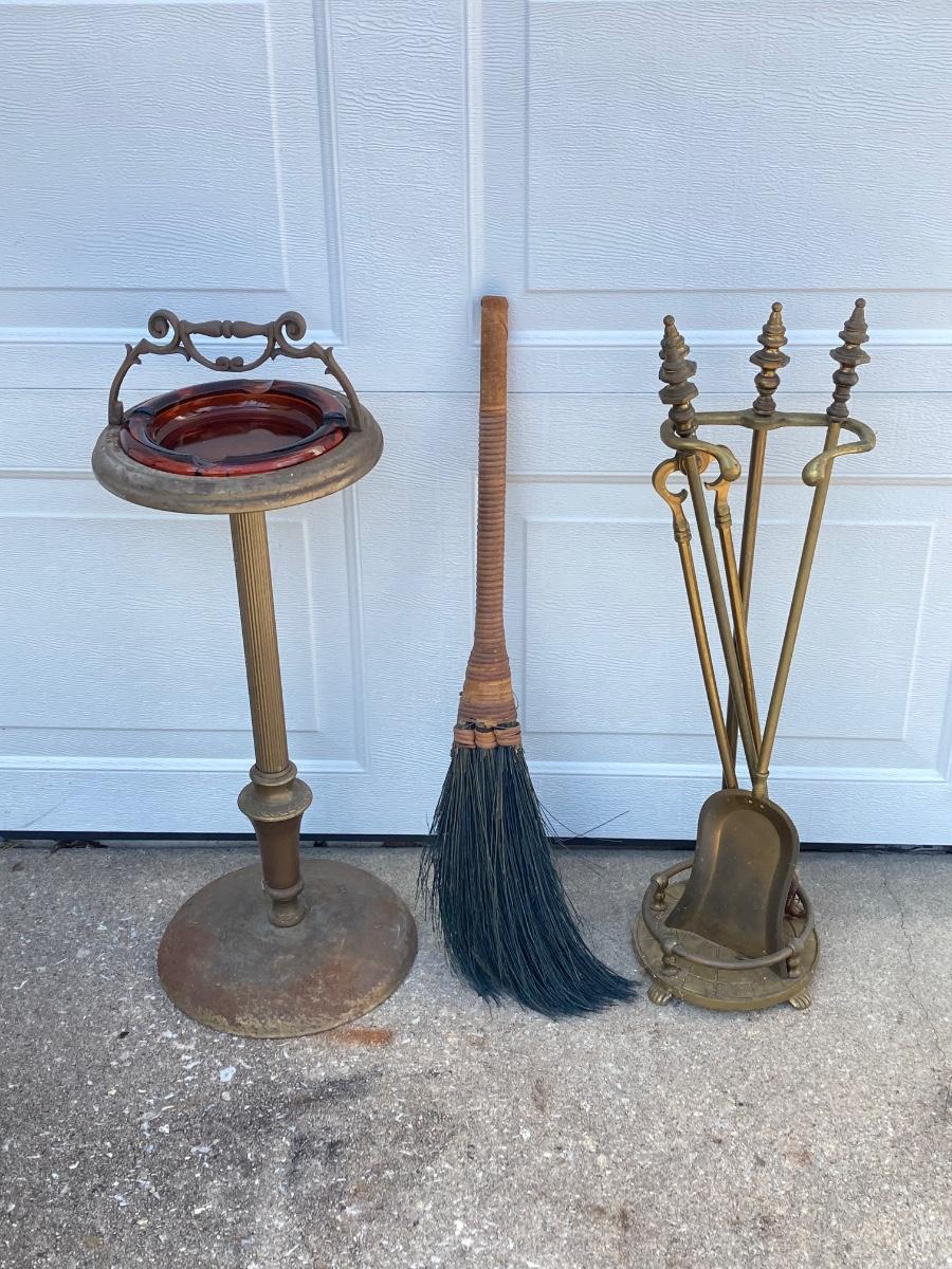 LOT 370: Vintage Brass Collection - Ashtray Stand and Fireplace Tools