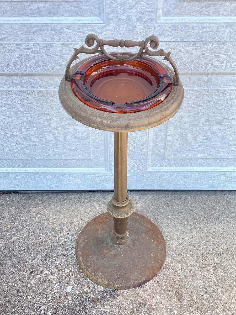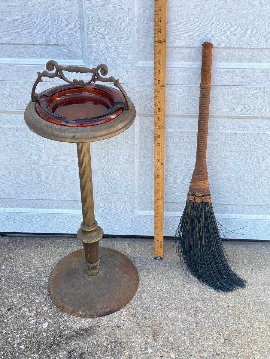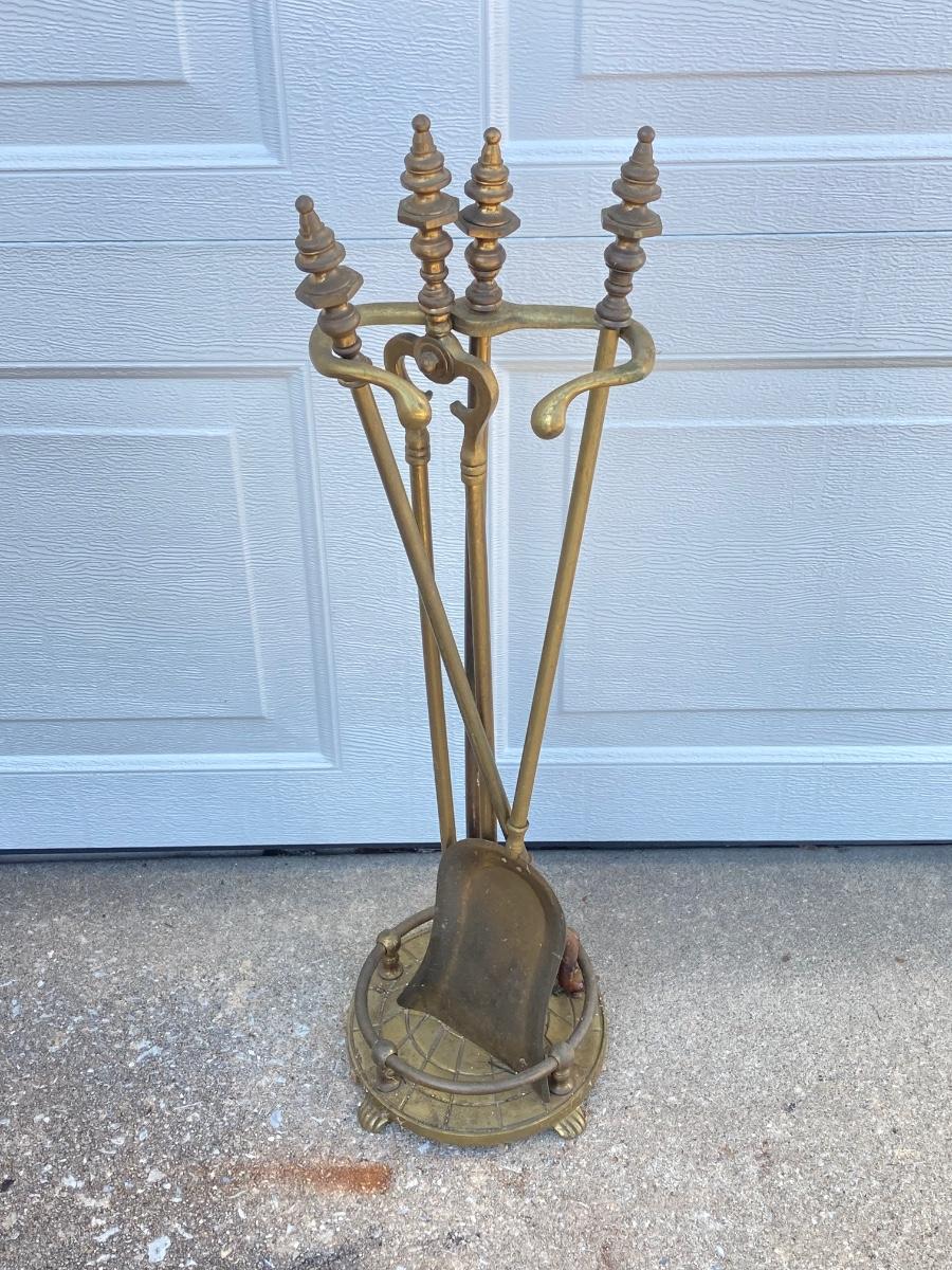 LOT 370: Vintage Brass Collection - Ashtray Stand and Fireplace Tools