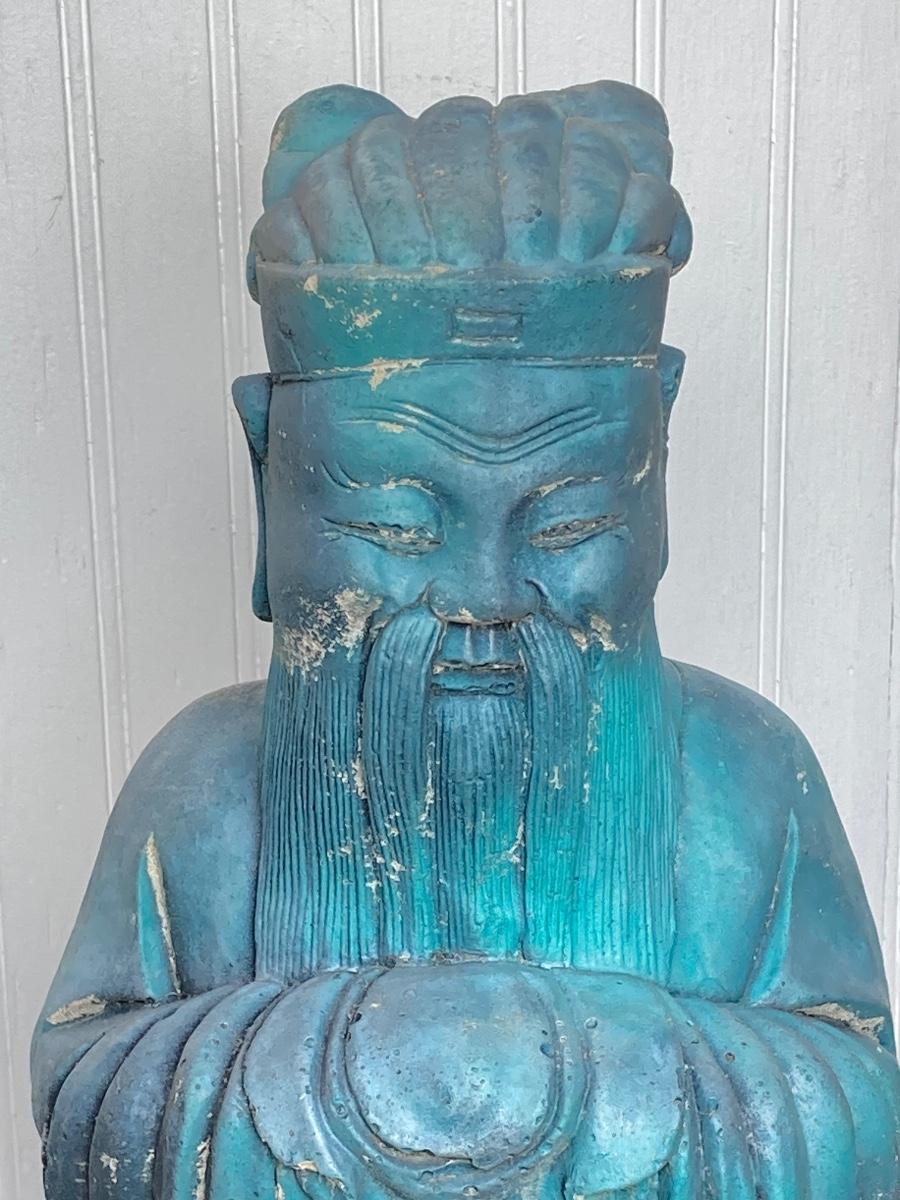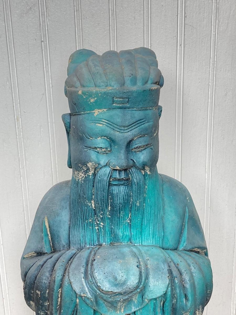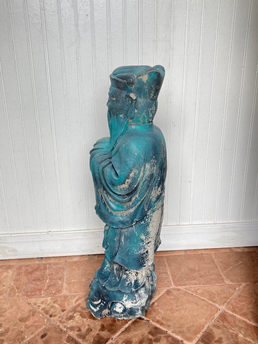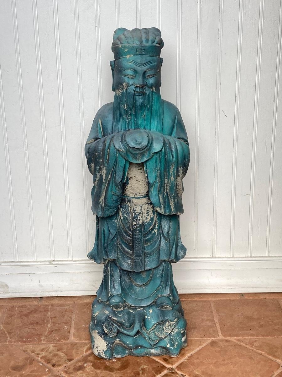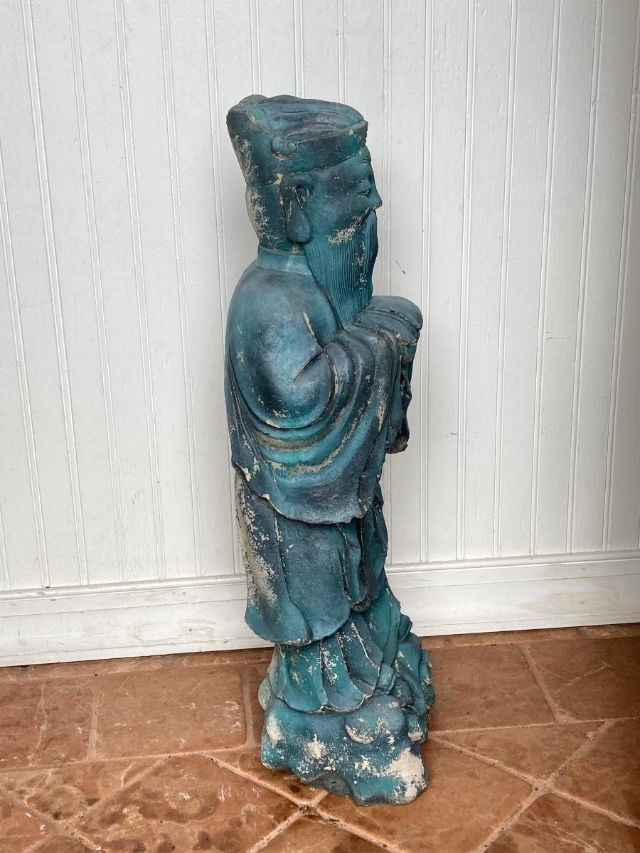 LOT 381: Painted Turquoise Concrete Asian Immortal Statue