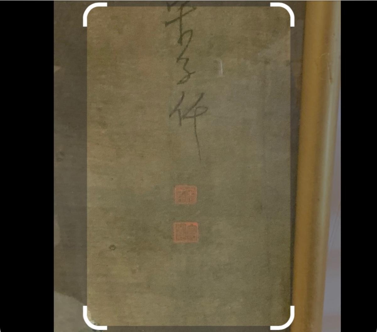 unknown if print, painting or fabric as they are sealed under the glass. Measures 25x48”