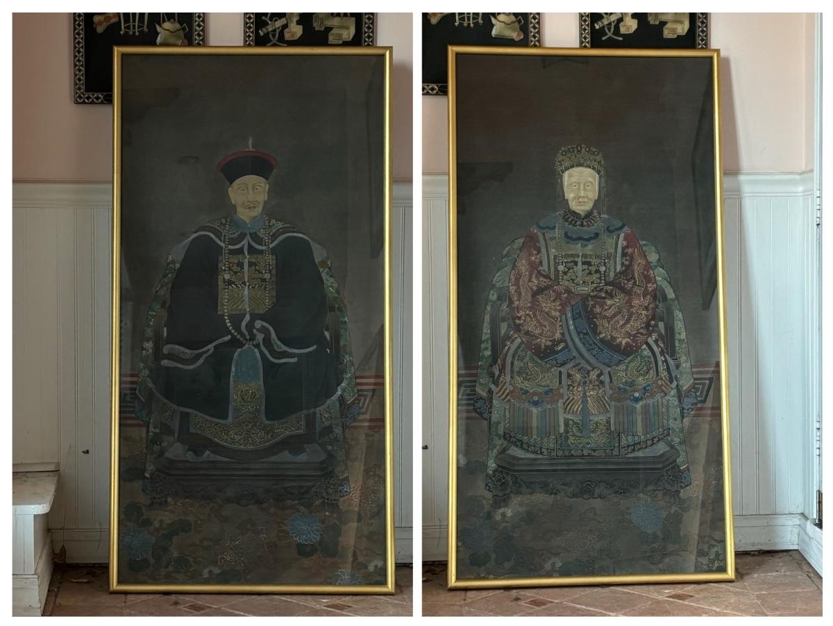 LOT 382: Vintage Pair of Ancestral Chinese Portraits