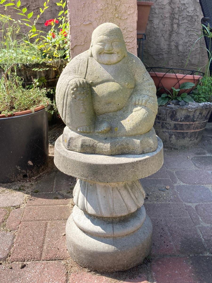 LOT 385: Concrete Buddha Statue with Pedestal Base
