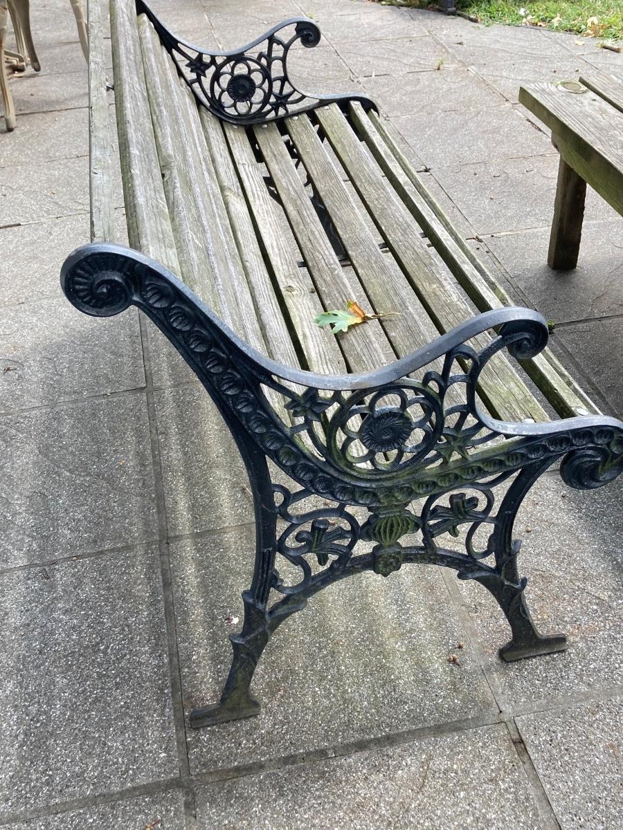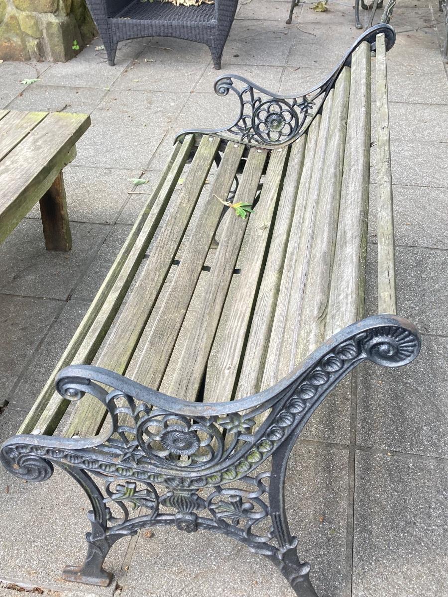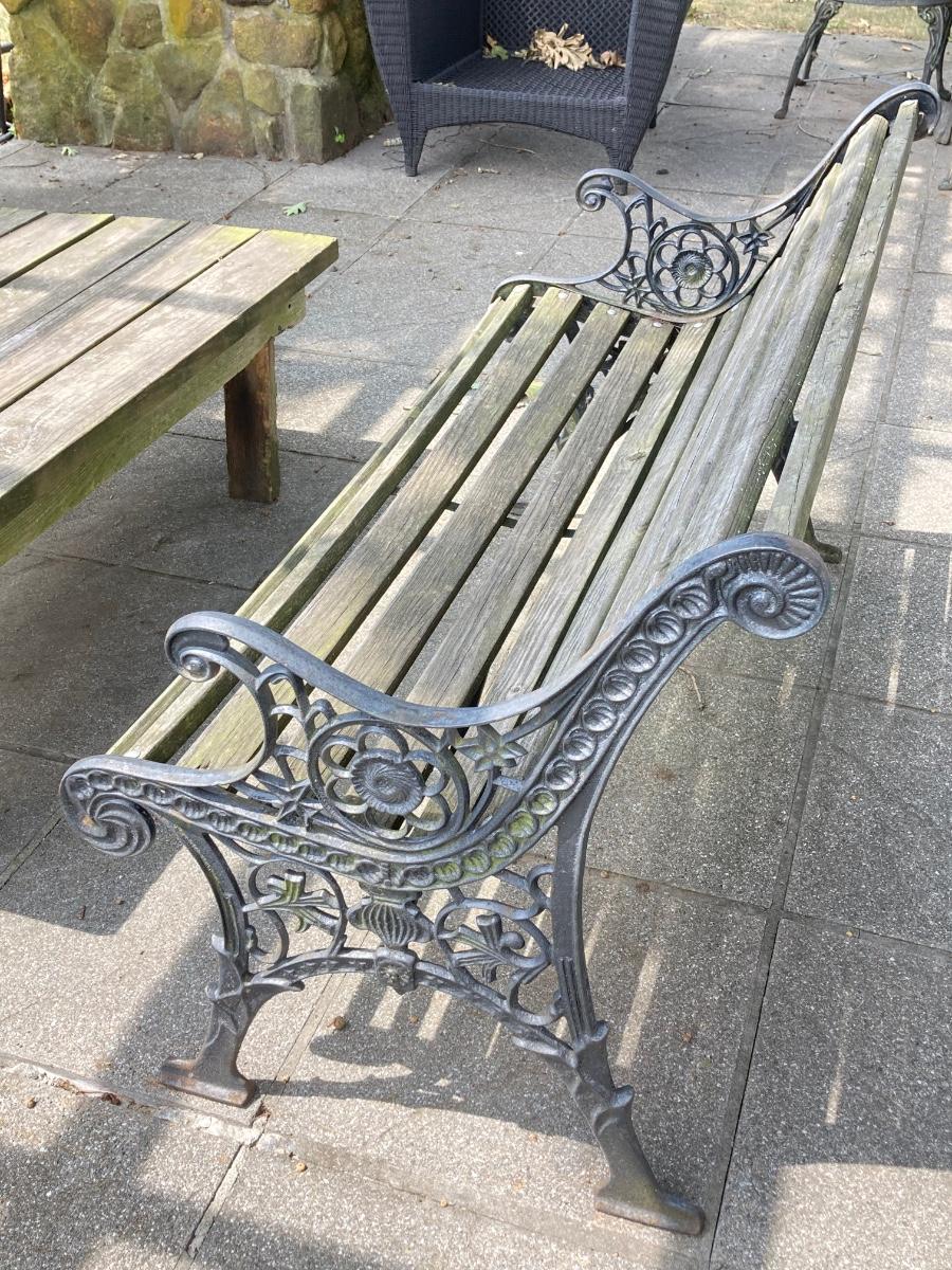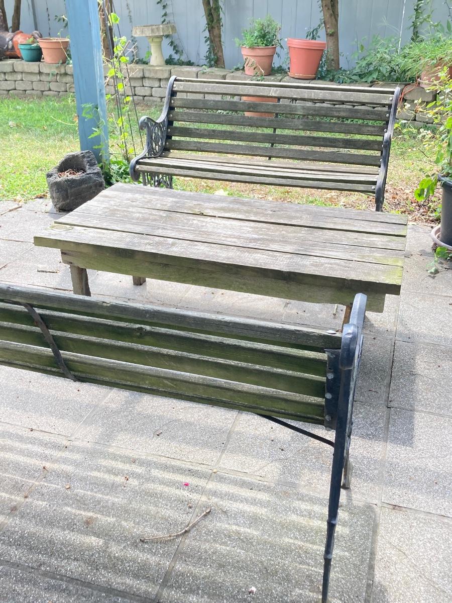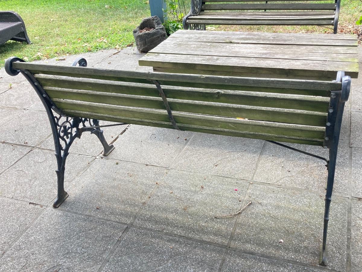 LOT 394: Two Wood / Metal Benches and Wooden Rectangular Table