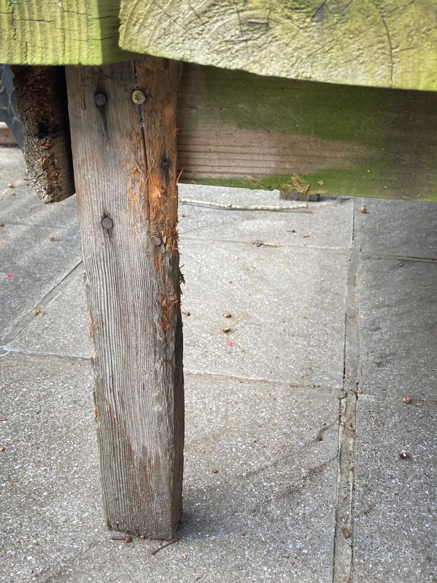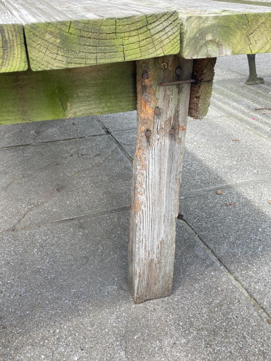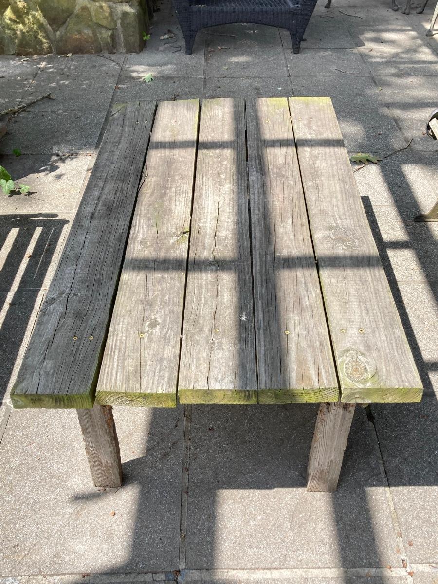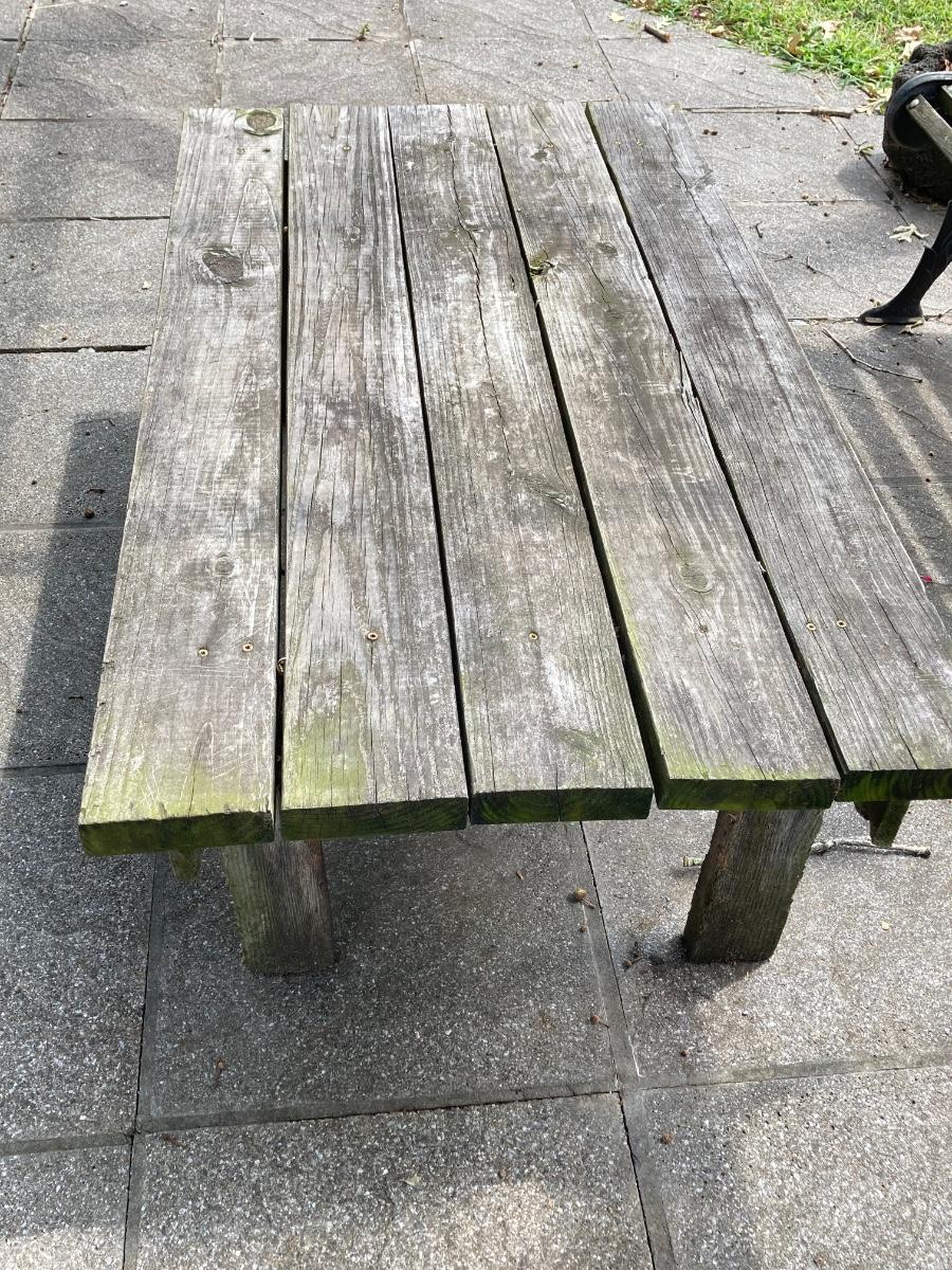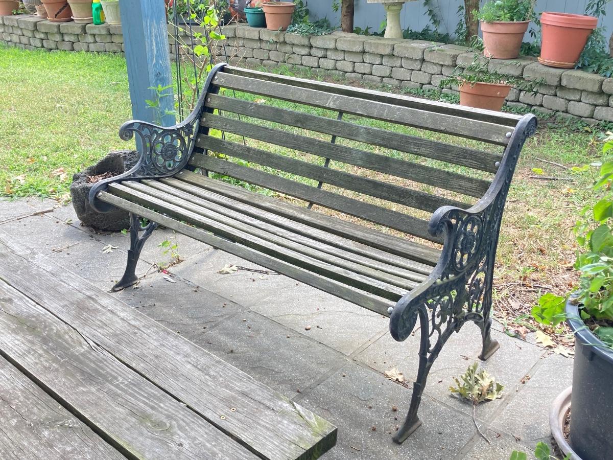 LOT 394: Two Wood / Metal Benches and Wooden Rectangular Table