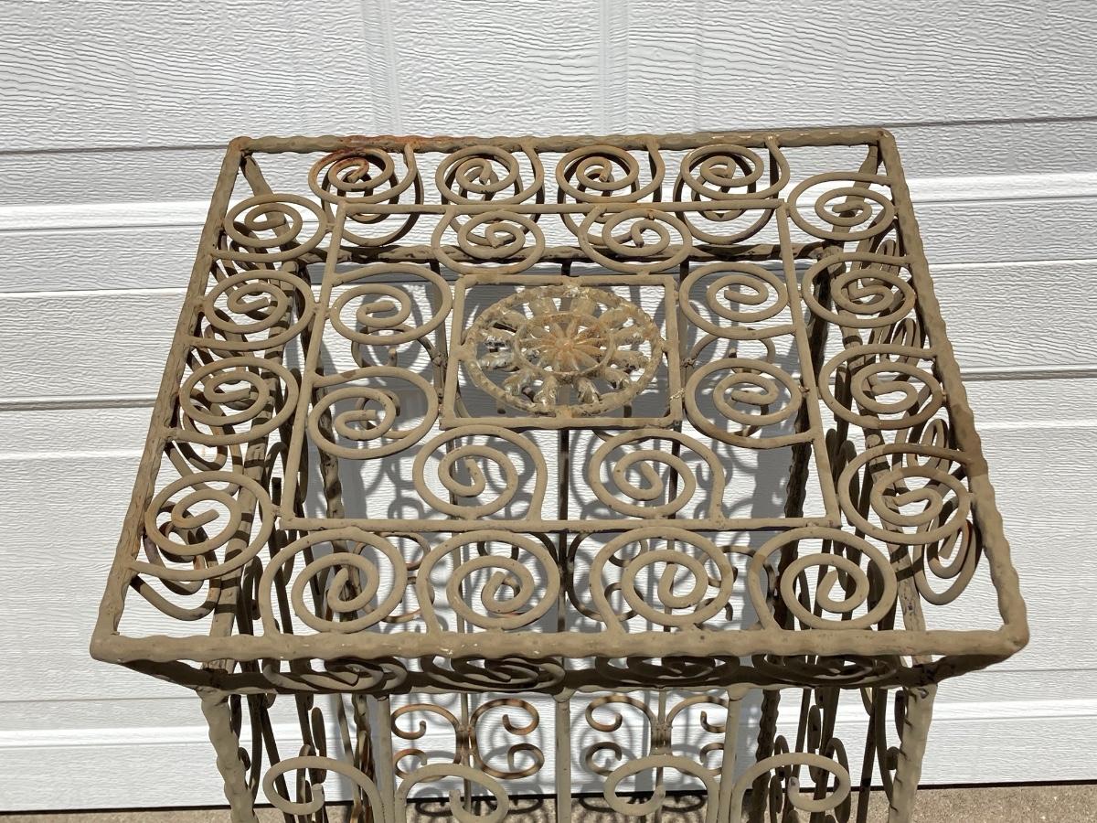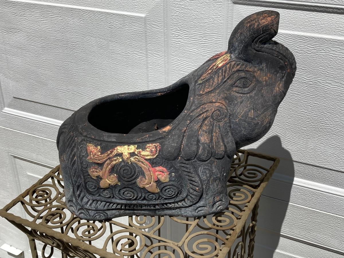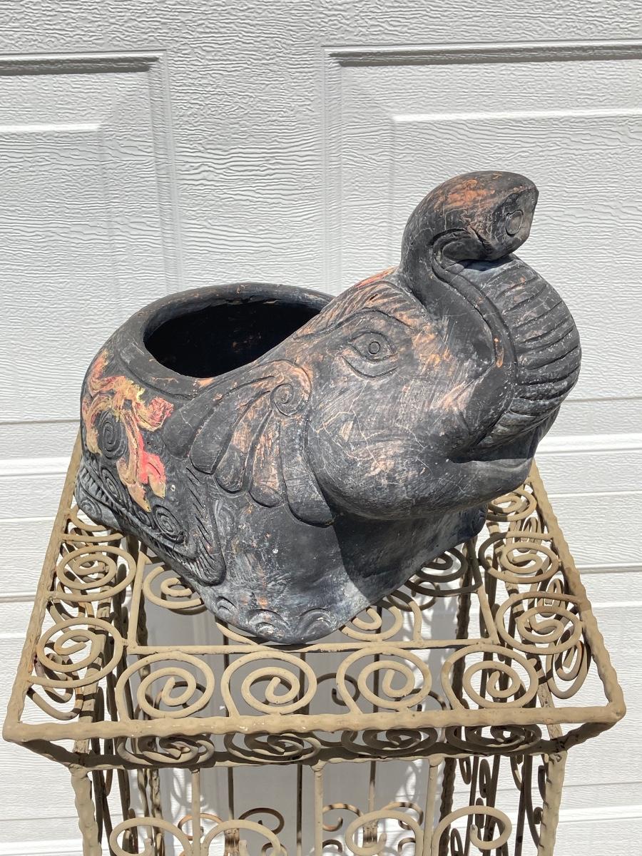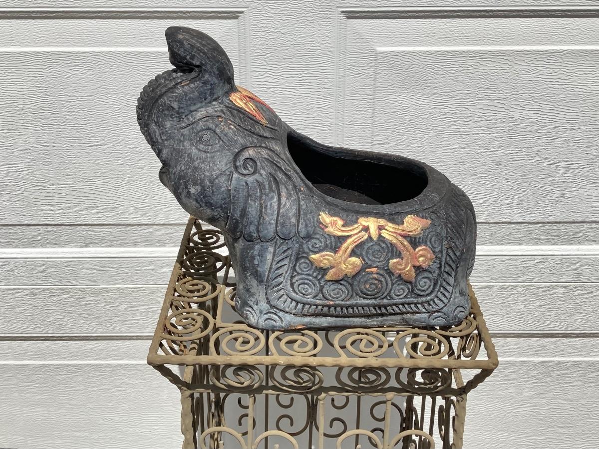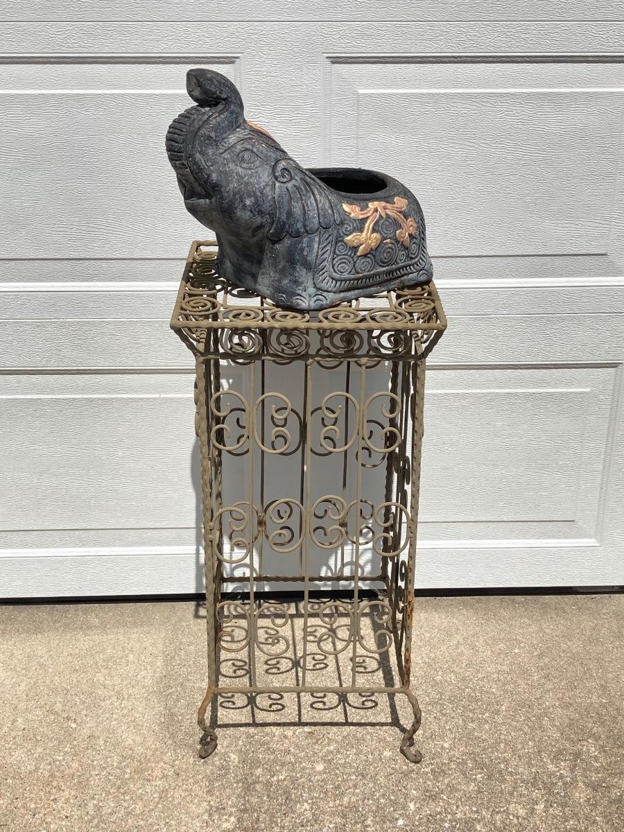 LOT 398: Ornate Metal Garden Pedestal with Elephant Planter