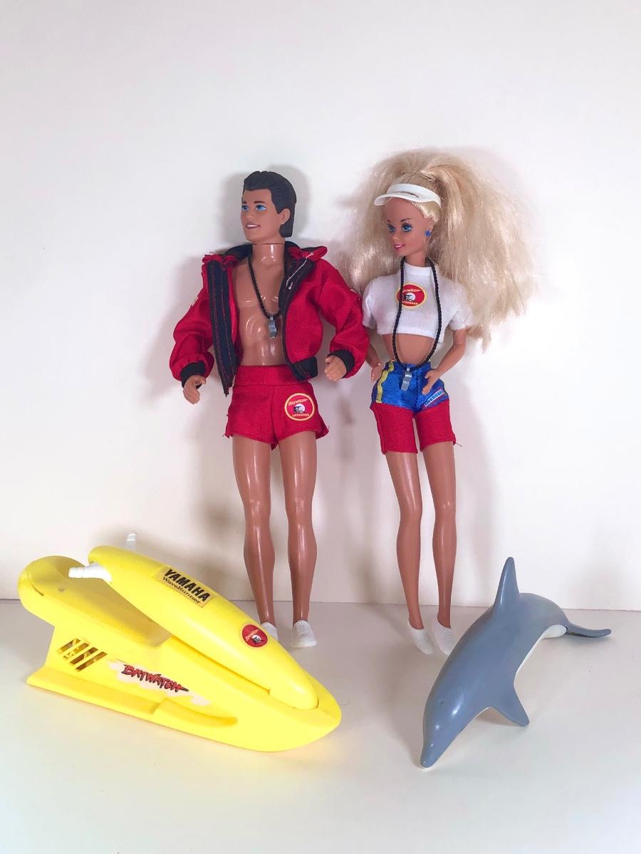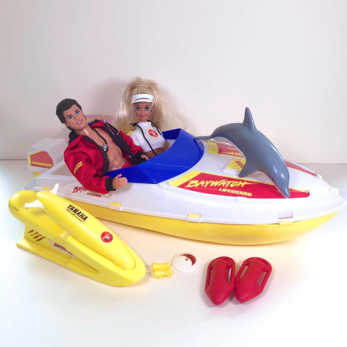 LOT 2K: 1994 Mattel Baywatch Barbie, Ken, Speedboat, Jetski, Dolphin, Life Preservers & Frisbee