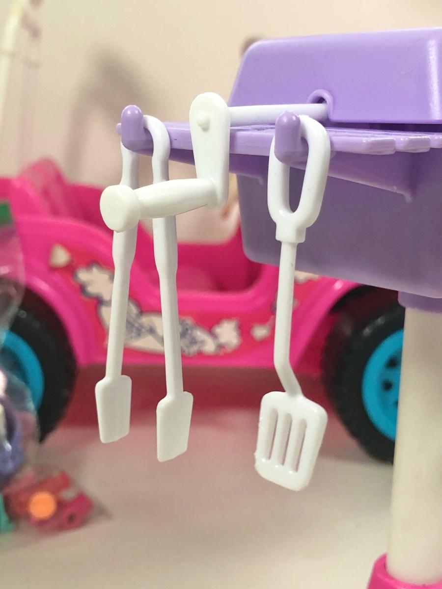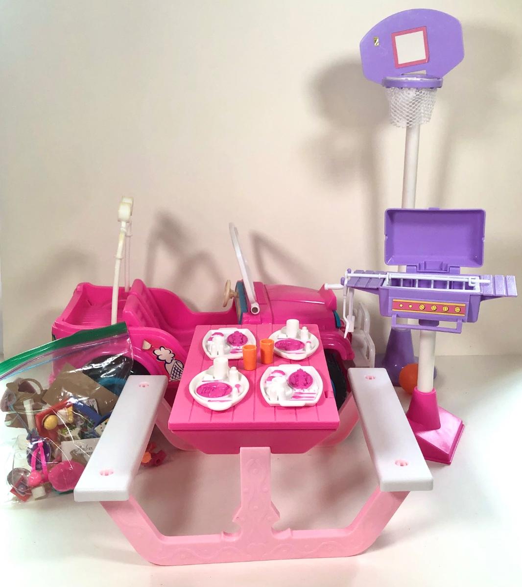 LOT 7K: 1990s Barbie Backyard Cookout Playset, 1993 Camp Barbie Sun Cruiser Jeep & More Barbie Accessories