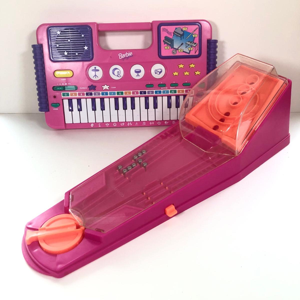LOT 8K: 1995 Mattel Barbie Deluxe Music Center Keyboard Piano & 1981 Candace Mini asker Ball Game