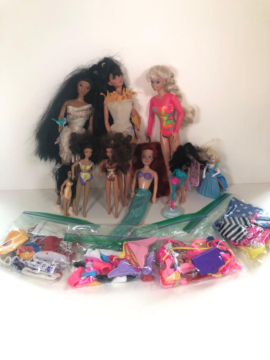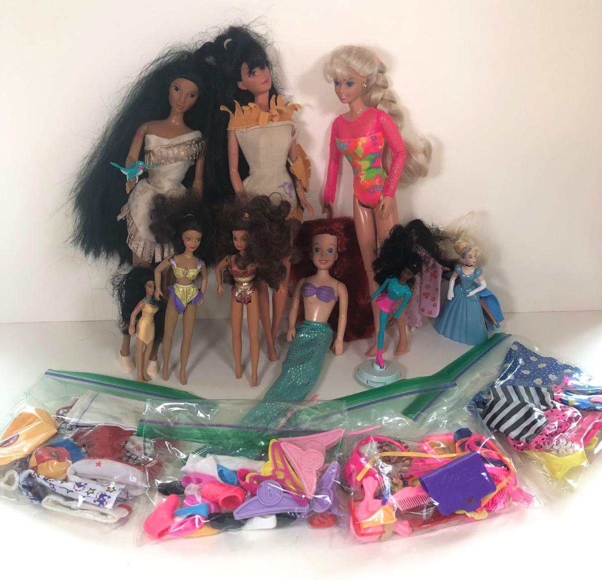 LOT 13K: 1990s Mattel Barbie Dolls, Clothes & Accessories - 93 Posable Gymnast, Ariel, Disney Sun Colors Pocahontas & More