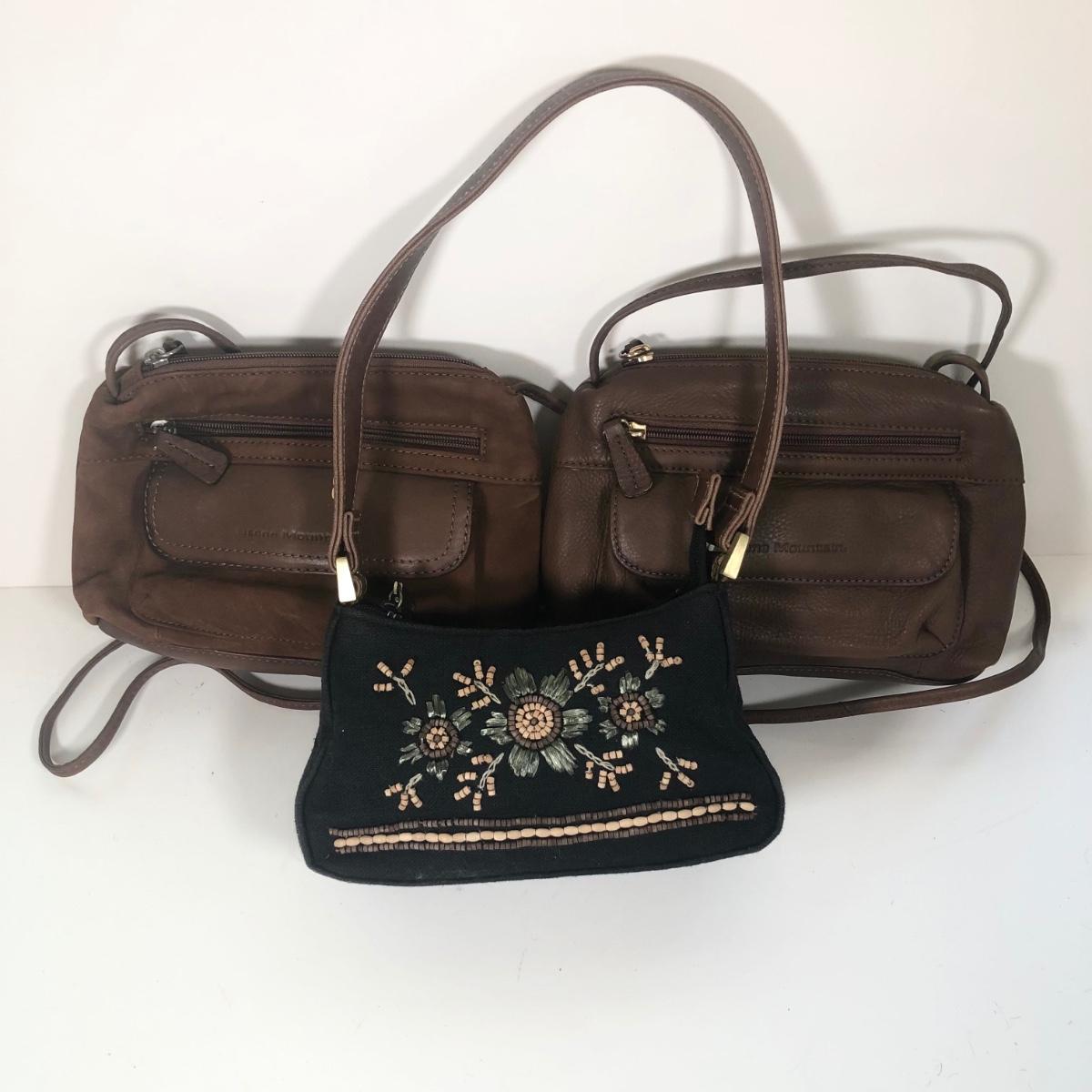 LOT 15K: Fashion Bags - 2 Stone Mountain Purses & Beaded Black Frankie & Johnnie Bag
