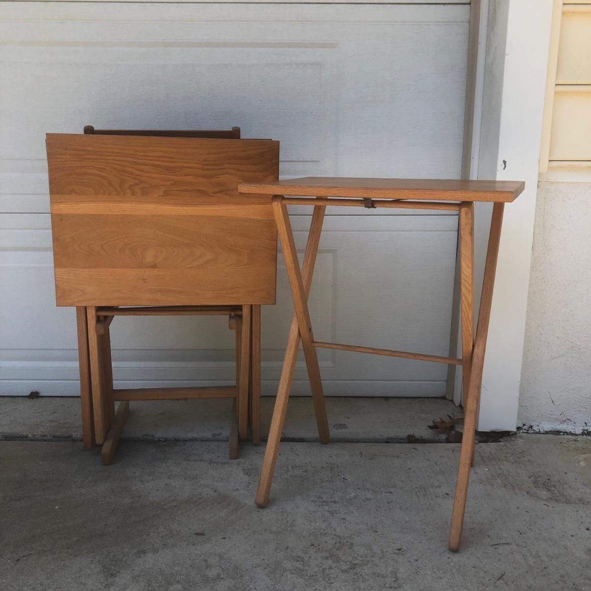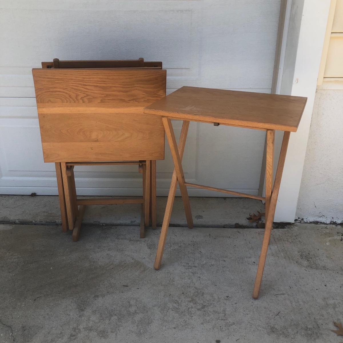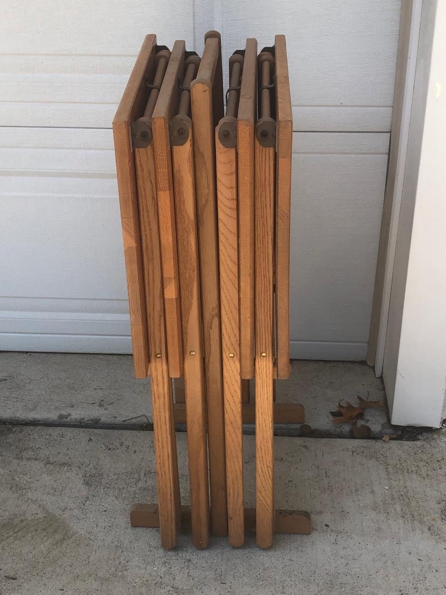 LOT 19G: Set of 4 Folding Tray Tables w/ Stand