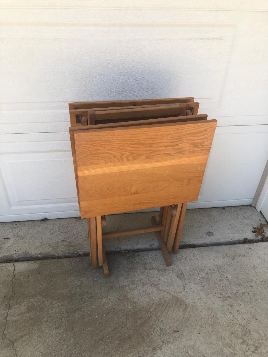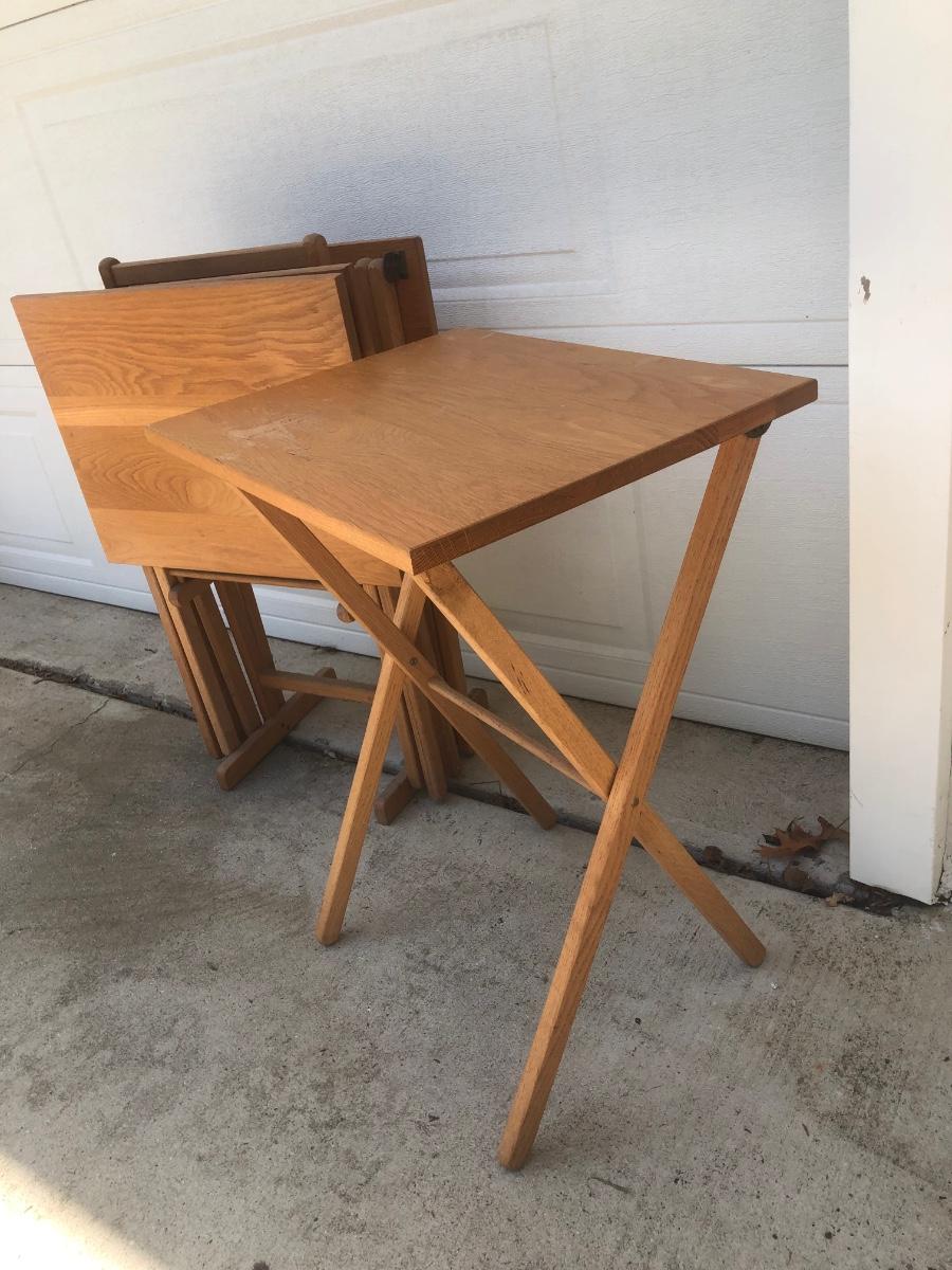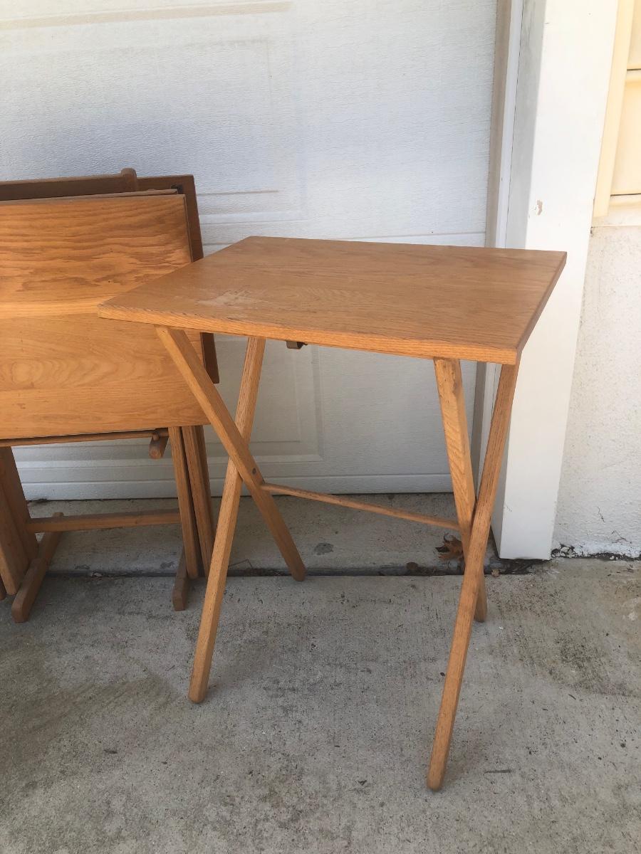 LOT 19G: Set of 4 Folding Tray Tables w/ Stand