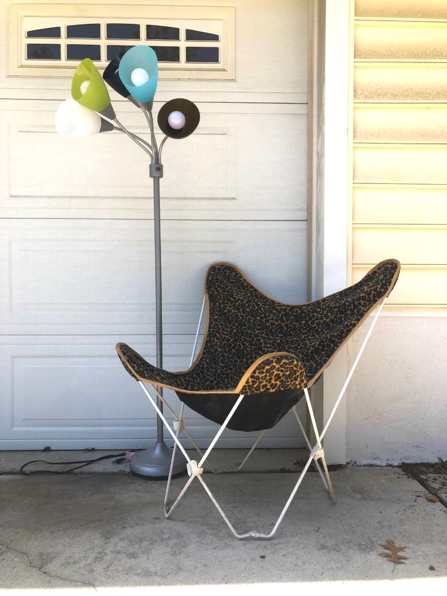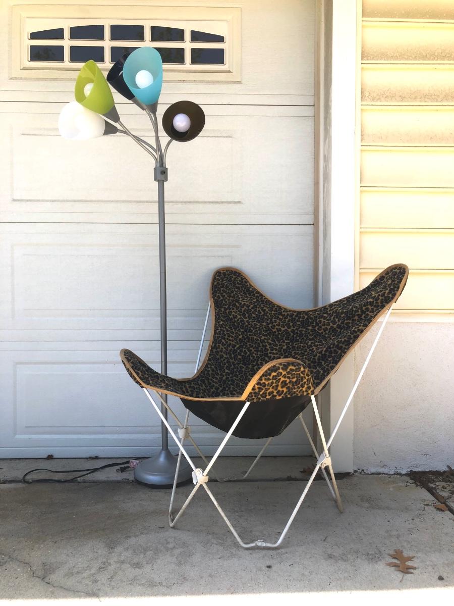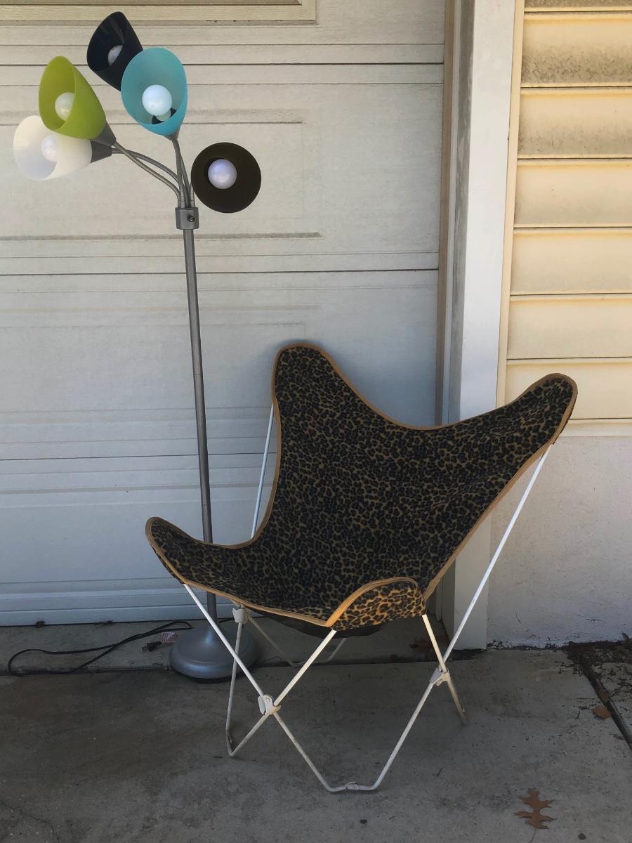 LOT 20G: Folding Cheetah / Leopard Print Chair & 6-Head Colorful Shade Lamp