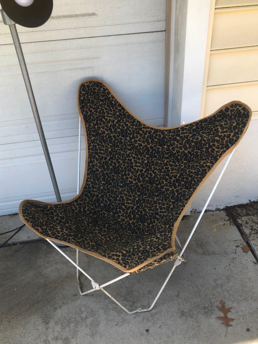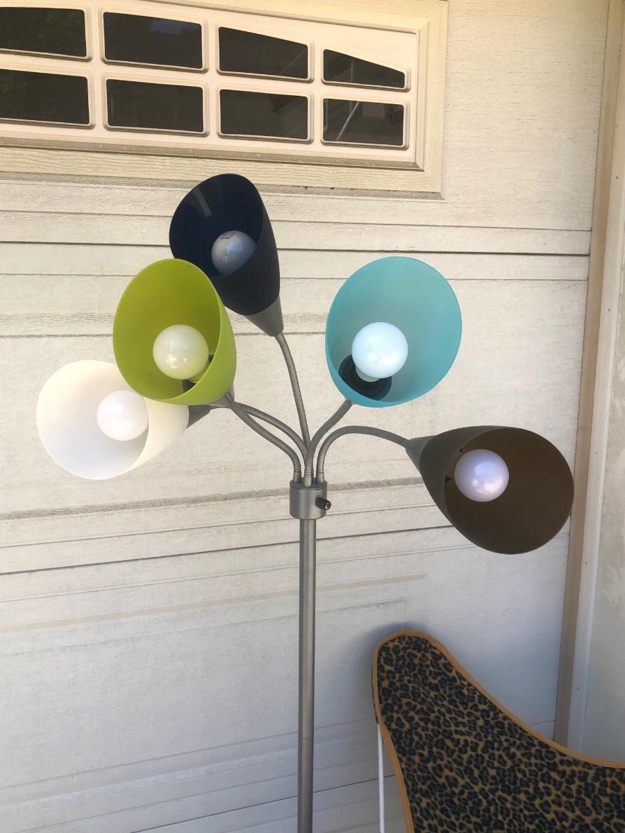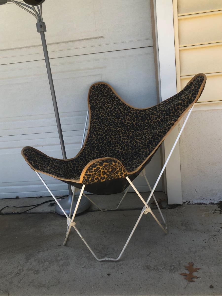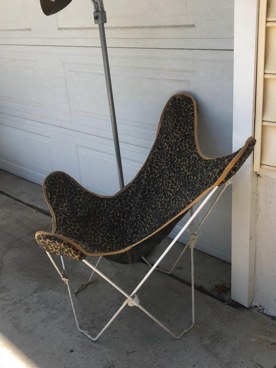 LOT 20G: Folding Cheetah / Leopard Print Chair & 6-Head Colorful Shade Lamp