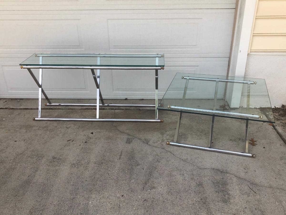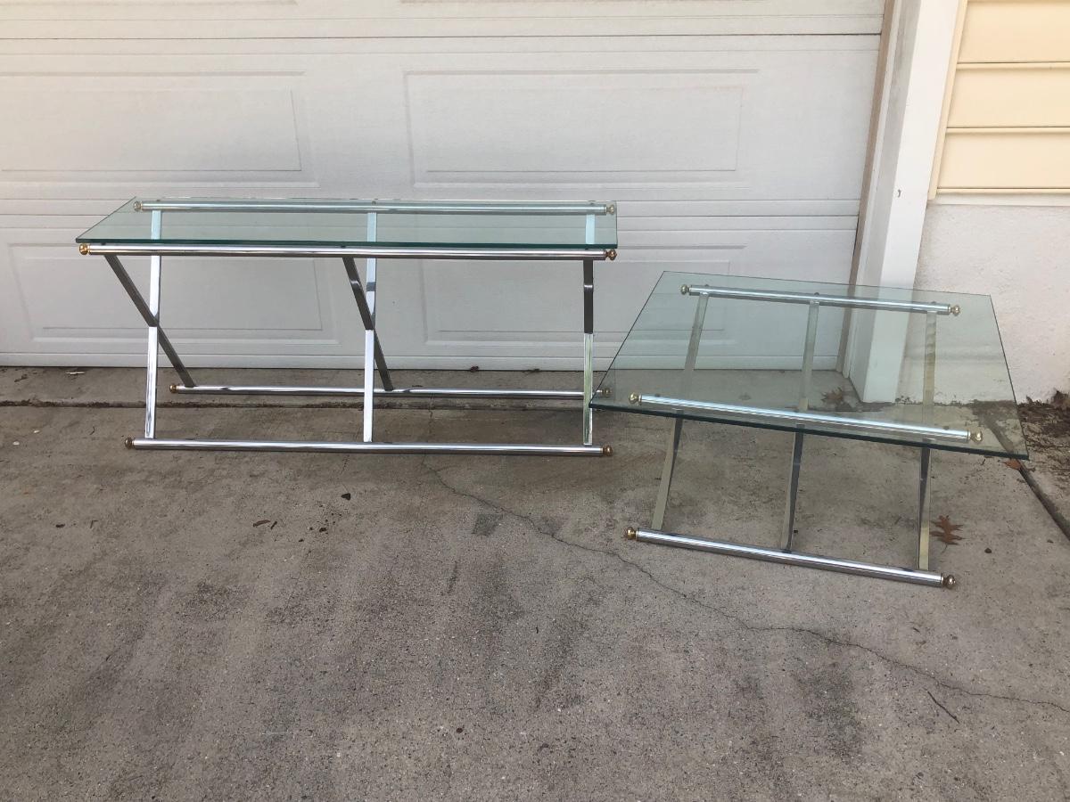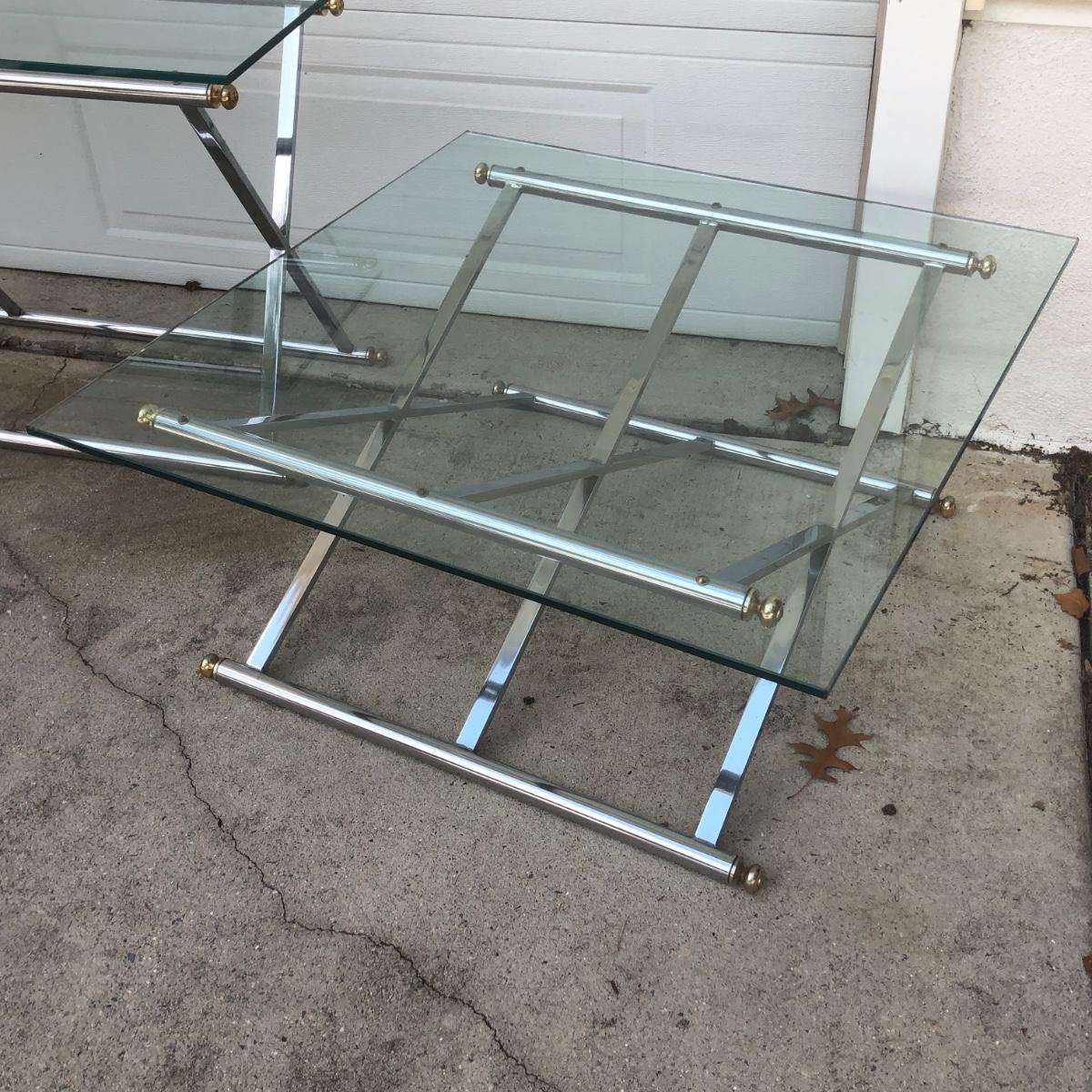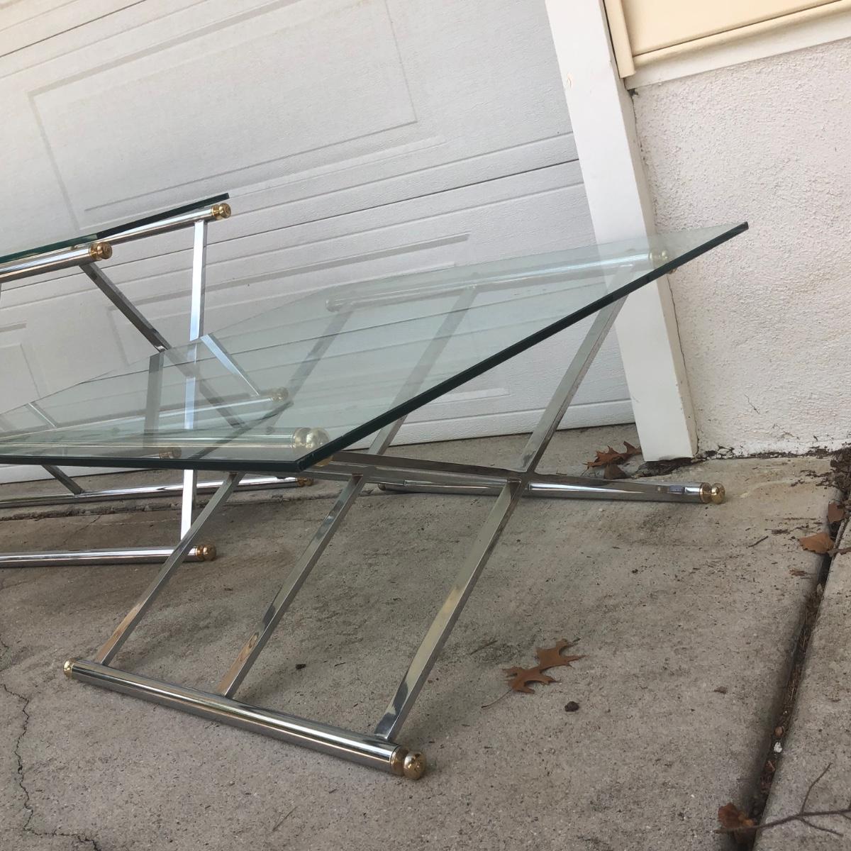 LOT 21G: Modern Glass Top Tables w/ Metal Bases